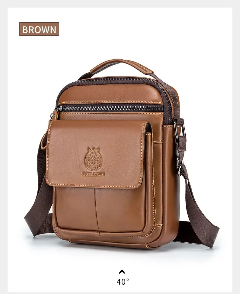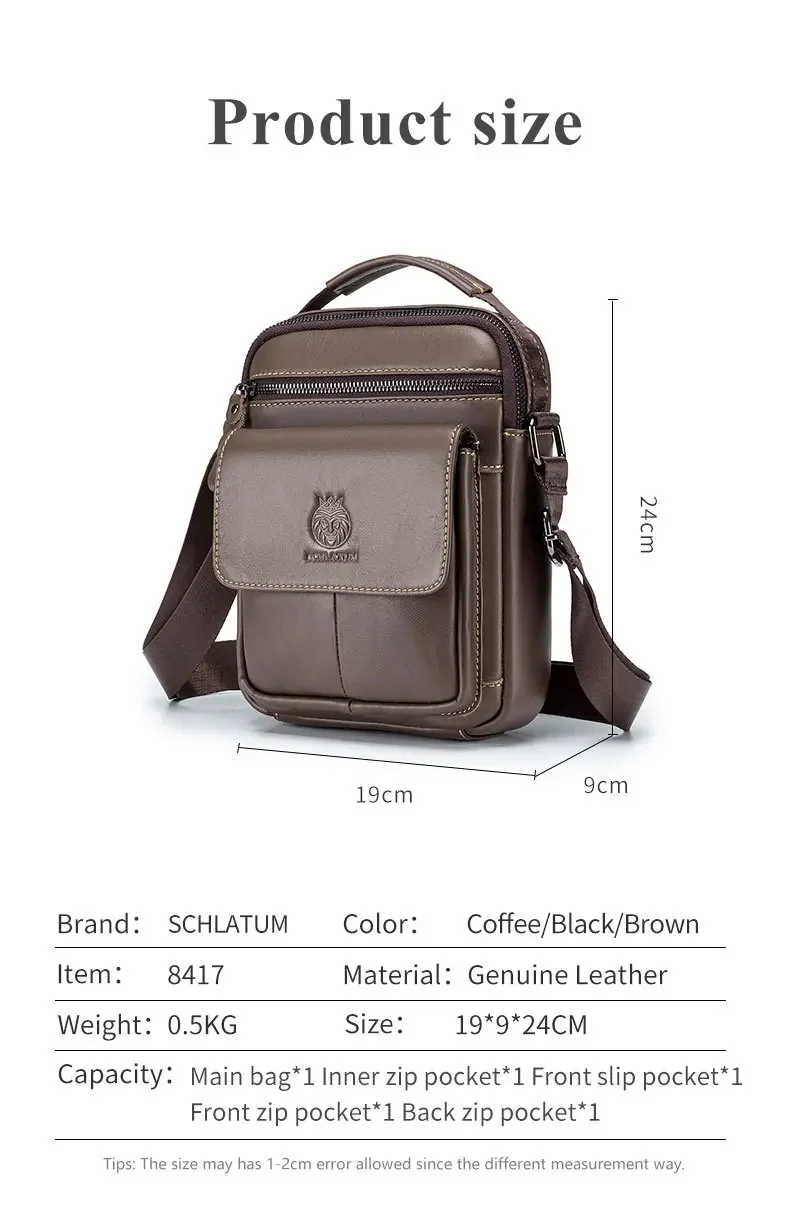 SCHLATUM Brand Men 100% Leather Shoulder s Luxury Men's Designer High Quality Messenger Fashion Small Bag Handbag