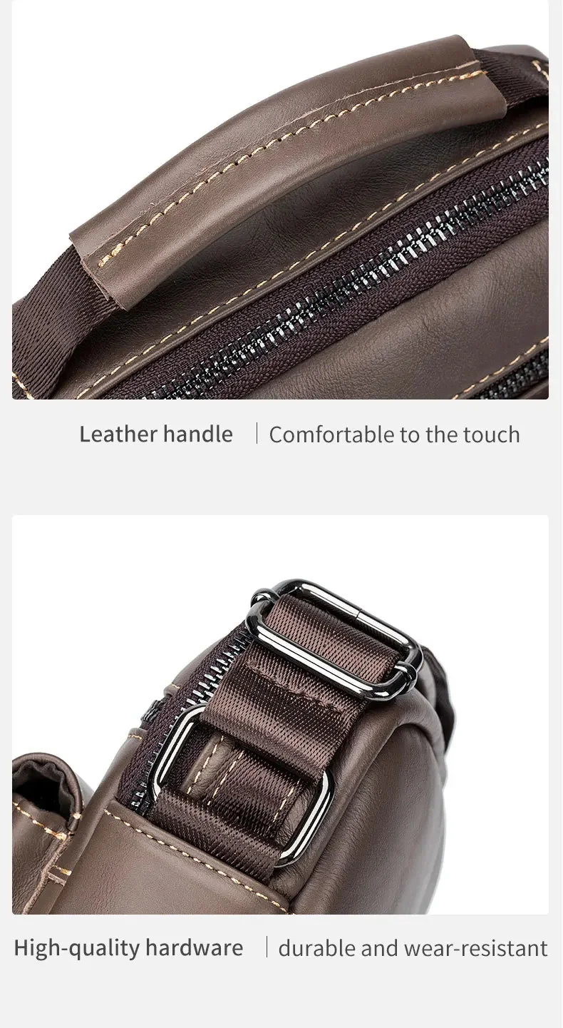 LAOSHIZI Men's Genuine Leather Waist Packs Multifunction Fashion Leather Chest Bag Sports Casual Leather Travel Pocket Phone Bag