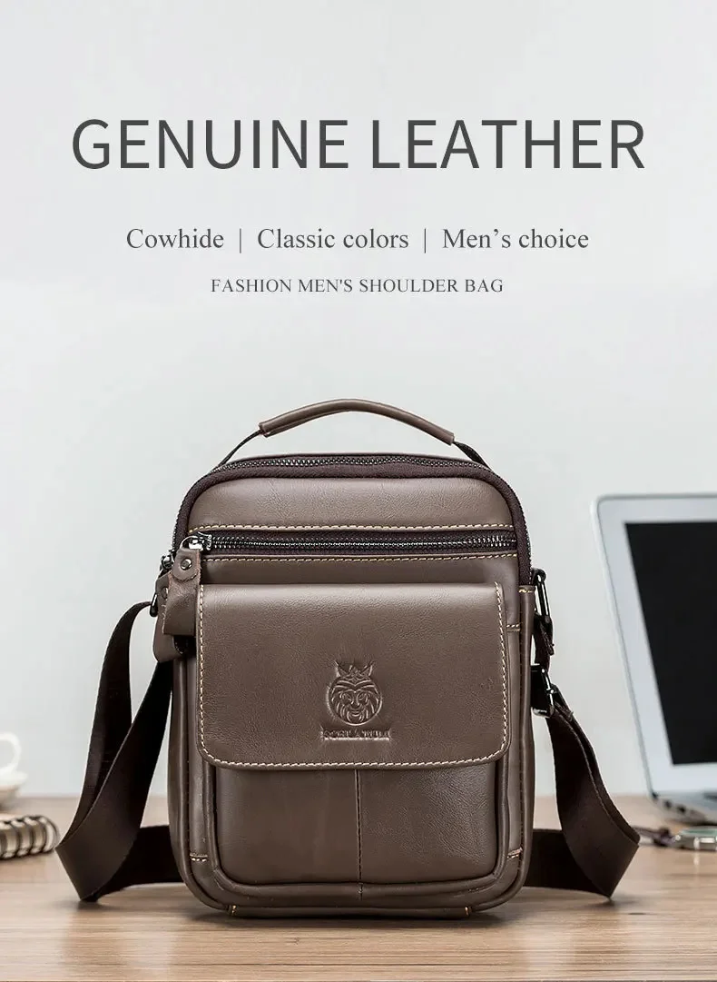 LAOSHIZI Brand New Men's Genuine Leather Crossbody Bag Fashion Retro Shoulder Bag 100% Cowhide Luxury Gentleman Handbags