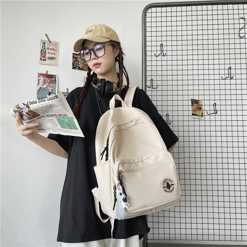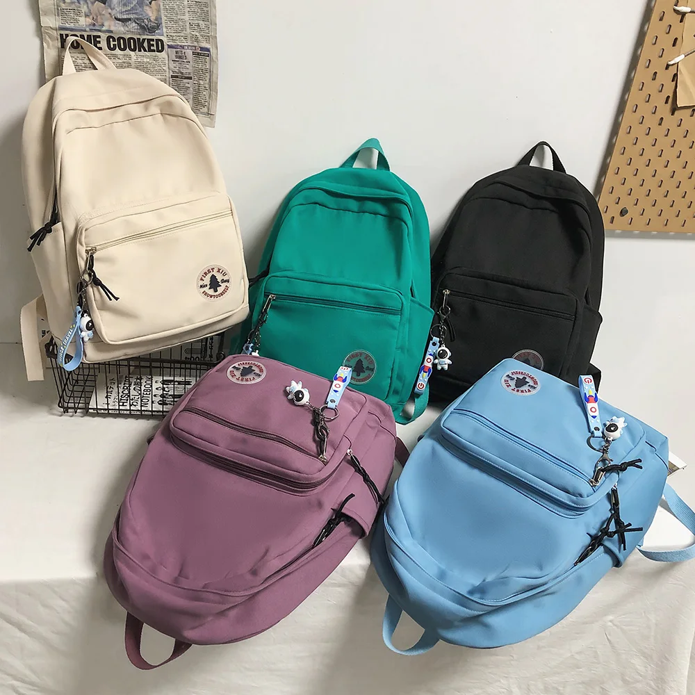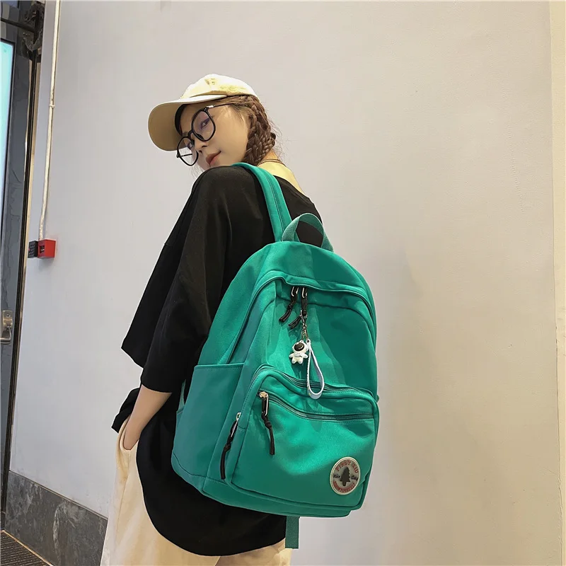 Girl Solid Color Fashion School Bag College Student Women Backpack Trendy Travel Lady Laptop Cute Backpack Green New Female Bag