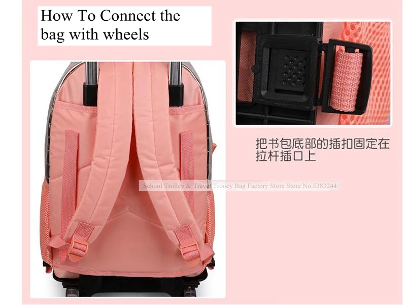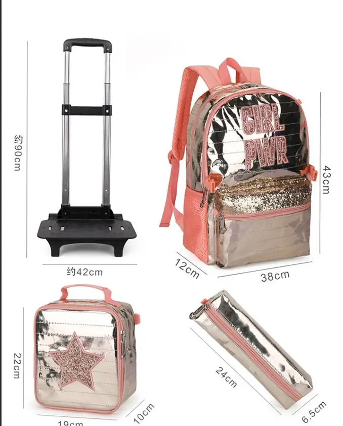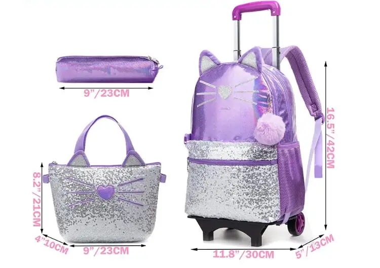 School wheeled backpack bag for girls School Rolling backpack Kids student bag wheels children school Trolley backpack Bag