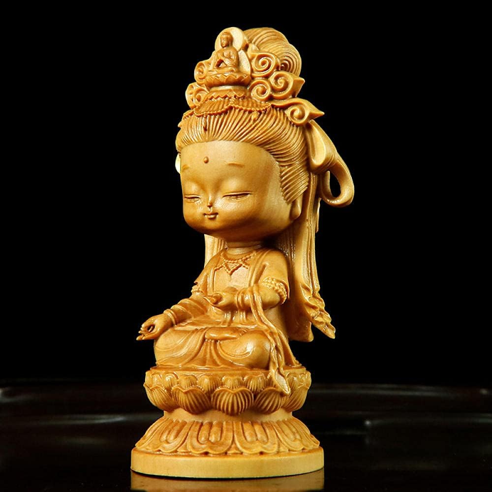 Sculpture Desktop Ornament Ideal for Gift Statues for Yard and Garden for Home Deco Boxwood Wood Carving Handle Pieces Chinese-Style Buddha Statue Home Living Room Glyph Play Decoration Wooden Guanyin