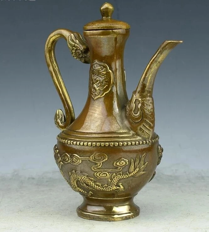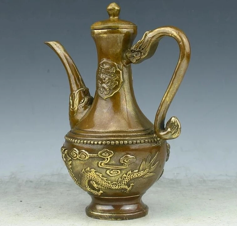 SCY 426+++A brass copper antique teapot pot dragon flagon eight copper kettle "Home Furnishing crafts