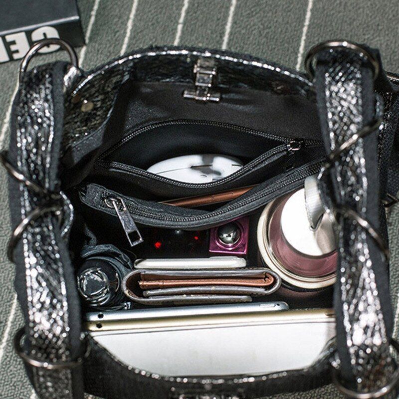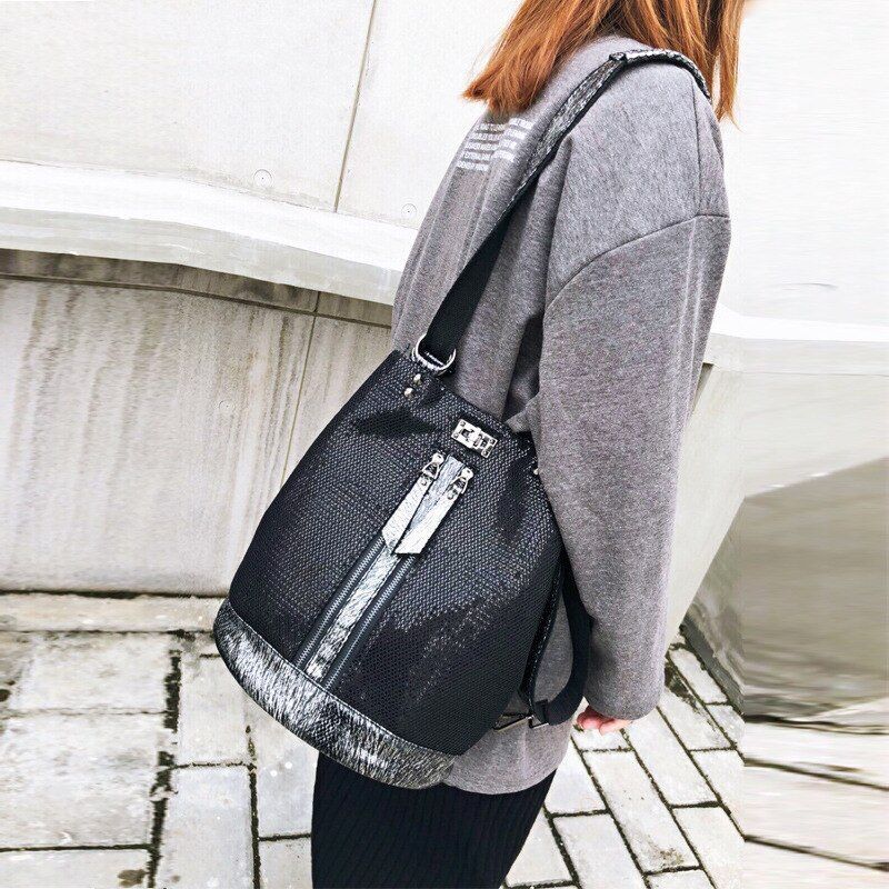 Sequins Leather Laptop Backpack Personality Lock Anti Theft Travel Back Pack 1PC