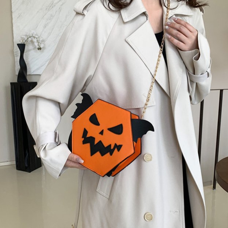 Stand out at Halloween parties with this unique pumpkin crossbody bag, featuring a fun and creative design that adds a festive touch.