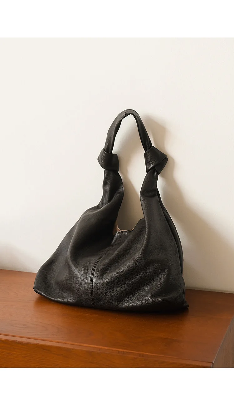 Simple Elegant Solid Genuine Leather Handbags All-match Commuter Underarm Shoulder Bag Large Capacity Soft Tote 2024 Chic Bolsas