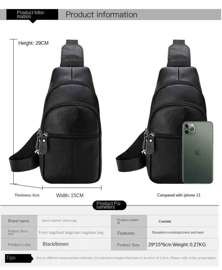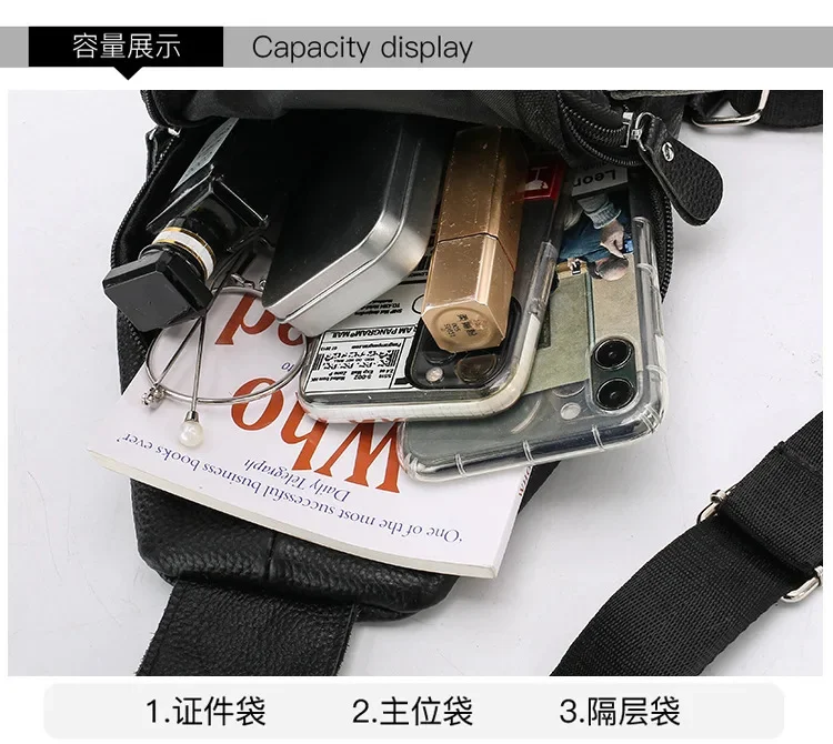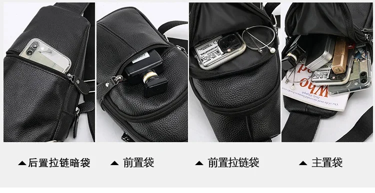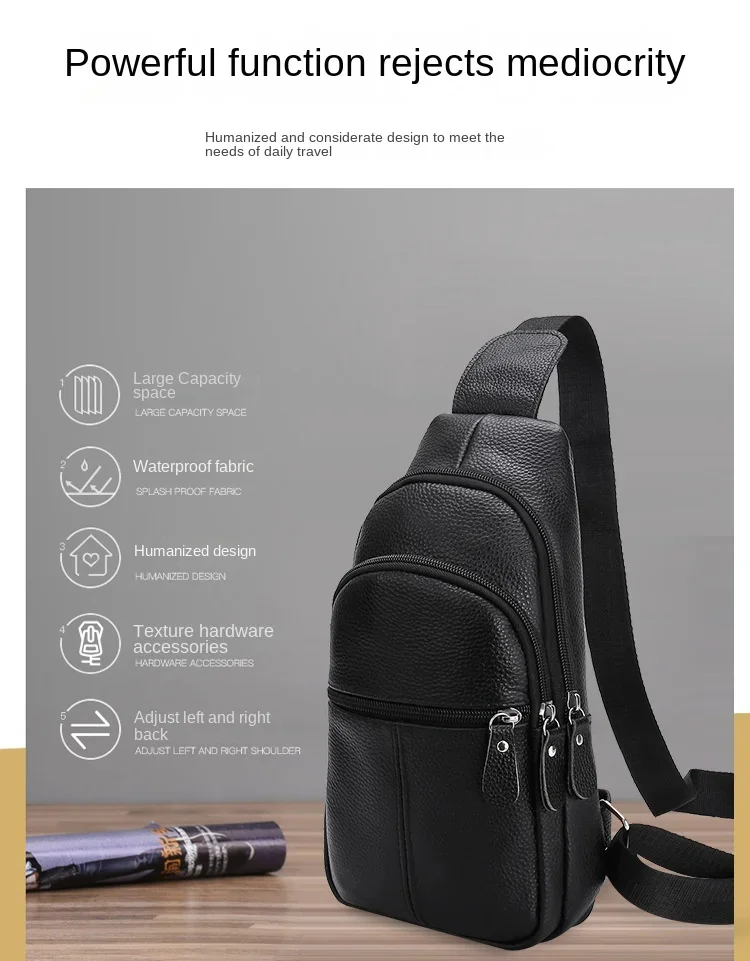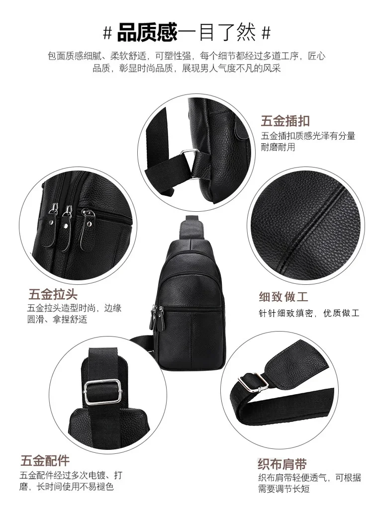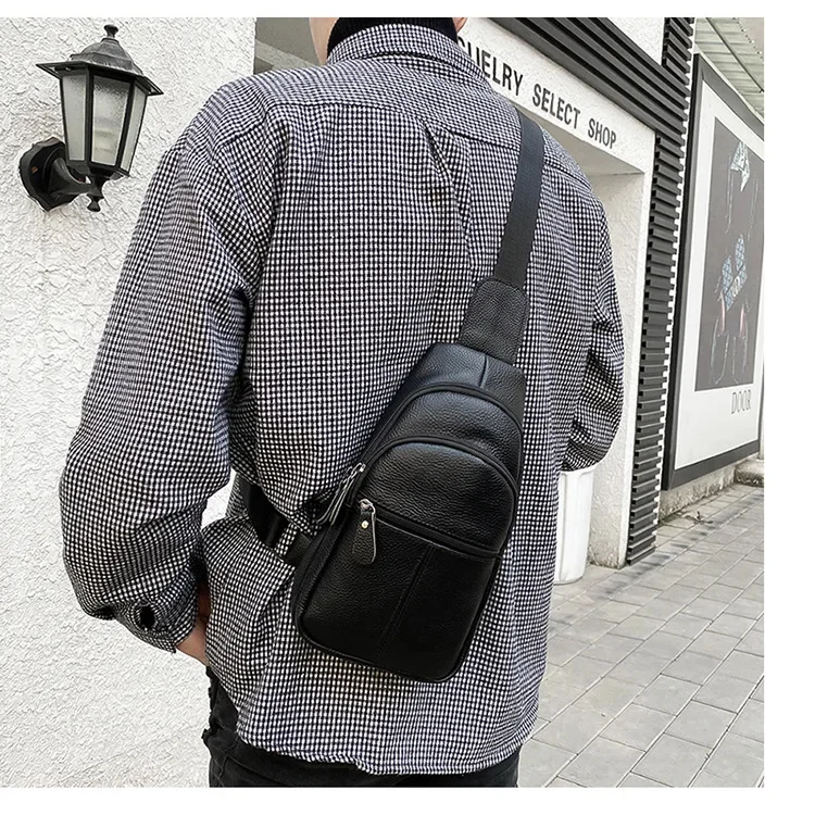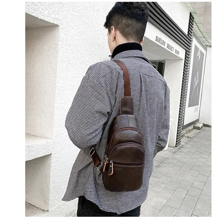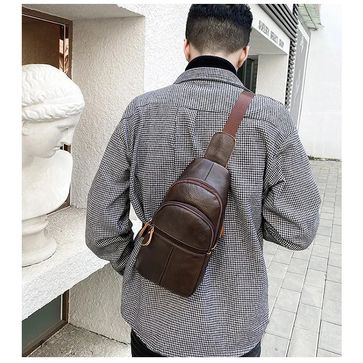 Simple genuine leather chest bag