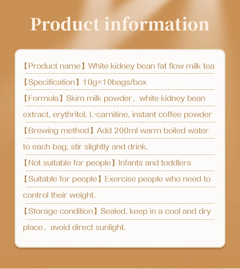 Slimming Tea Weight Loss White Kidney Beanfat Flow Milk Tea 10g*10 bags