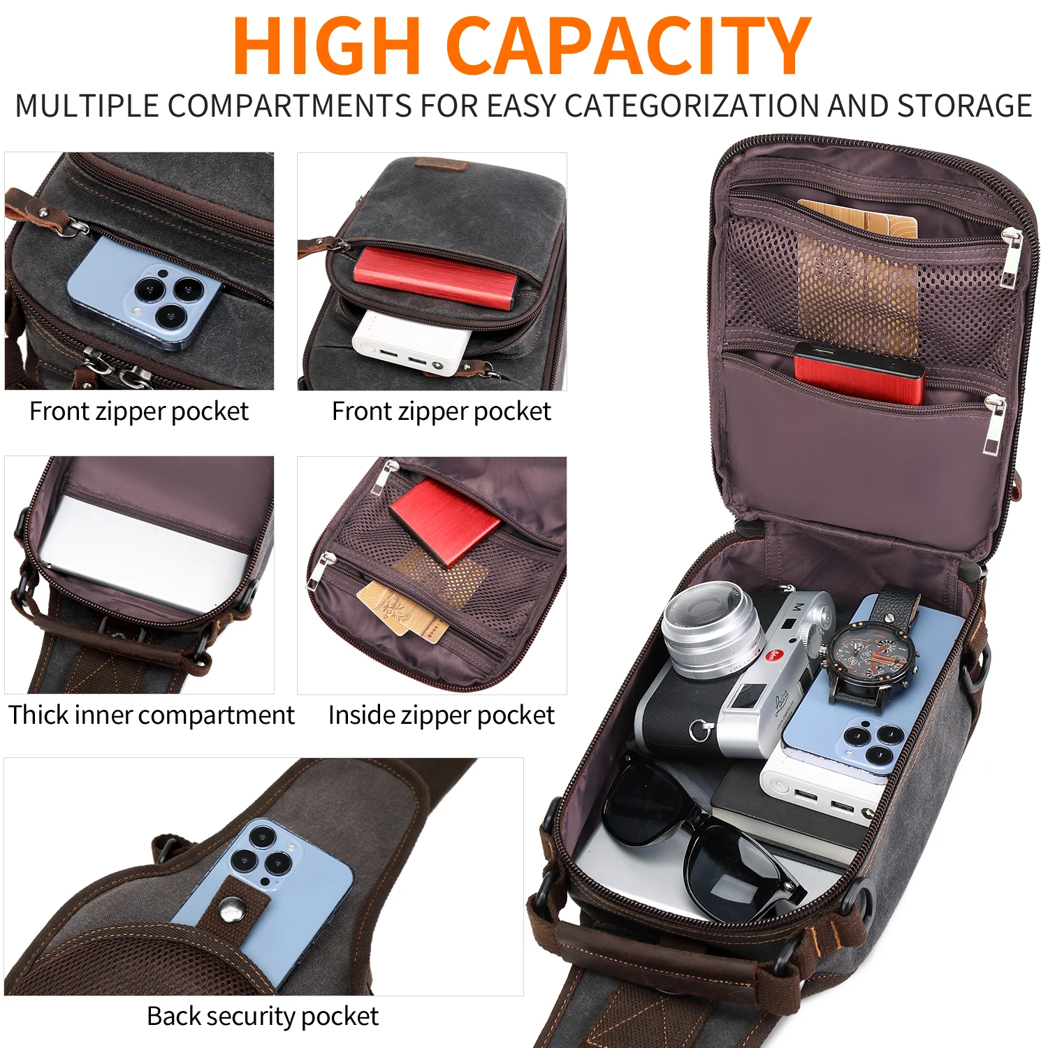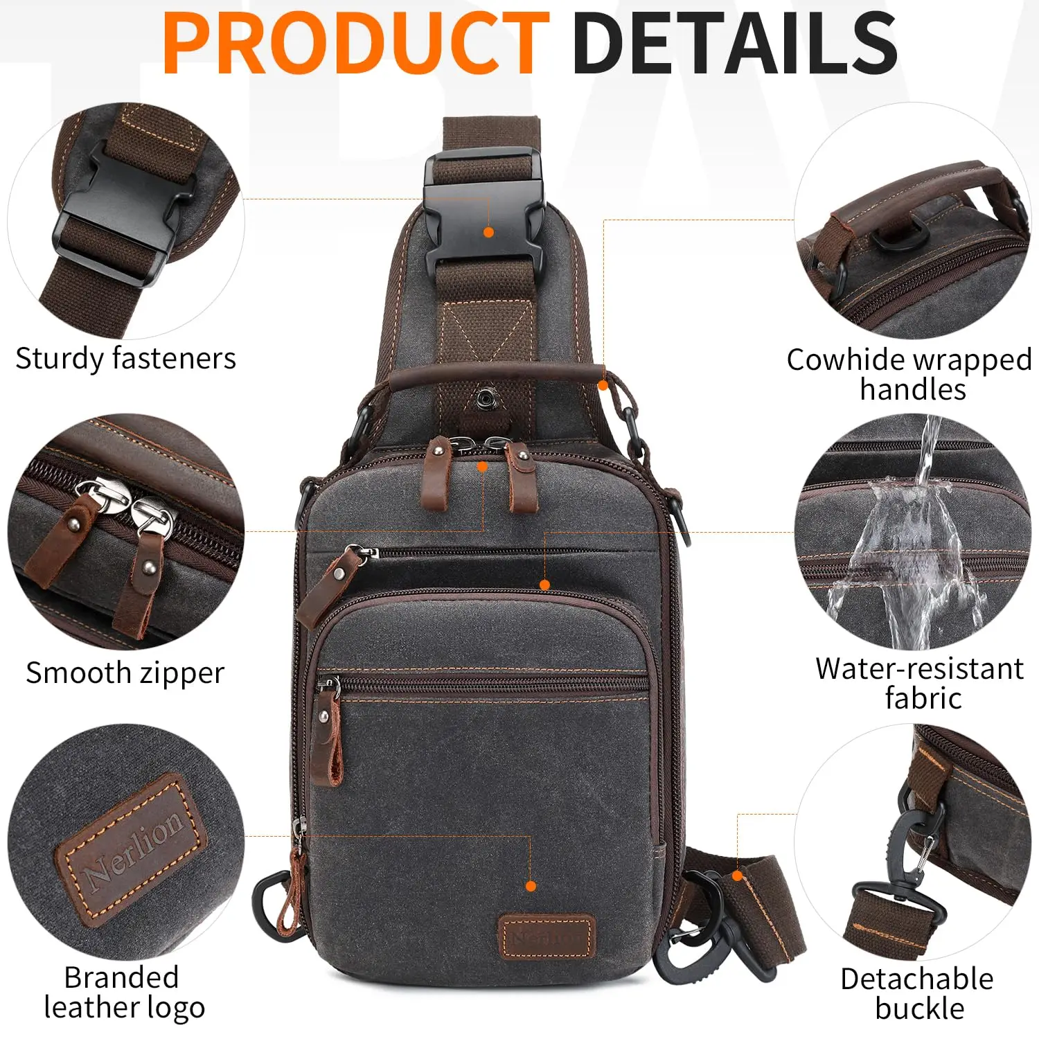 Nerlion Sling Backpack Chest Sling Bag for Men Waxed Canvas Crossbody Bag Water Resistant Shoulder Bag Casual Daypack