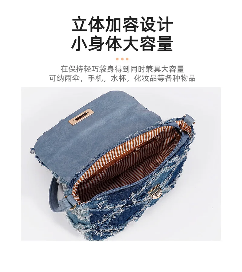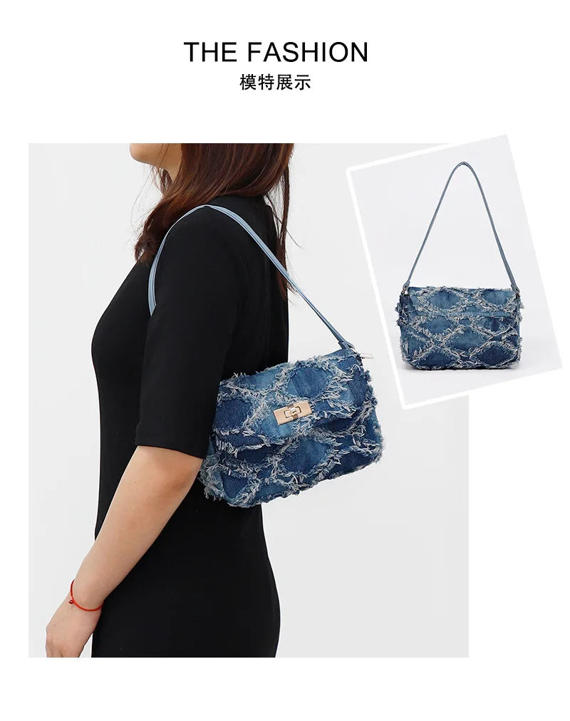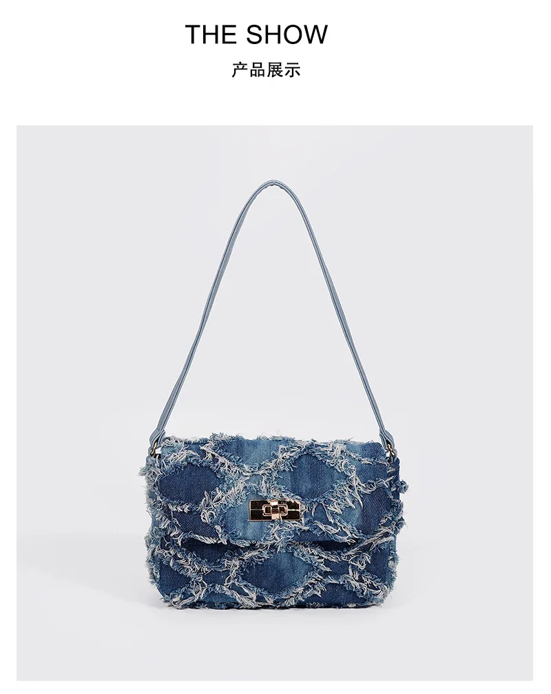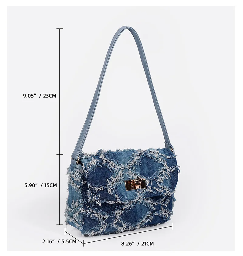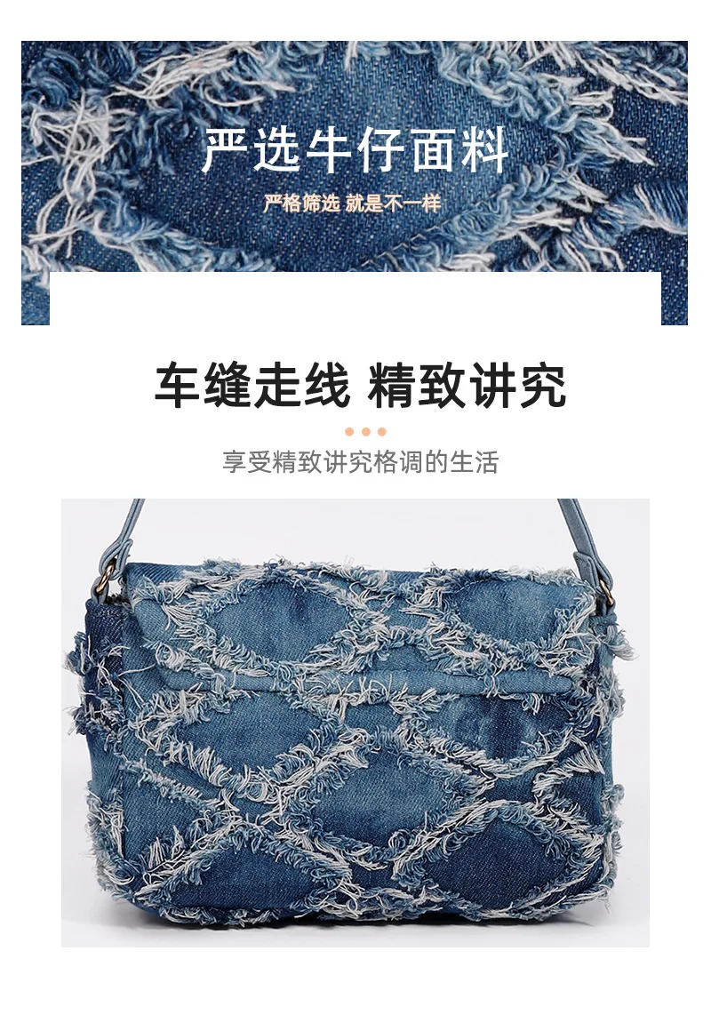 Small Denim Women Shoulder Bags Mini Bag Distressed Jean Purse Evening Bag Clutch Handbag