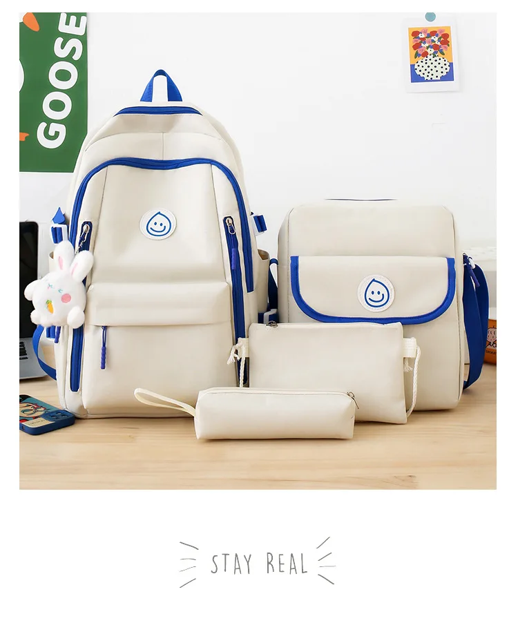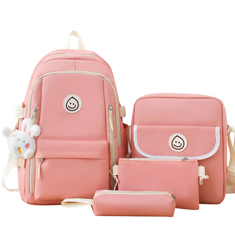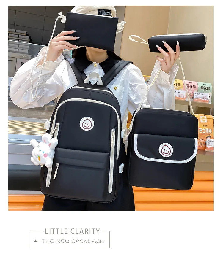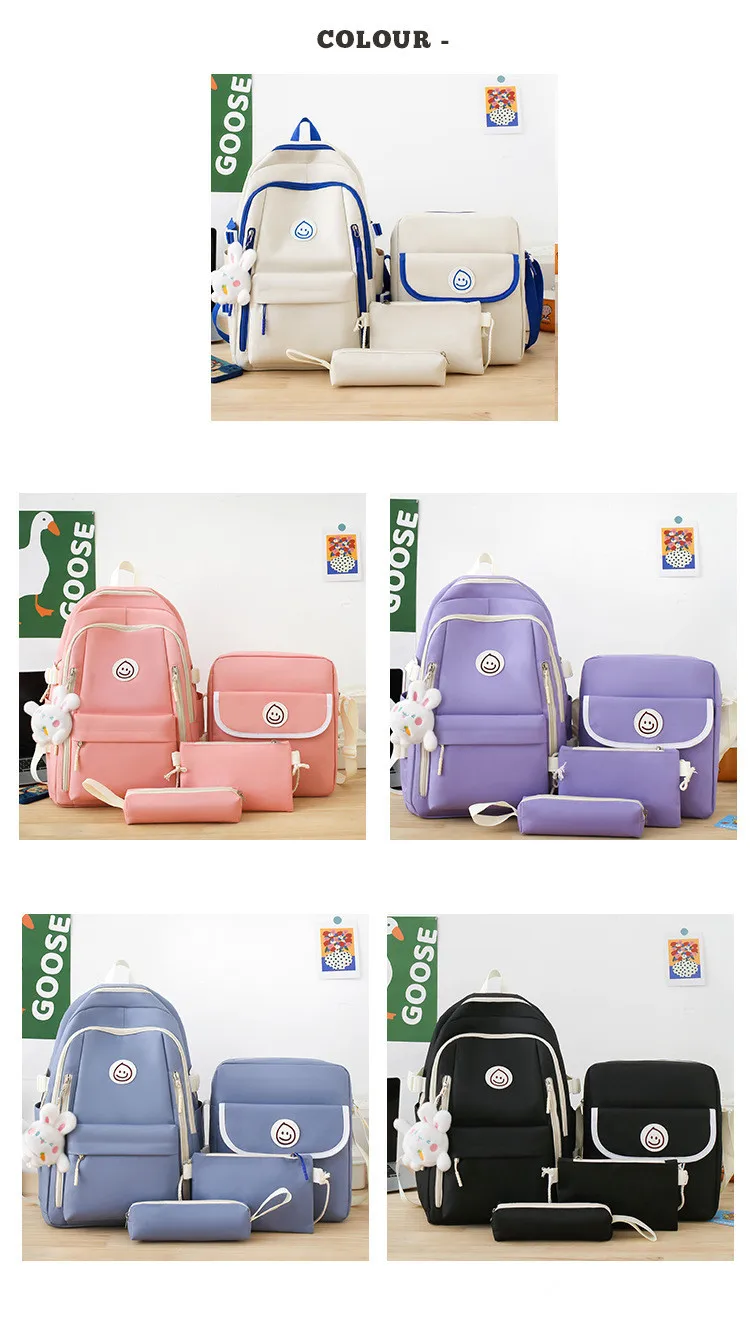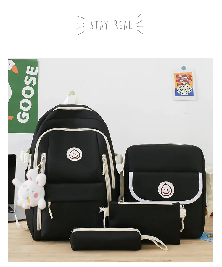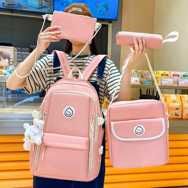 Smiling face printing 4 Pcs Sets Children's School Backpack Kawaii Women's Backpack Bookbag School Bags for Teens Girls Mochilas