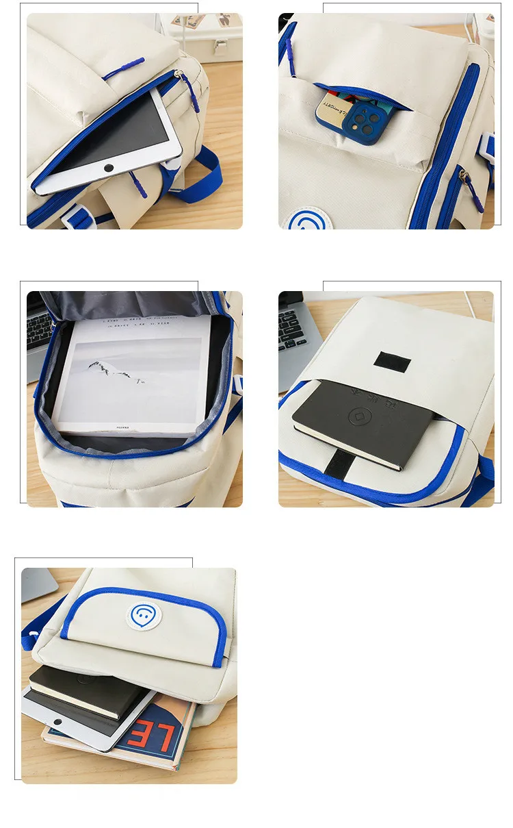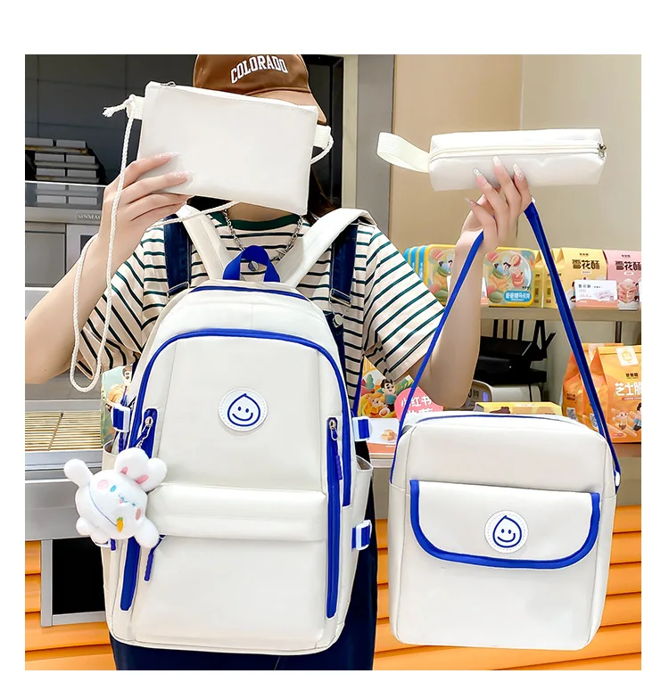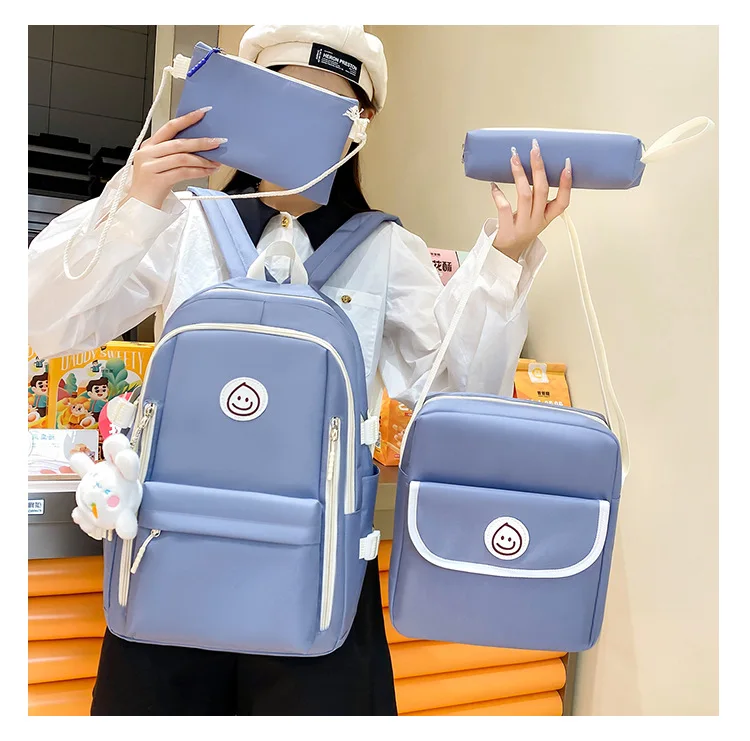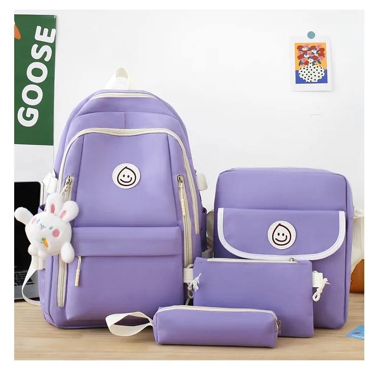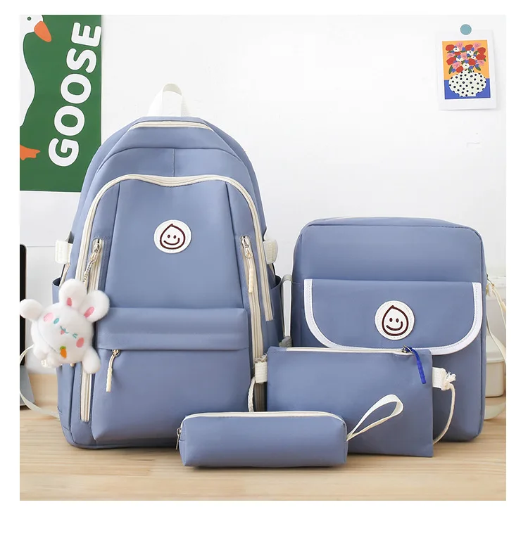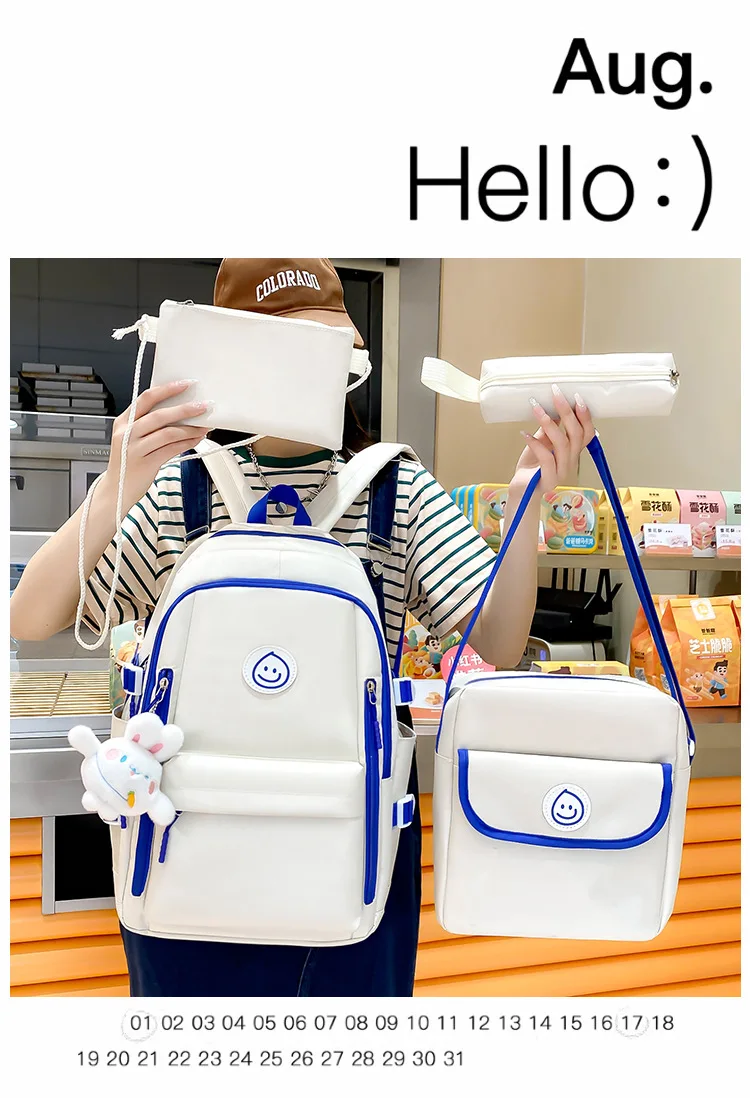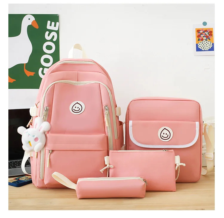 Smiling face printing 4 Pcs Sets Children's School Backpack Kawaii Women's Backpack Bookbag School Bags for Teens Girls Mochilas