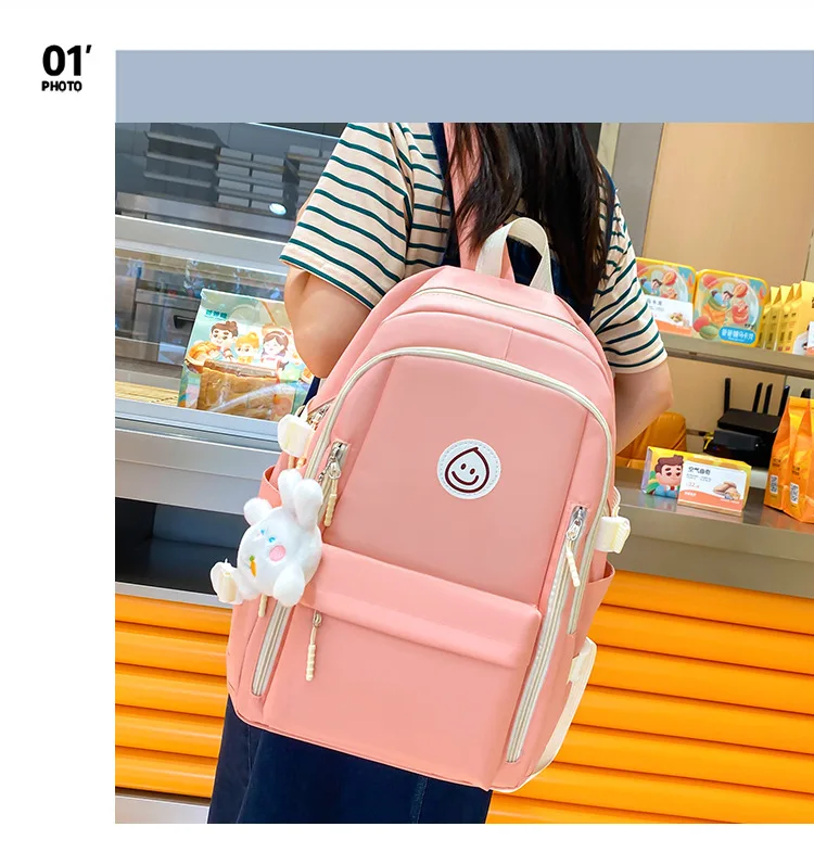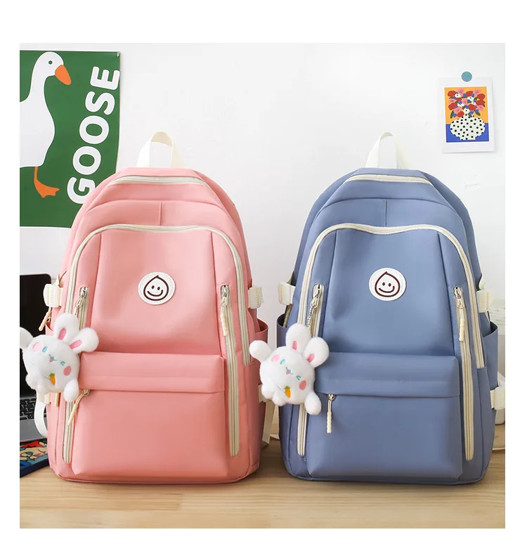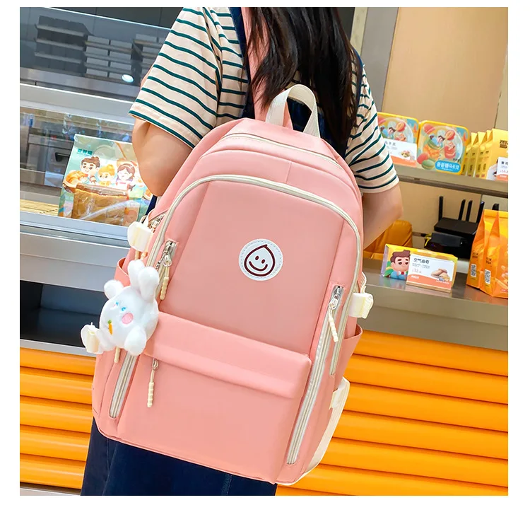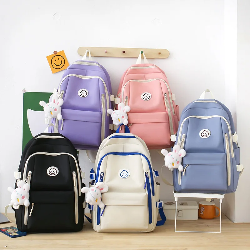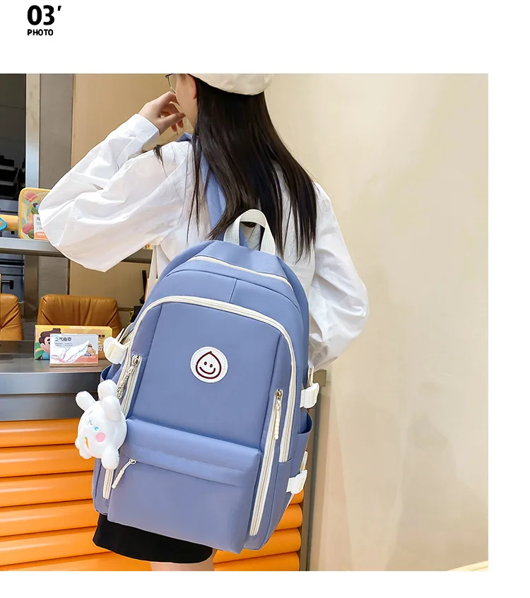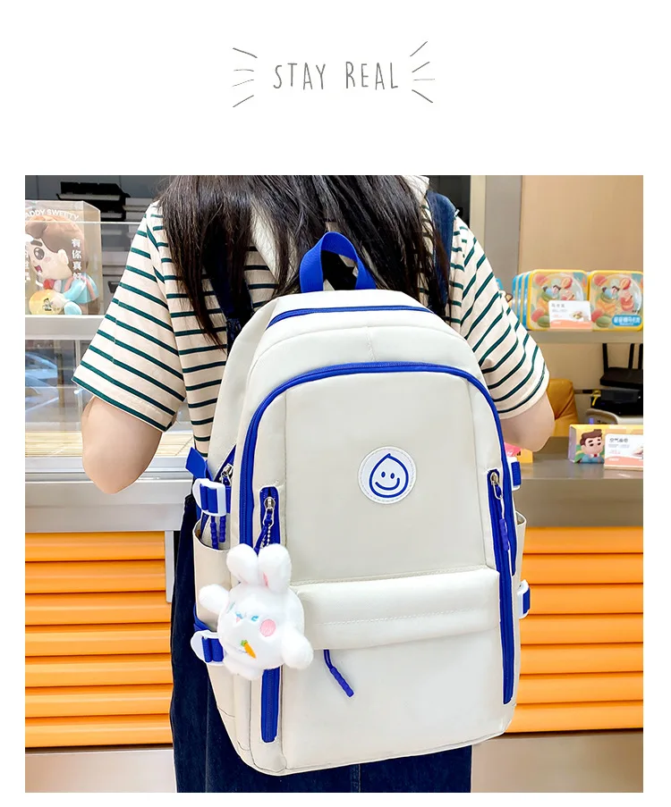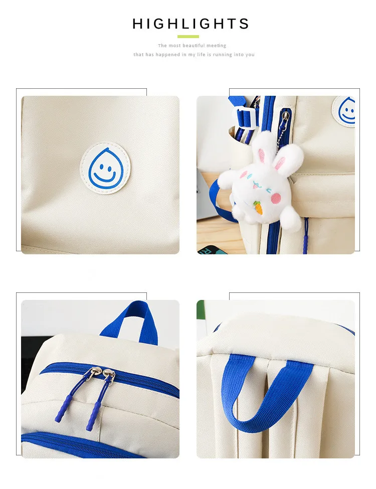 Smiling face printing 4 Pcs Sets Children's School Backpack Kawaii Women's Backpack Bookbag School Bags for Teens Girls Mochilas