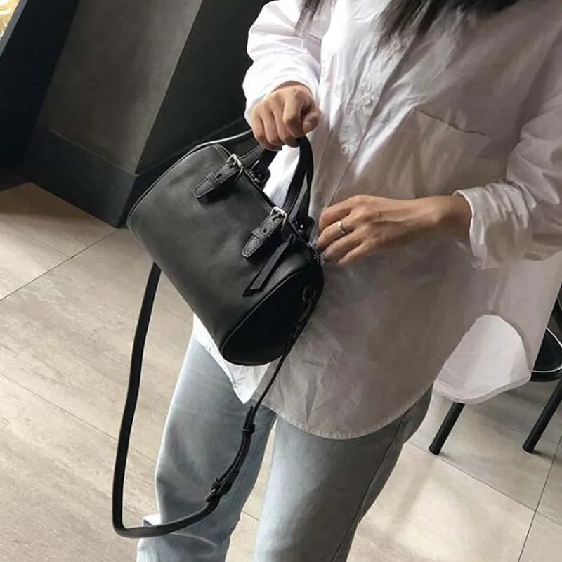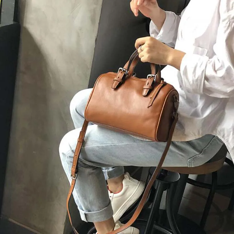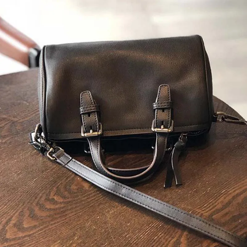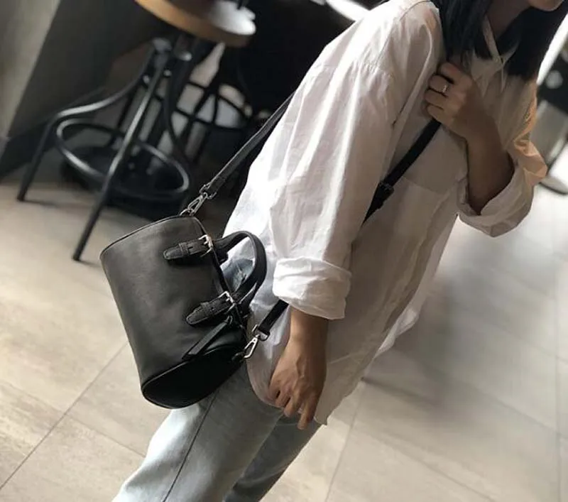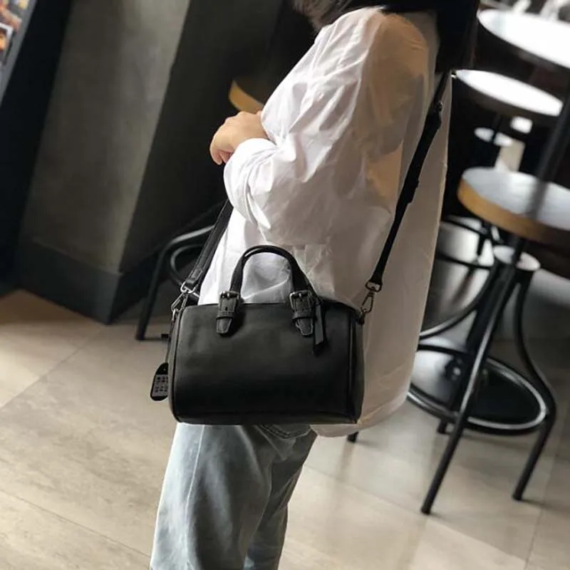 Soft 100% Cow Leather Handbag Tote Women's Long Strap Shoulder Messenger Satchel Bags Black Genuine Skin Casual Tote Sac a Main