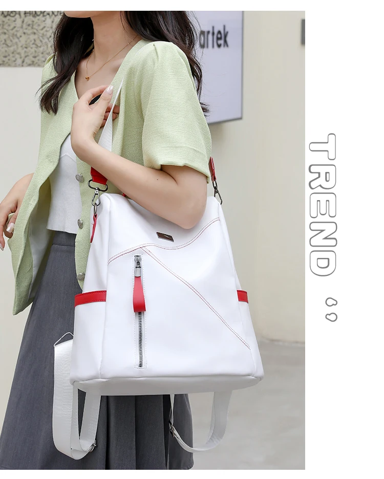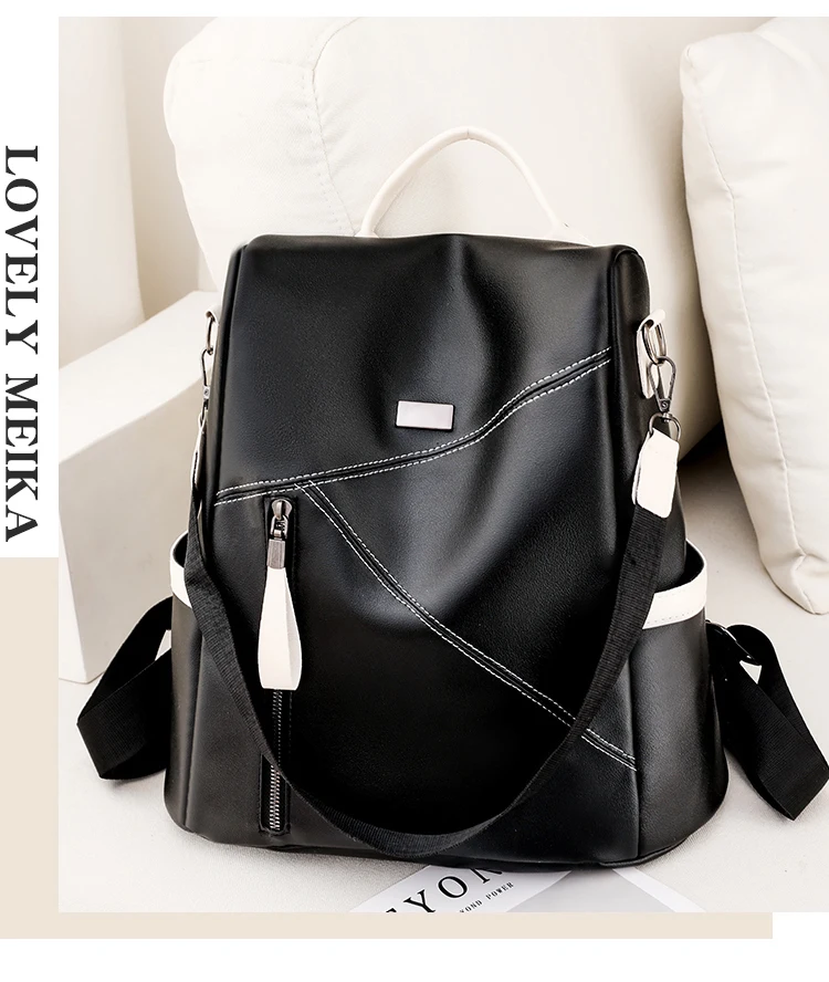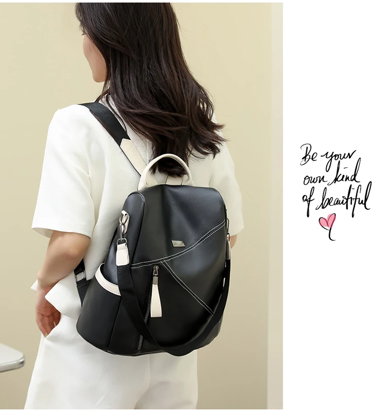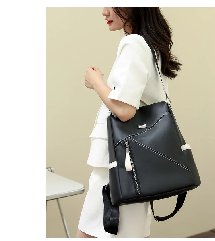 Soft Leather Stitching Women's Backpacks Anti-theft Back Zipper Ladies School Bags Summer New Casual Single Shoulder Backpack