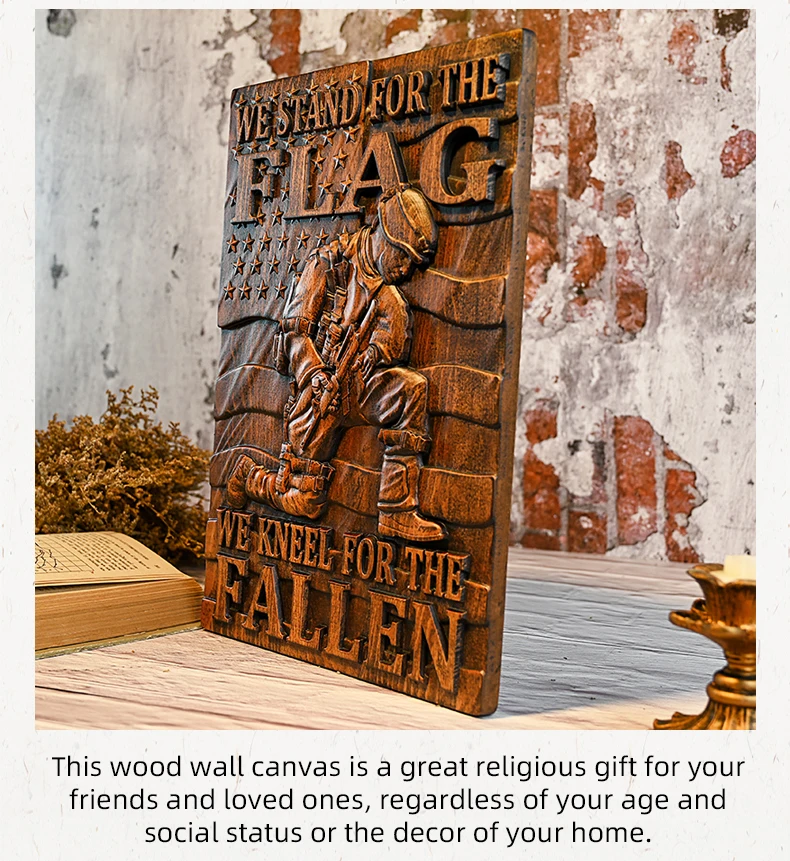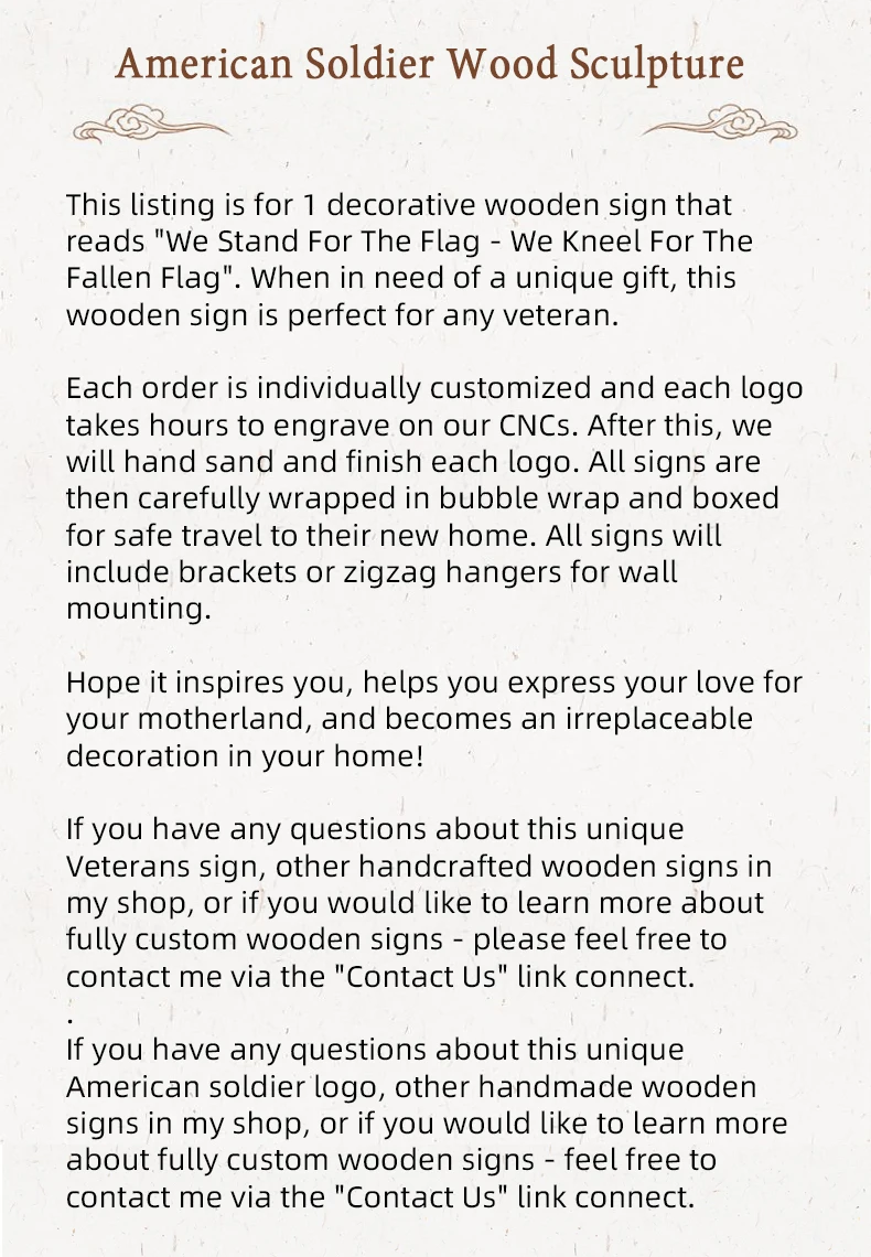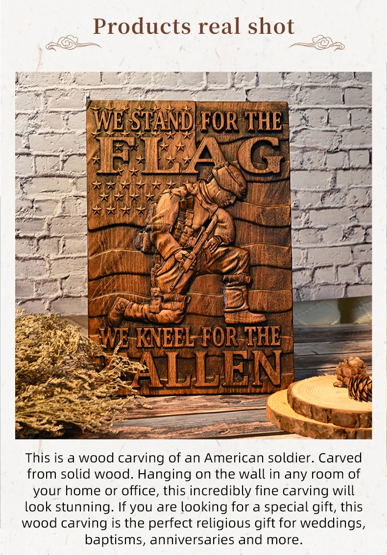 Solid wood carving American soldier plaque wood carving commemorative wooden statue ornaments home wall hanging decorations