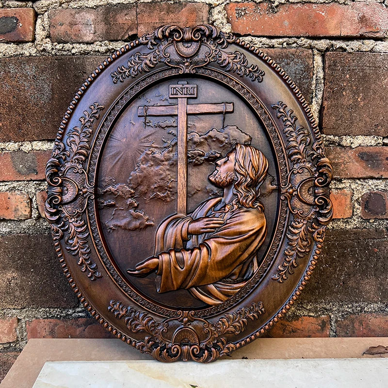 solid wood carving jesus hill garden prayer plaque religious wood carving christ jesus statue easter christmas decoration