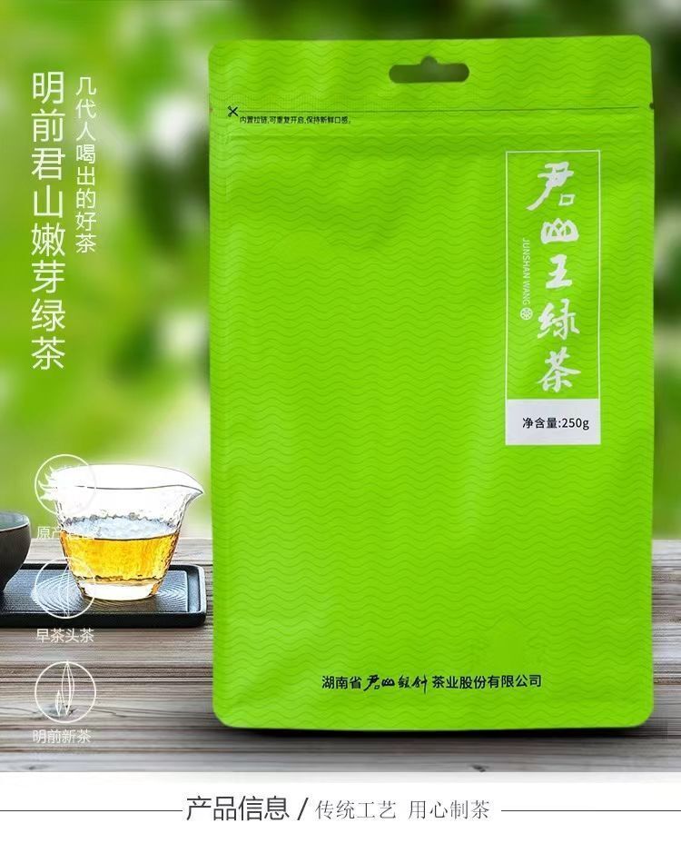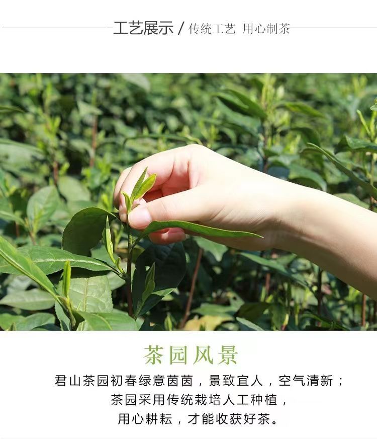 This tea has been produced with only very simple equipment. What make it different are the skillful hand movements of rolling, adjusted to the heat and softness or dryness of the tender leaves. The brewed tea is pale-gold in colour and has a grassy fragrance with a sweet, long lasting aftertaste.Full bodied tea with distinct floral aroma with a hint of cool minty note. Very refreshing aftertaste. Truly the finest quality of Jun Shan Mao Jian.