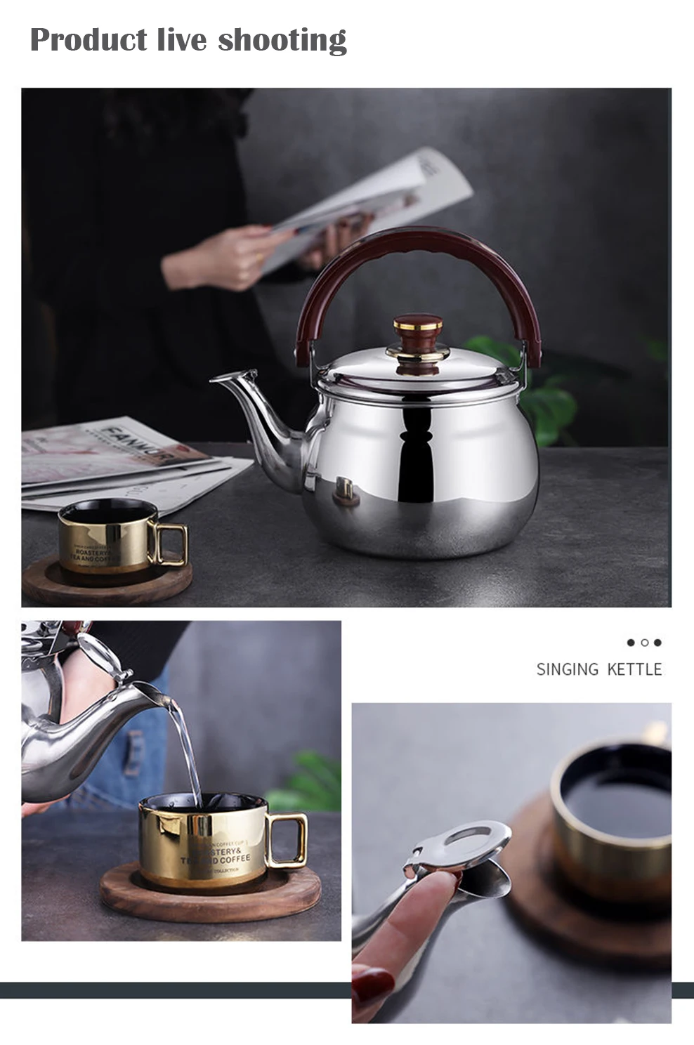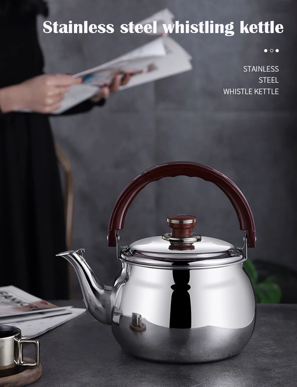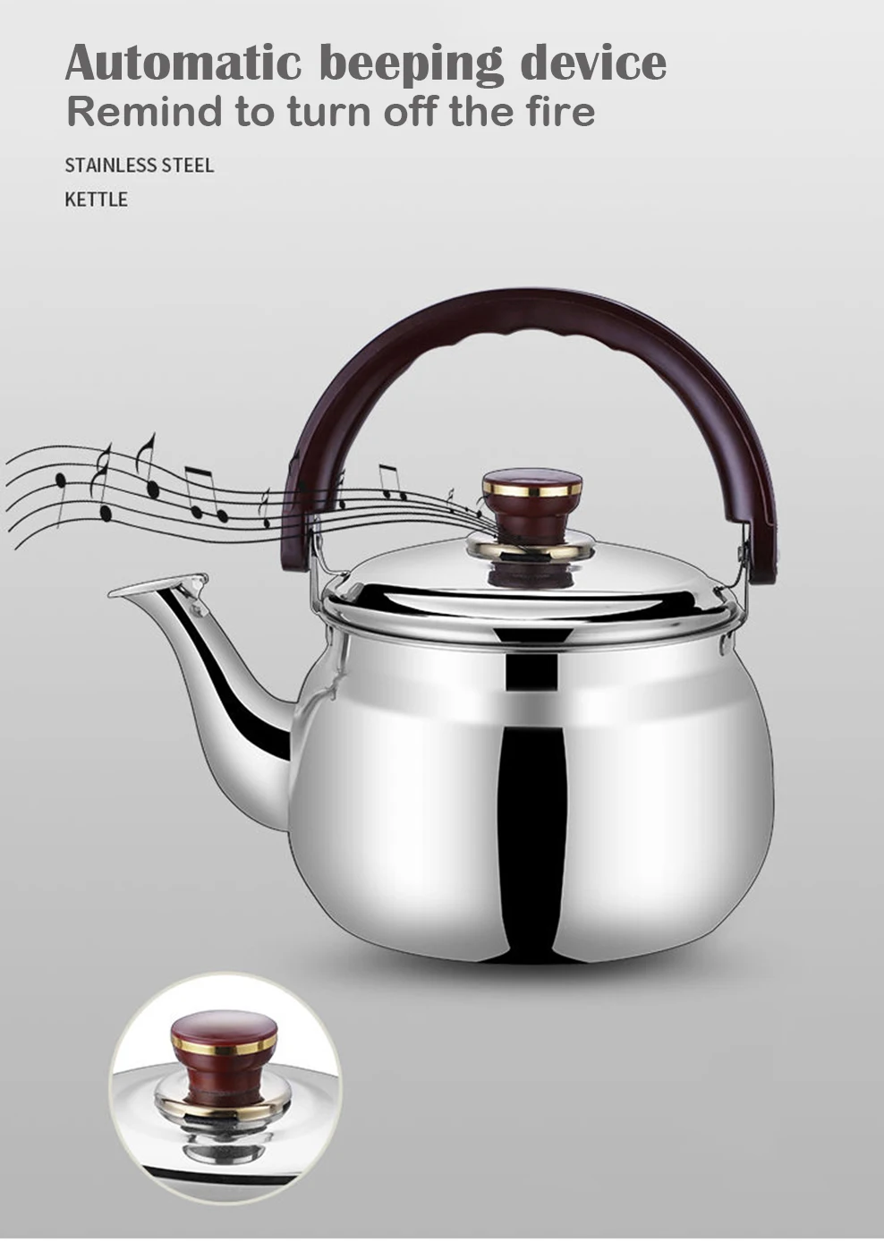 Stainless Steel Boiling Water Kettle Thicken Large Capacity Whistling Pot Beep Reminder Teapot Suitable For Induction Cooker