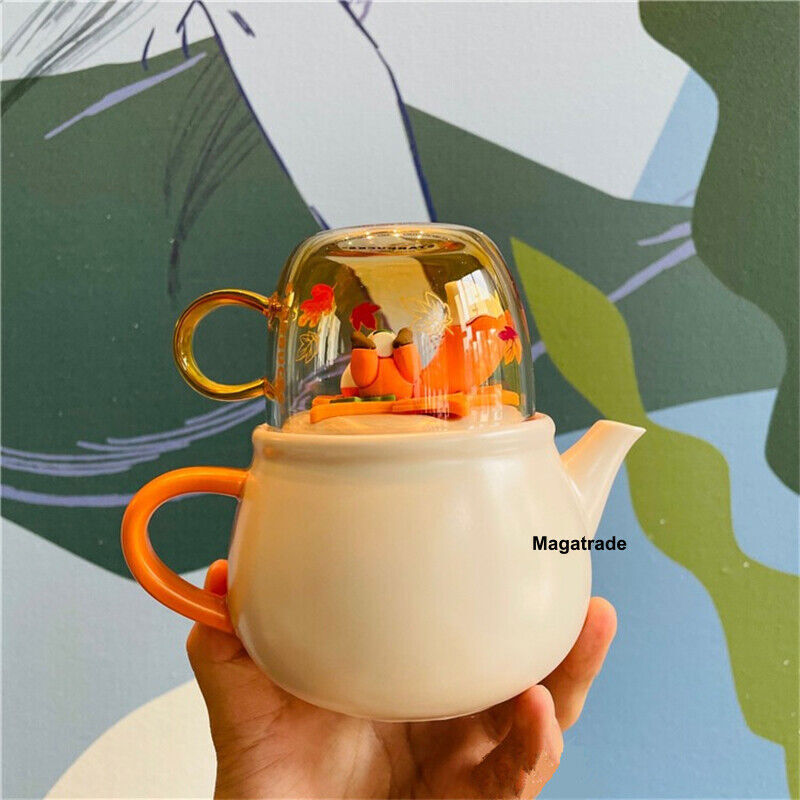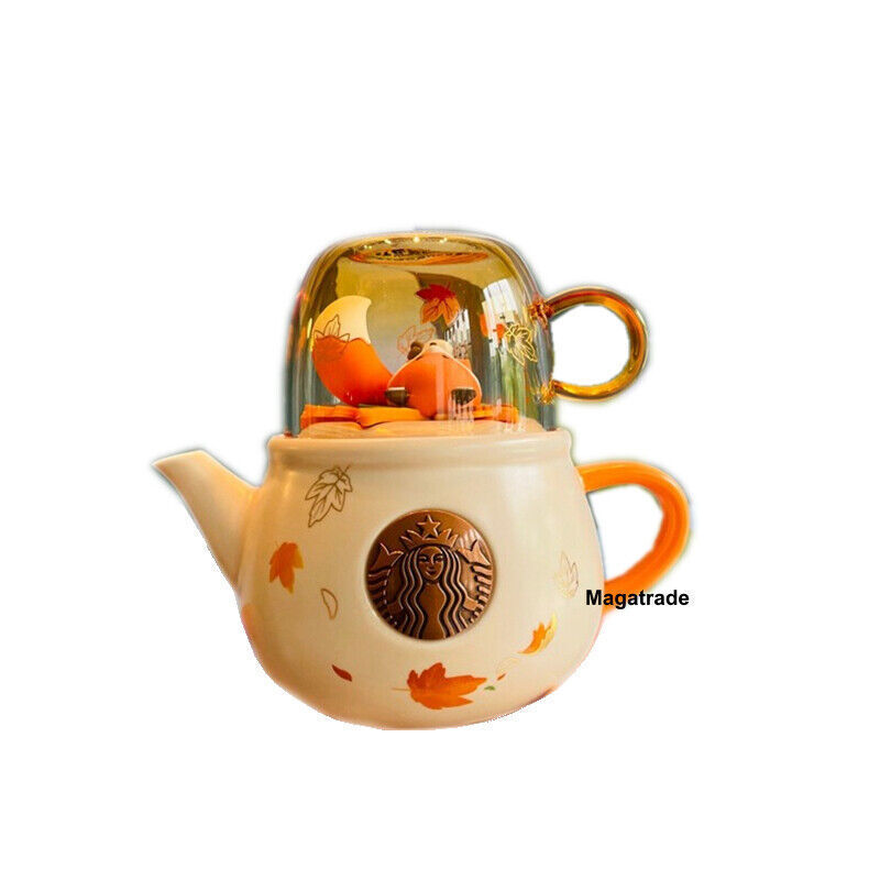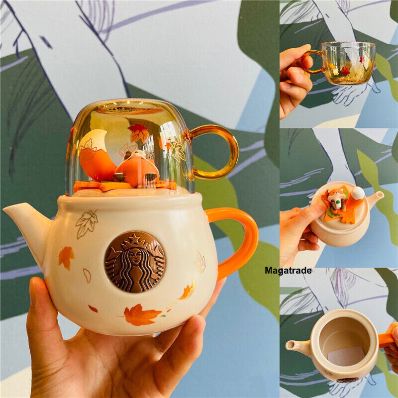 Starbucks Autumn Forest Fox Ceramic Teapot Cup Set Maple Leaf