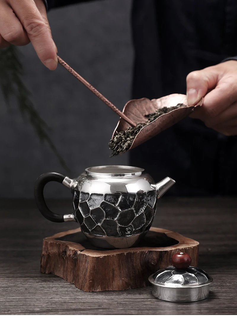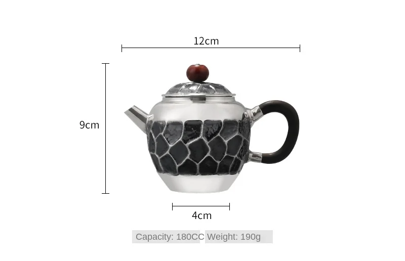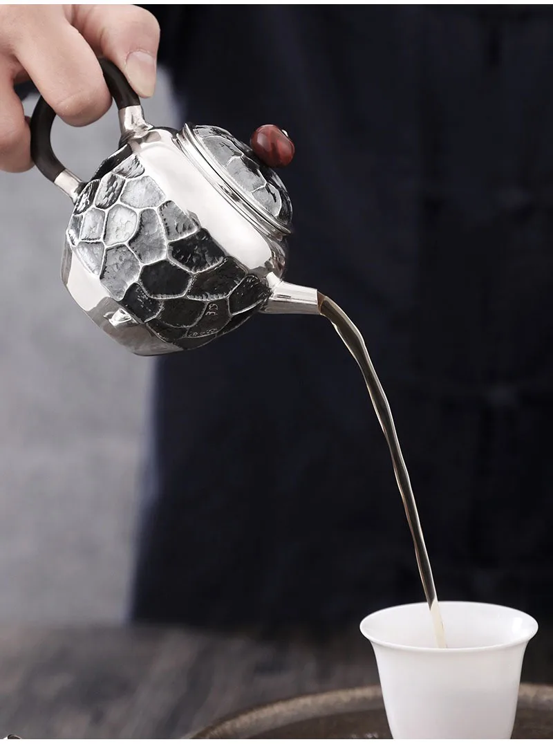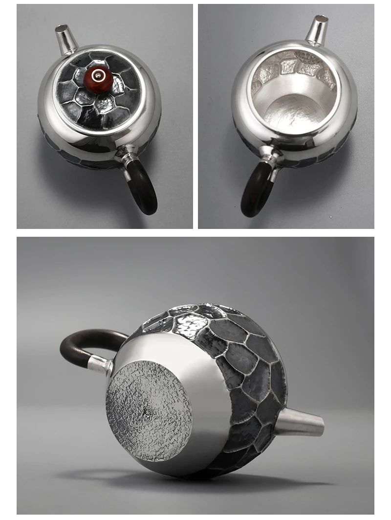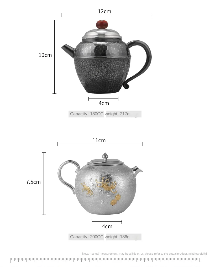 Sterling Silver 999 Teapot Handmade Tea Set Vintage Teapot Kettle Chinese Coffee Pots Home Office Tea Ceremony Set Gift 200CC