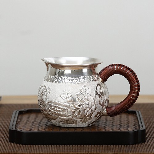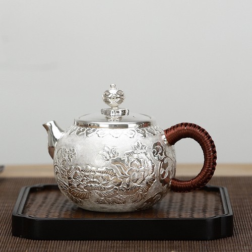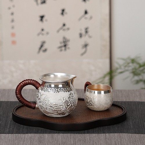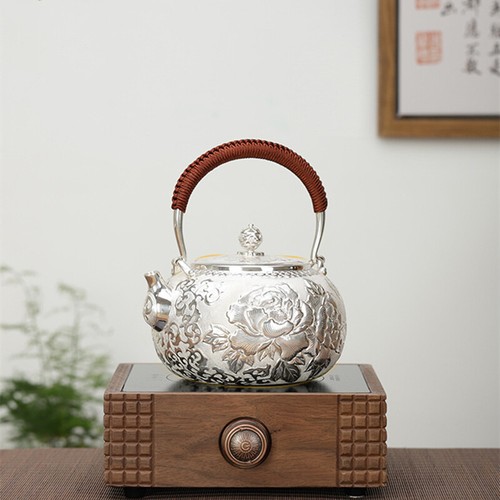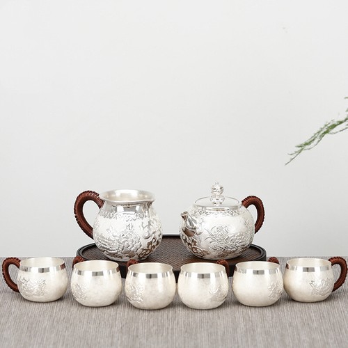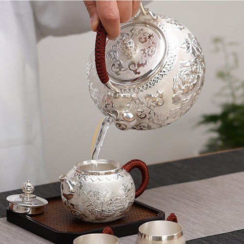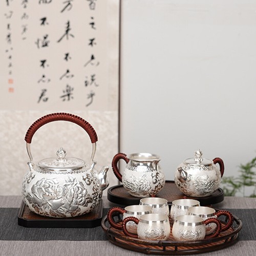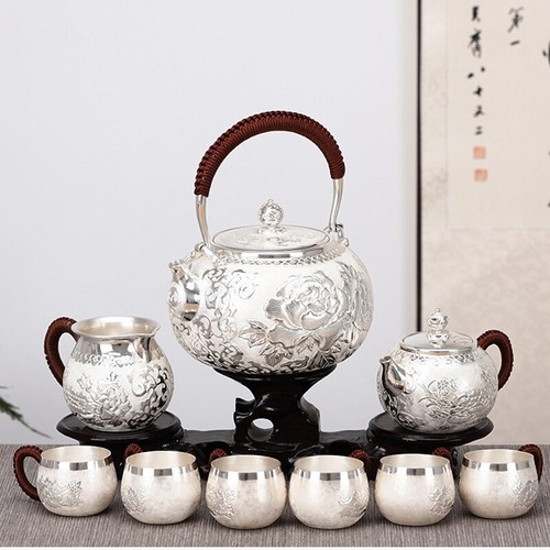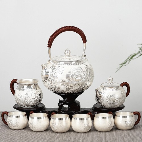 Sterling Silver Tea Set Stove Kettle Tea Pot Tea Cups Handmade Wealth Blooms Set
