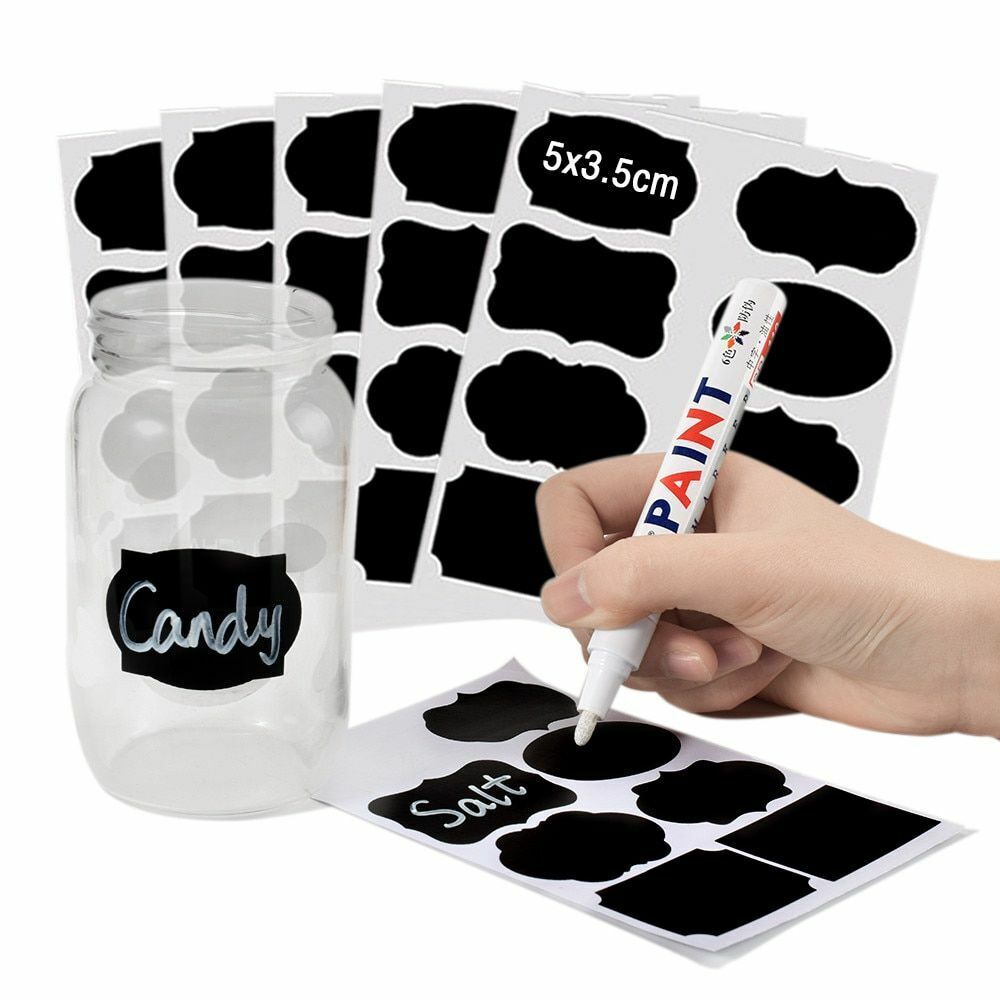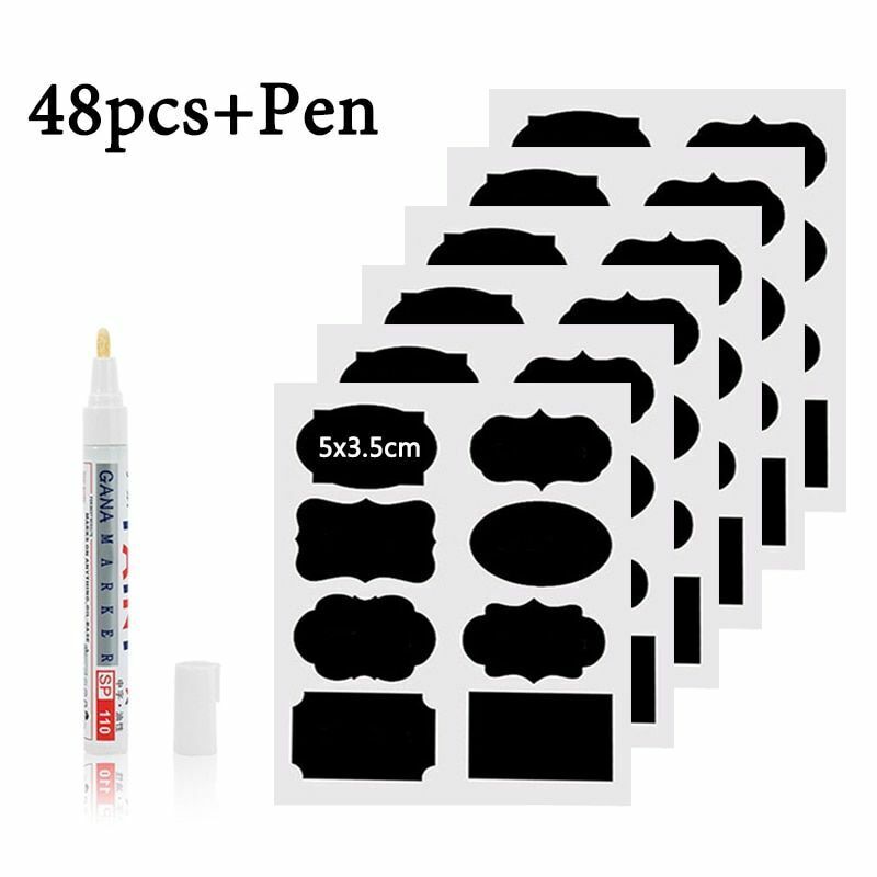 Stickers Waterproof Chalkboard Kitchen 48Pcs/Set Spice Label Home Jar Blackboard