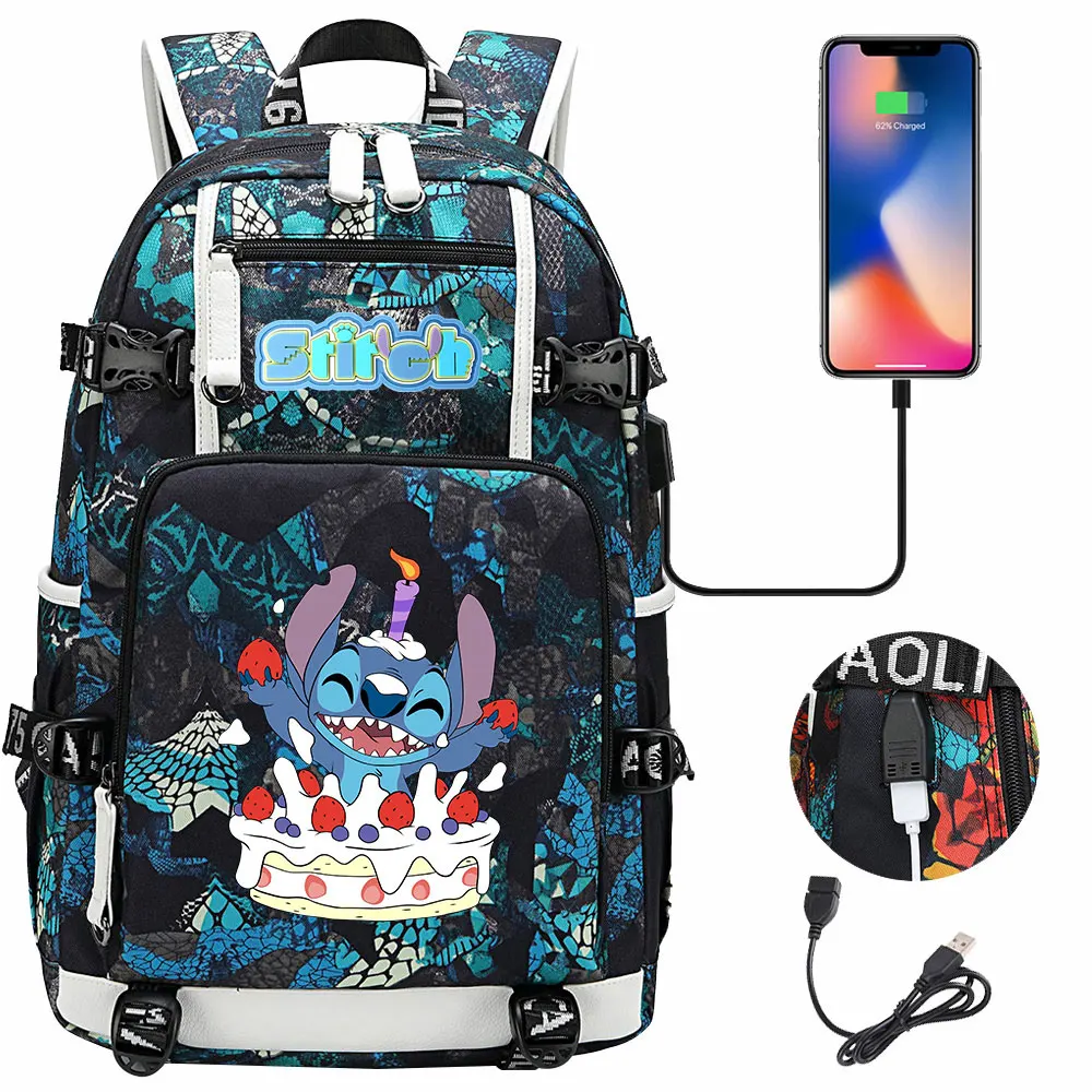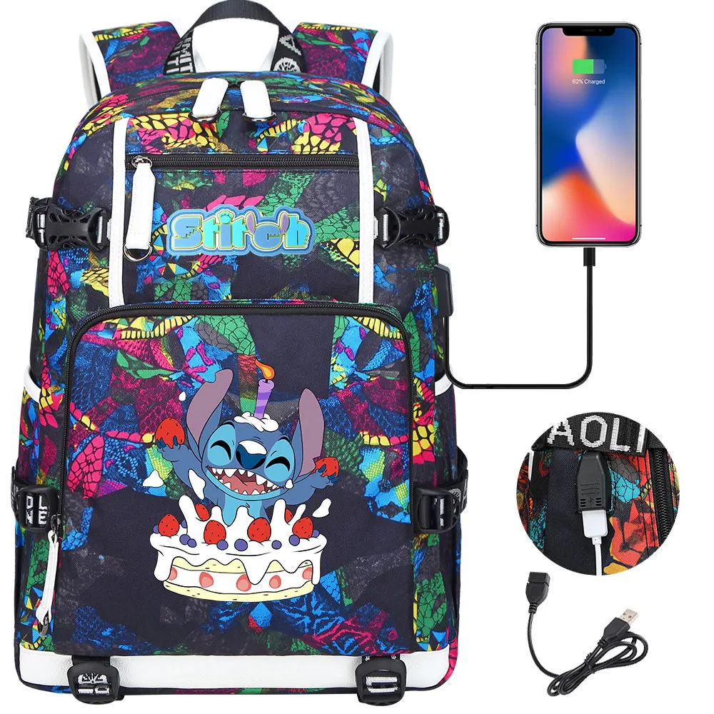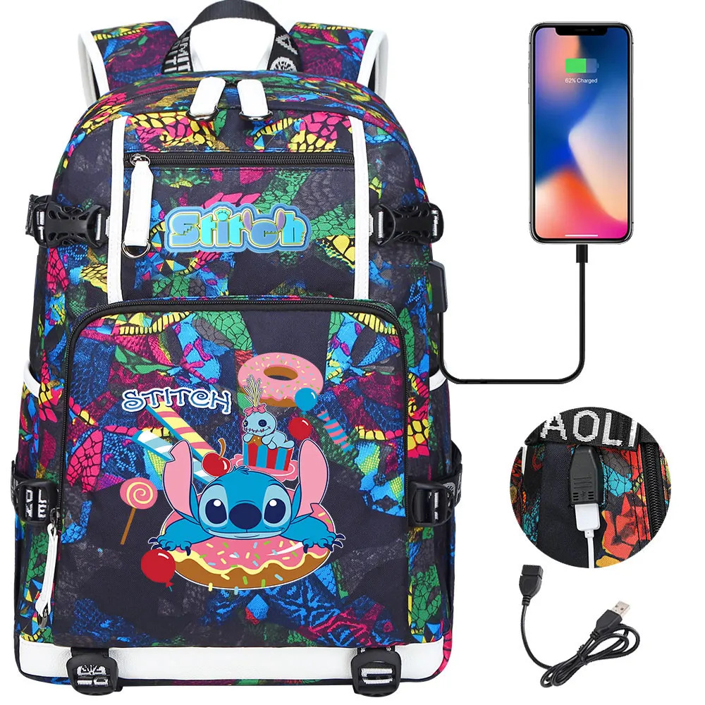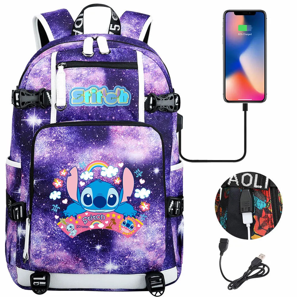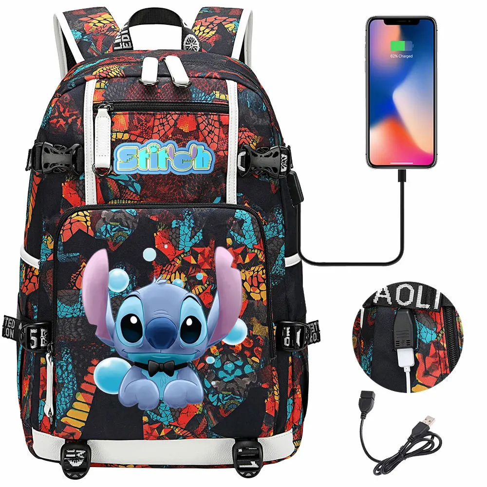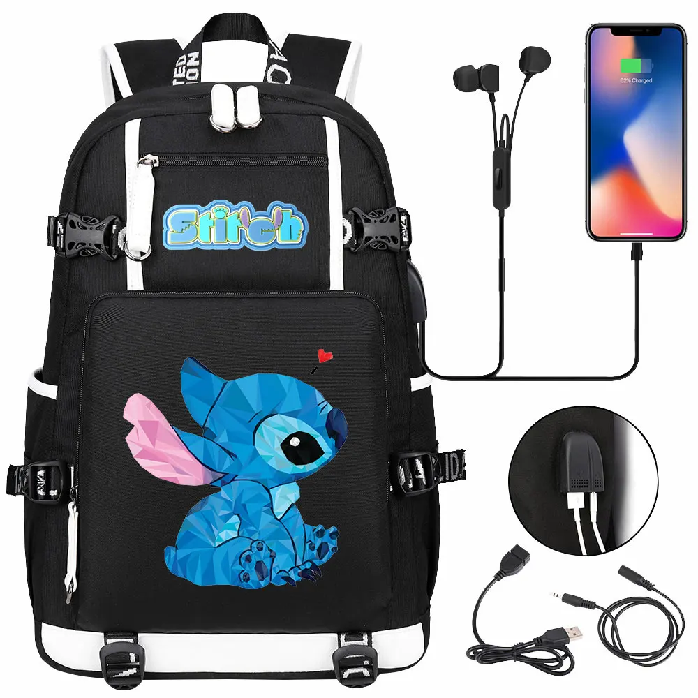 Stitch USB Large Capacity Teenagers Student Schoolbags Women Men Laptop Travel Backpack Boy Girl Kids School Book Bags