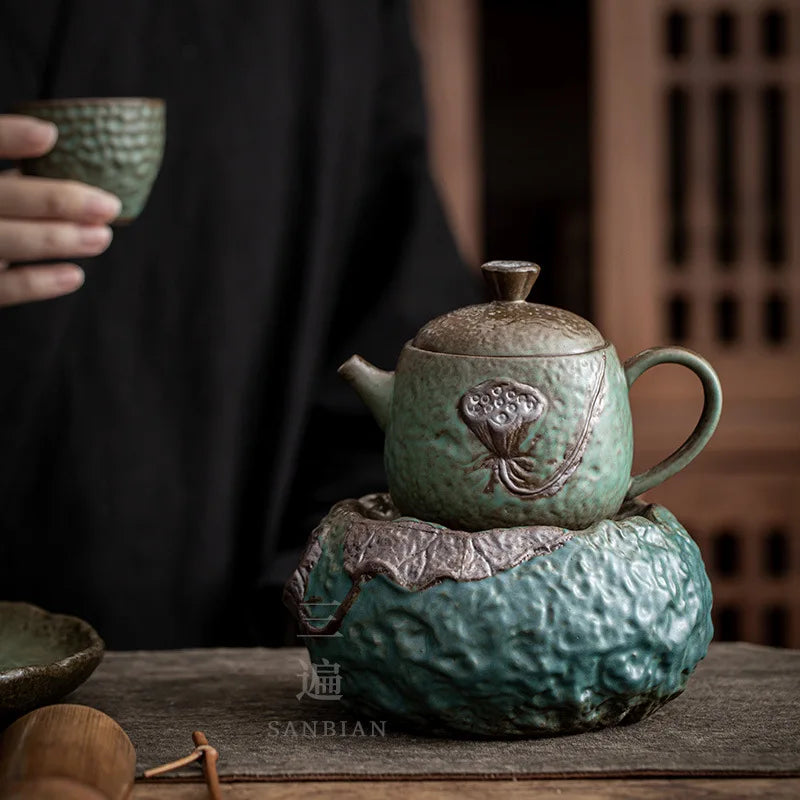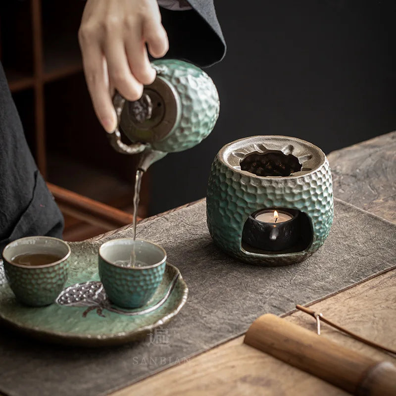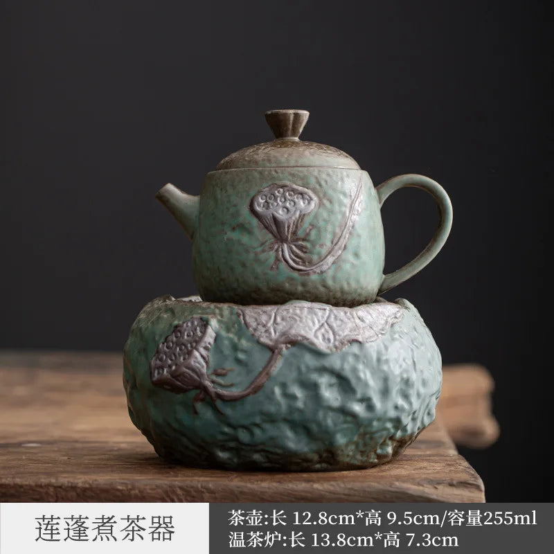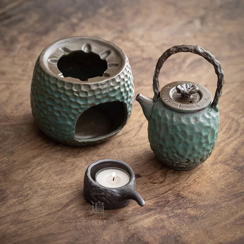 Stoneware Loop-Handled Teapot Warm Tea Stove Set Household Japanese Retro Small Tea Brewing Pot Tea Making Ceramic Kung Fu Tea