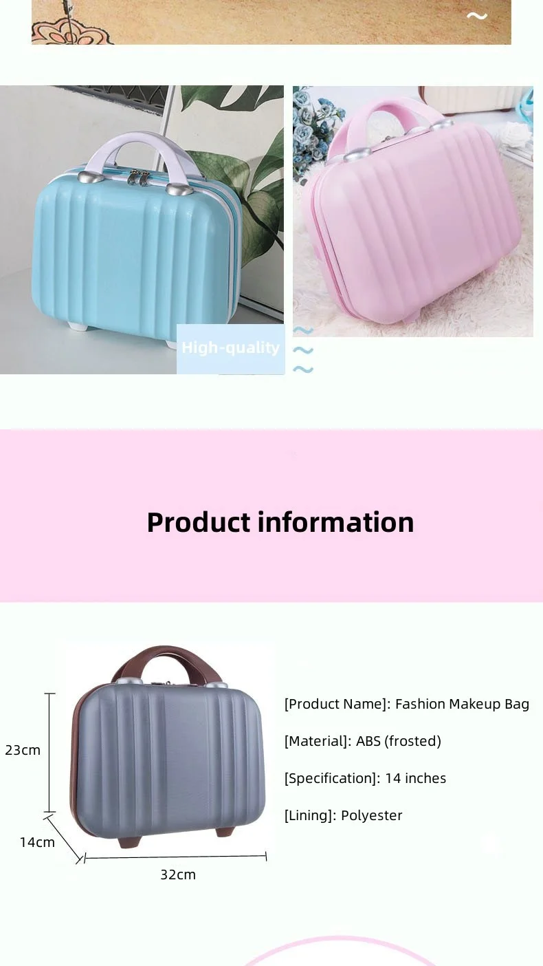 Storage Suitcase for Female Portable Light Boarding Luggage Organizer Case 14 Inch Simple Cosmetic Case Women Small Travel Bag