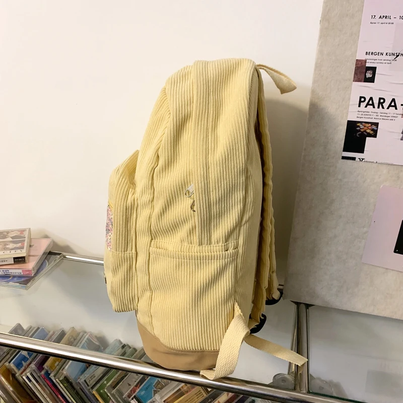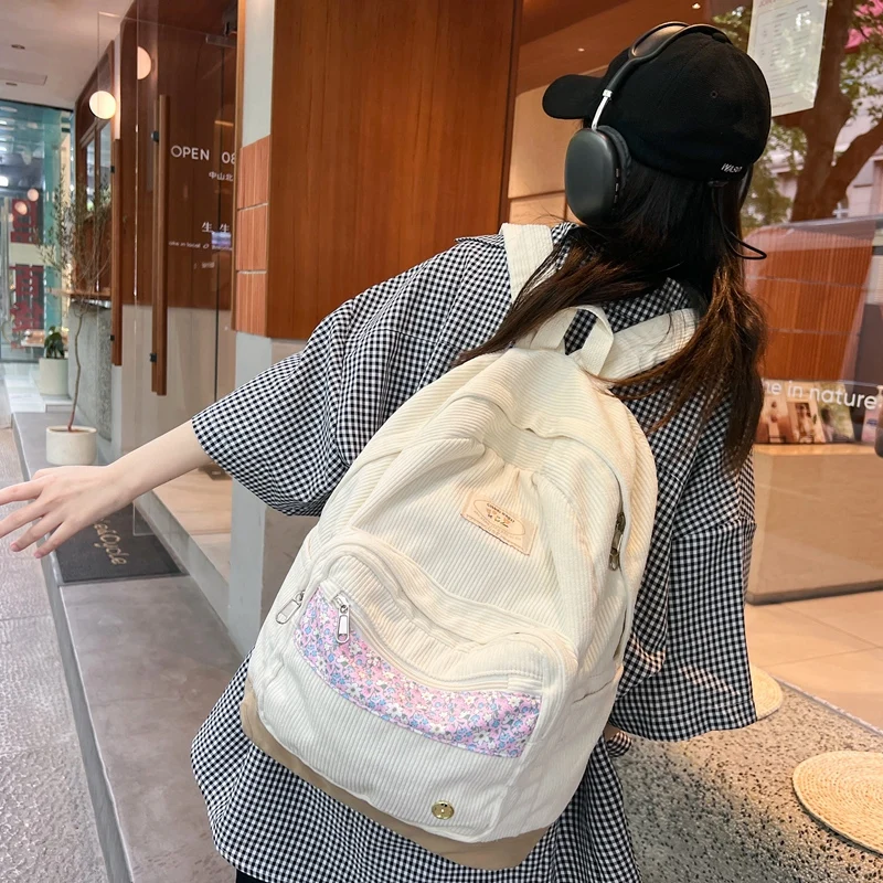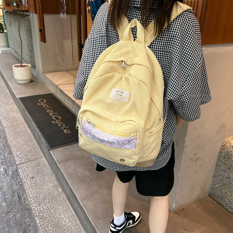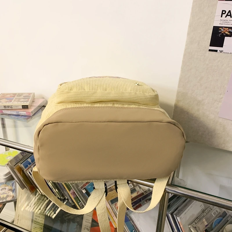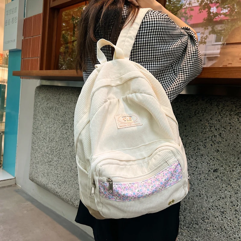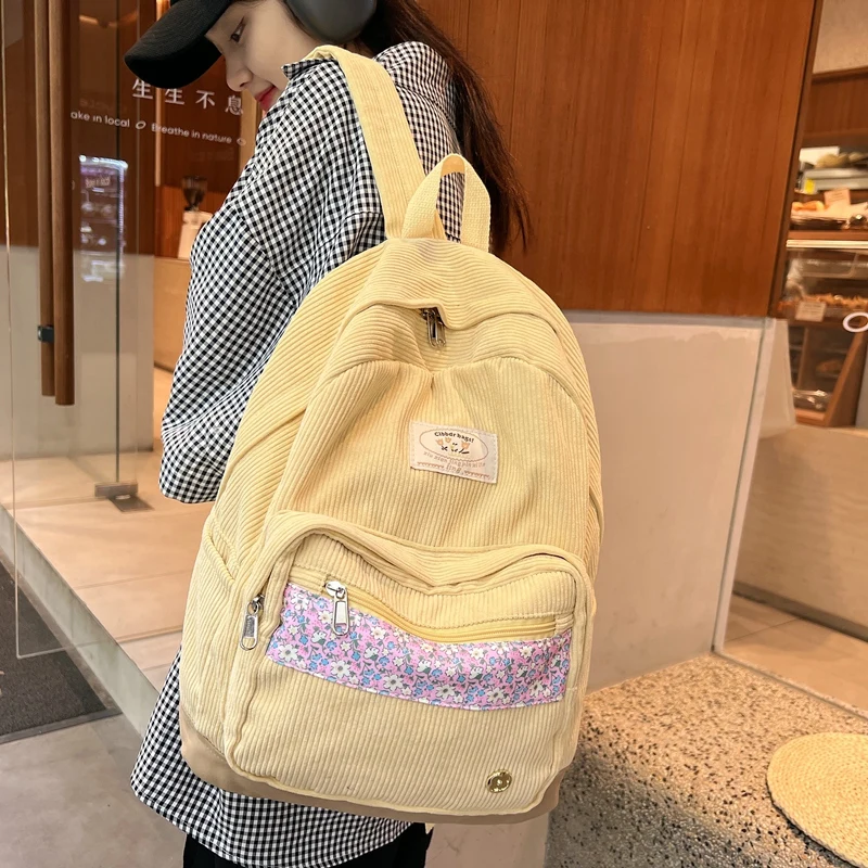 Stripe Cute Corduroy Woman Backpack Schoolbag For Teenage Girls Boys 2023 Harajuku Female Fashion Bag Student Lady Book Pack
