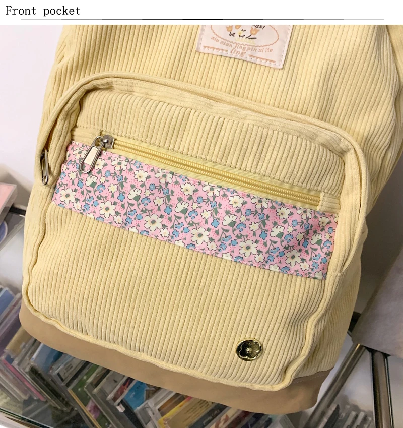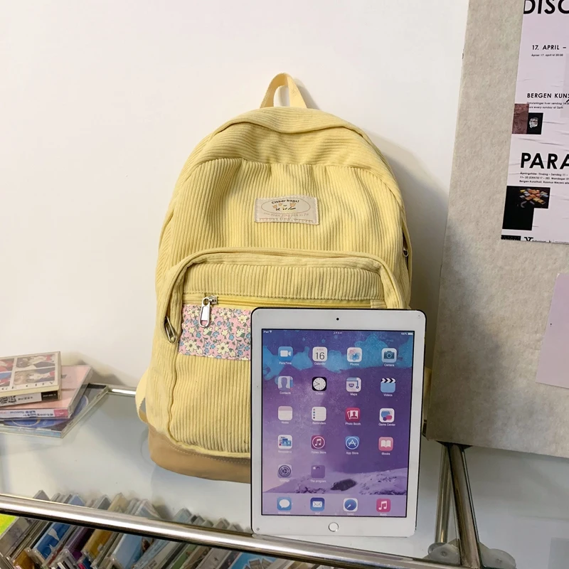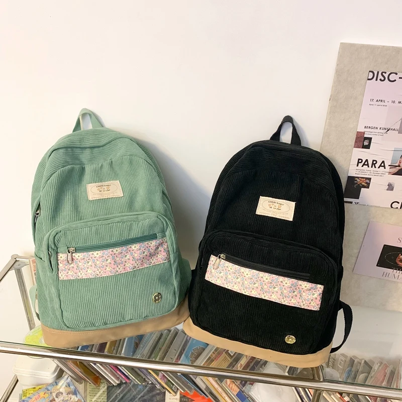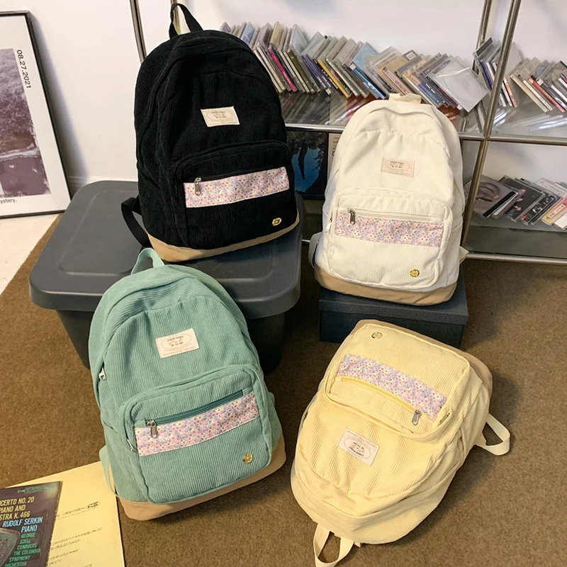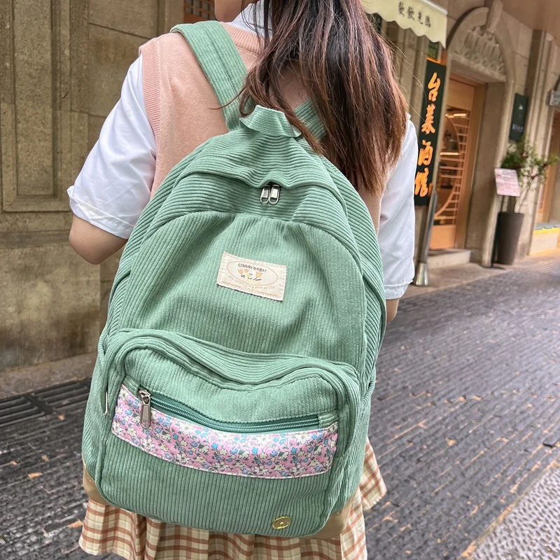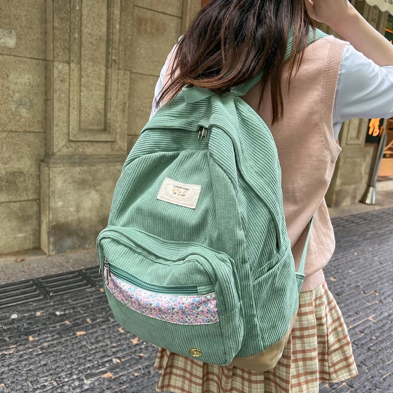 Stripe Cute Corduroy Woman Backpack Schoolbag For Teenage Girls Boys 2023 Harajuku Female Fashion Bag Student Lady Book Pack
