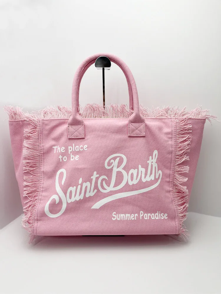 Striped Handmade Tassel Handbag Light Luxury New Women's Large Capacity Tote Bag Fashion Comfortable Casual Travel Canvas Bag
