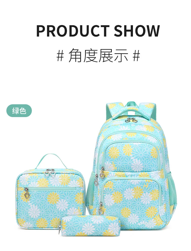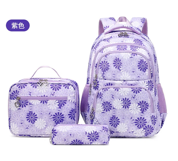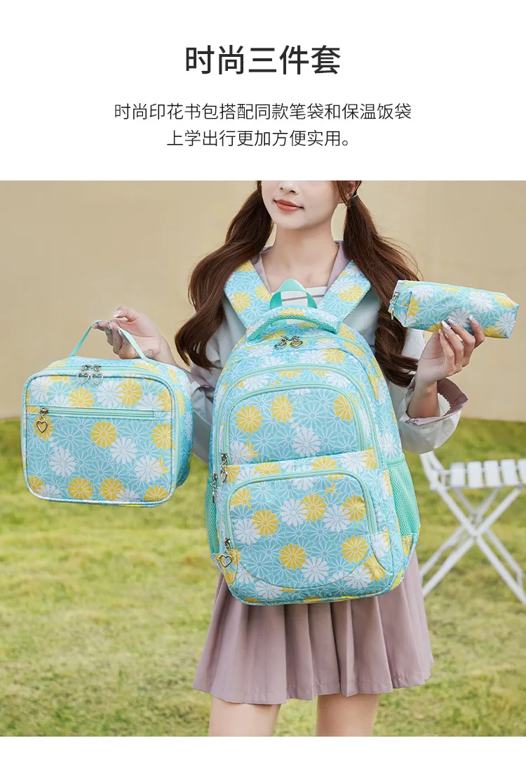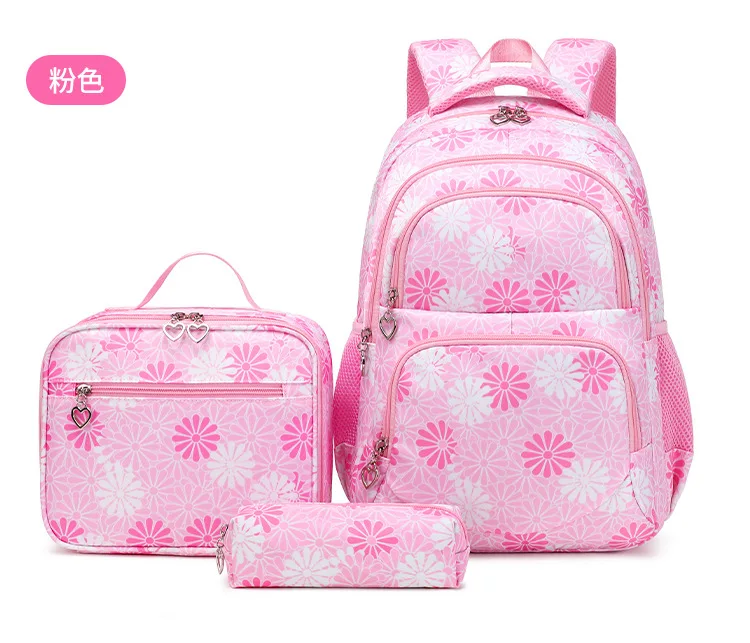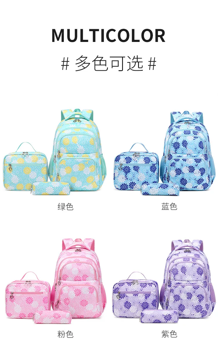 Student Backpack 3pc/Set Waterproof Primary Schoolbag for Children Girls Large Capacity Printing Bookbag Lunch Bag Pencil Bag
