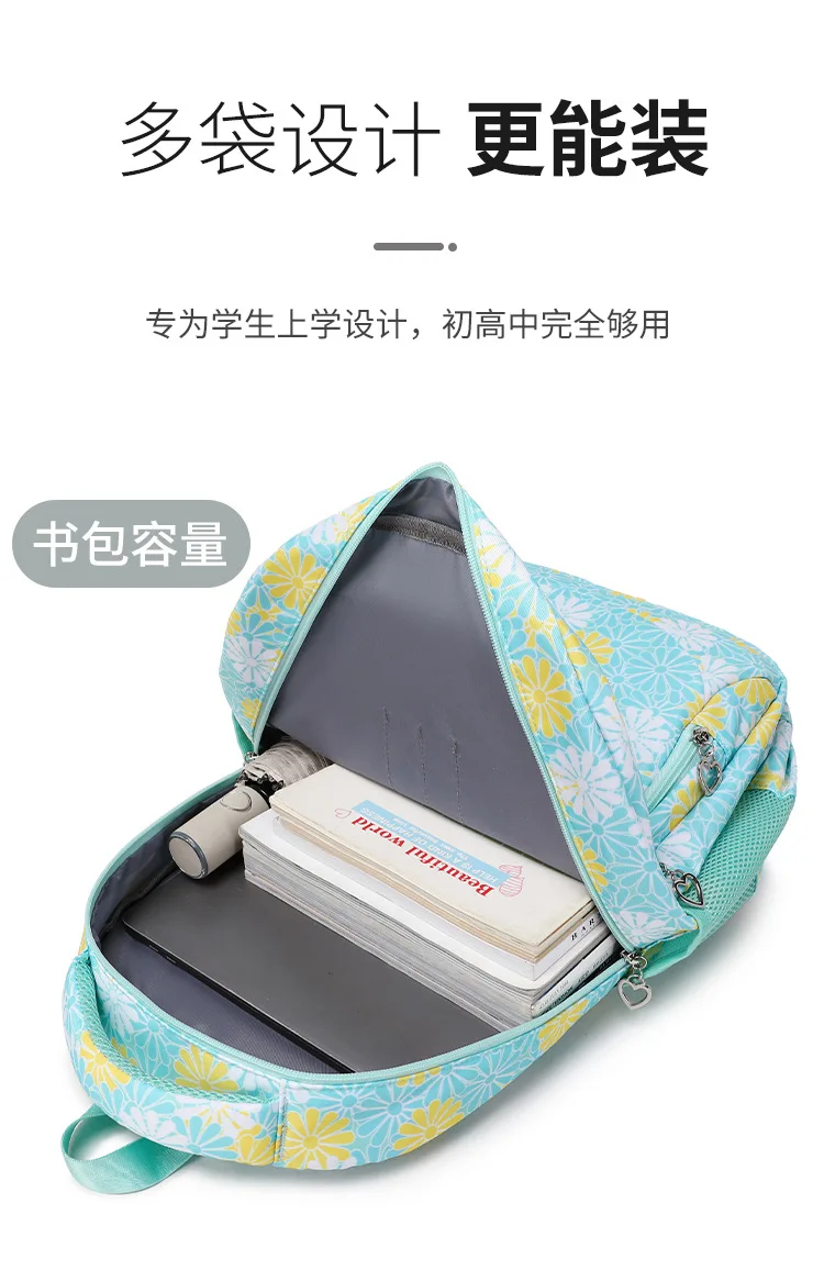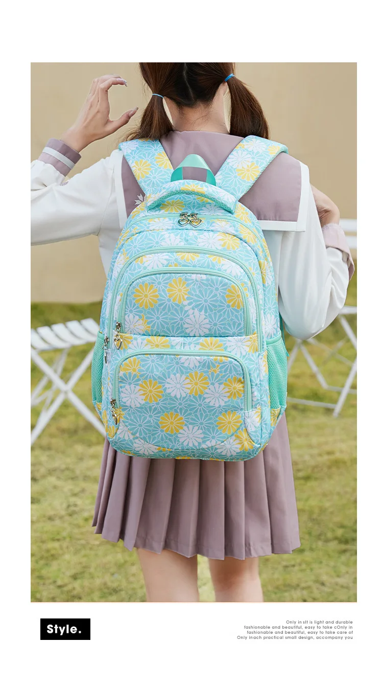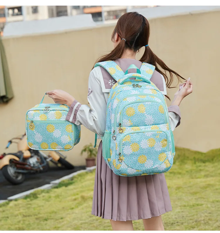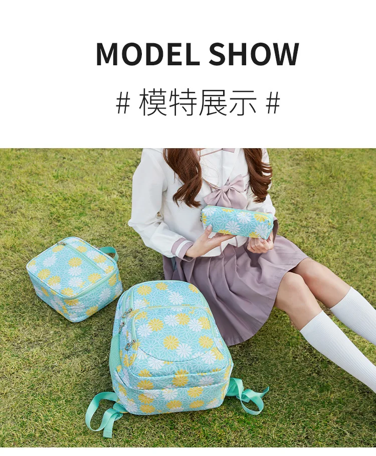 Student Backpack 3pc/Set Waterproof Primary Schoolbag for Children Girls Large Capacity Printing Bookbag Lunch Bag Pencil Bag