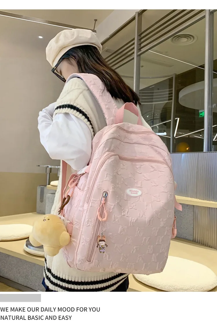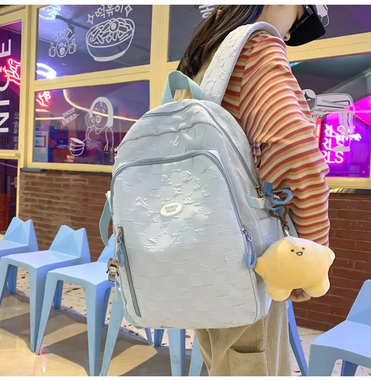 Student Shoulder Backpack Casual Solid Color Hiking Backpack Outdoor Sport School Bag Large Capacity Travel Laptop Rucksack