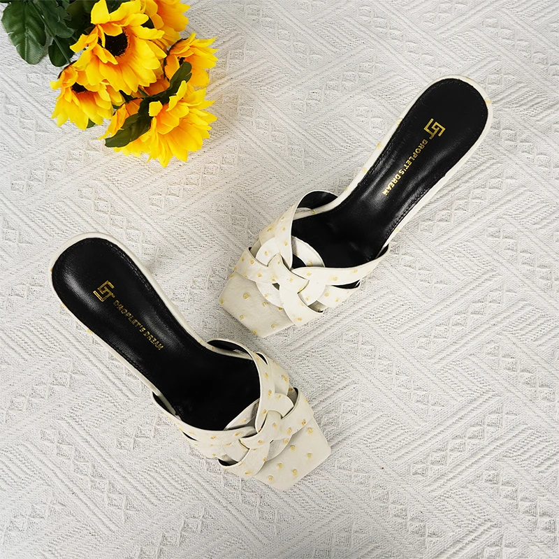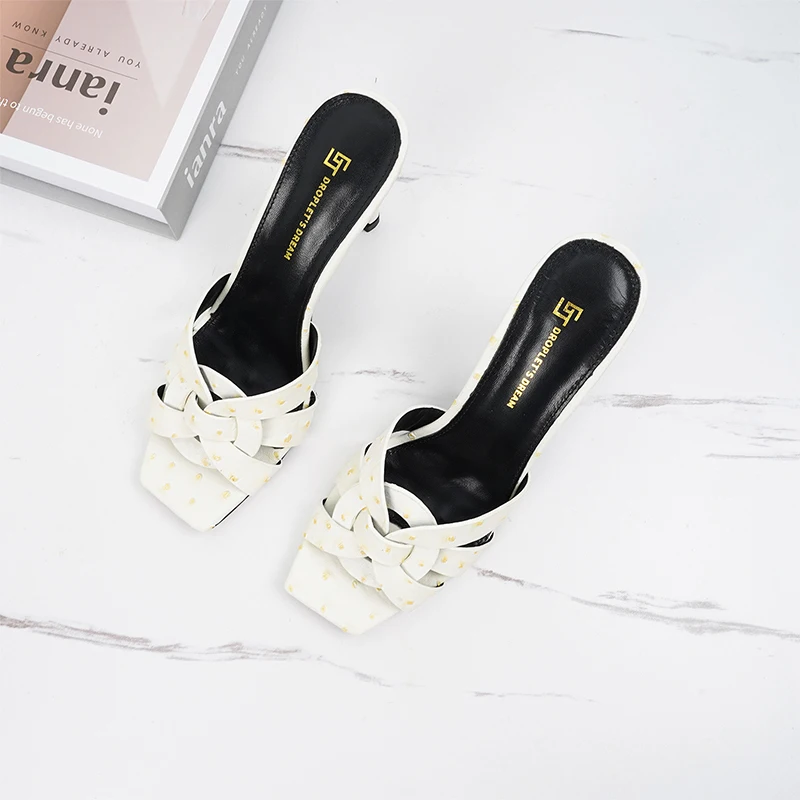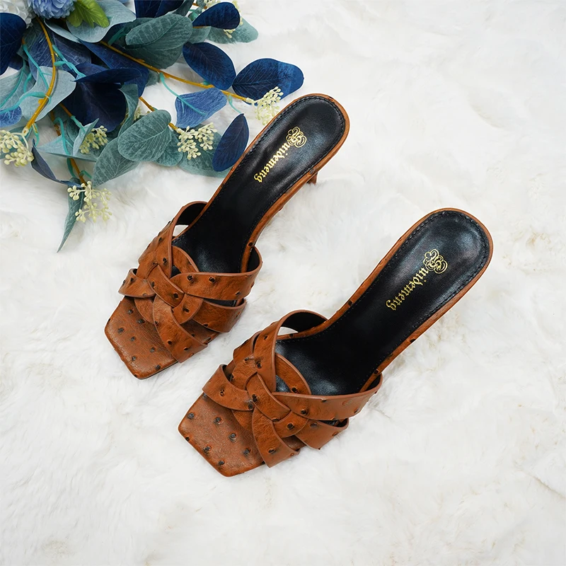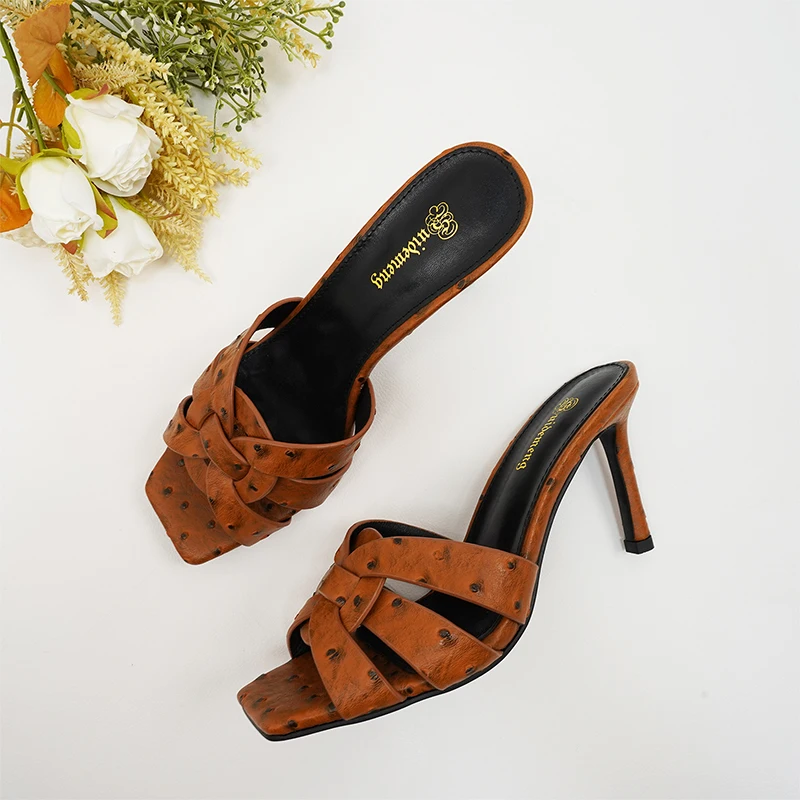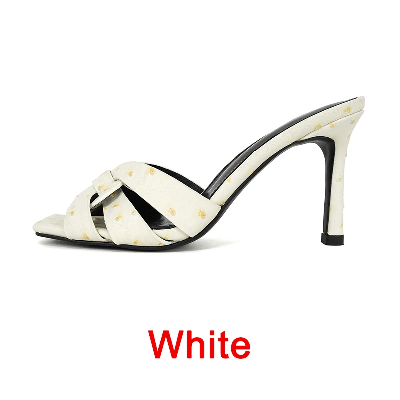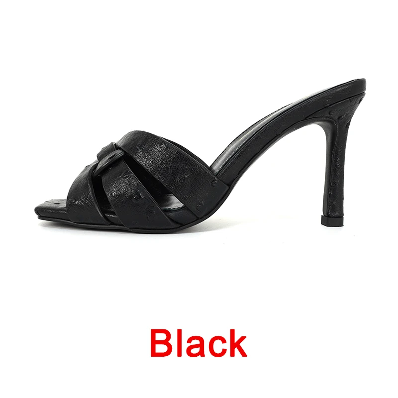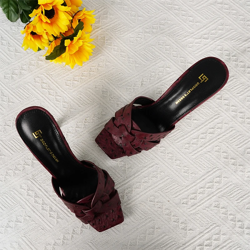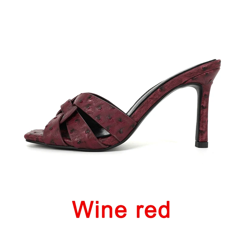 Summer High-heeled Fish-mouth Green Ostrich Women's Slippers Leather 41 42 43 44 Thin-heeled plus size Sandals