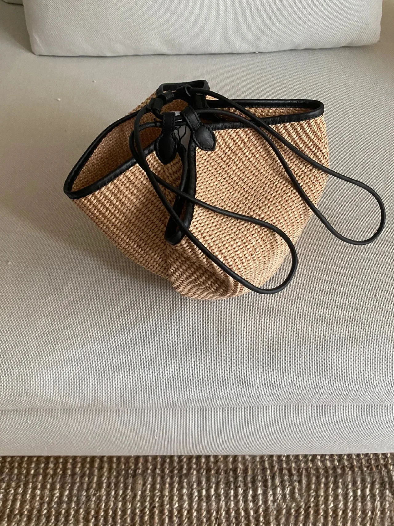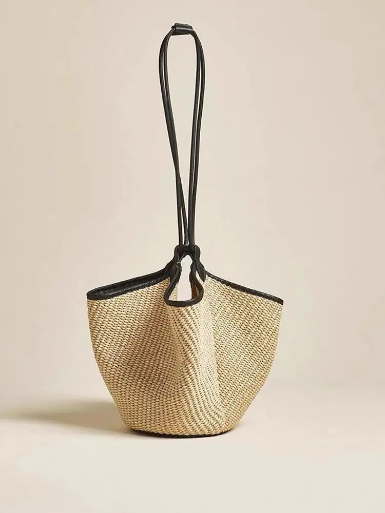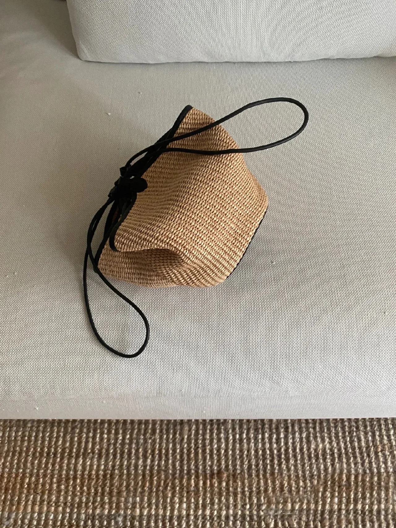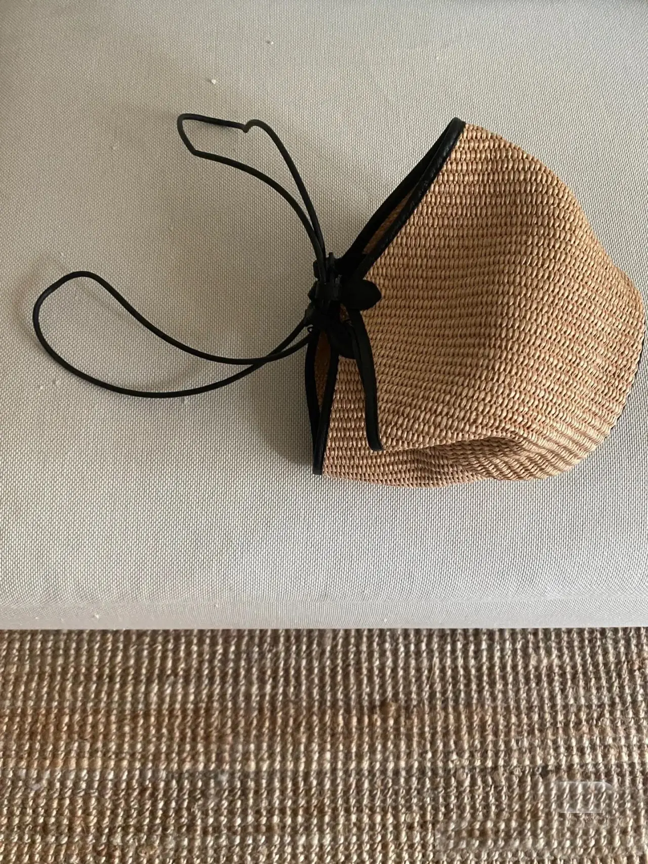 Summer Straw Shoulder Bags Drawstring Women's Straw Bucket Bag Purse Raffia Woven Straw Handbags Casual Tote Beach Crossbody Bag