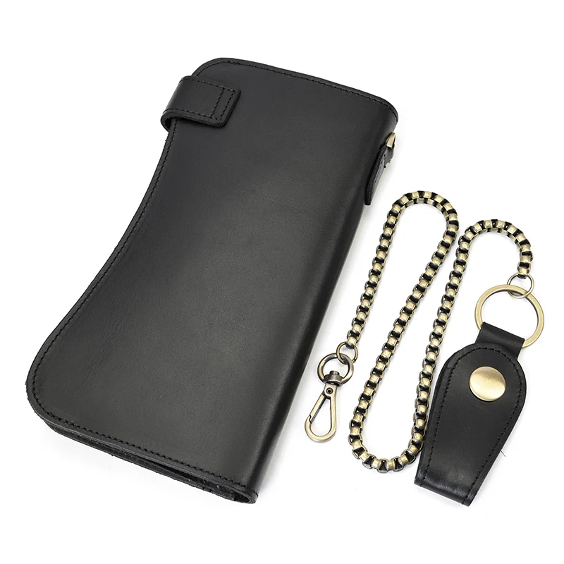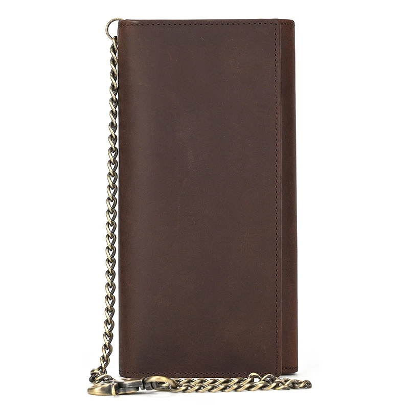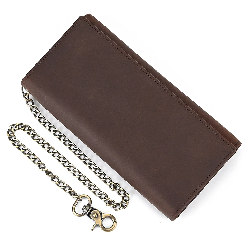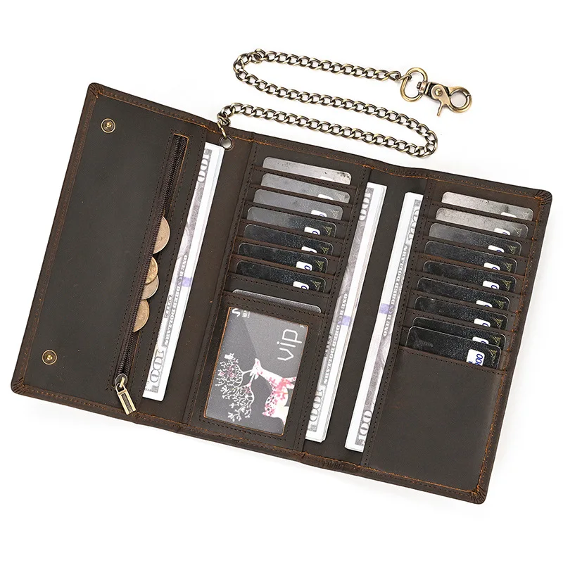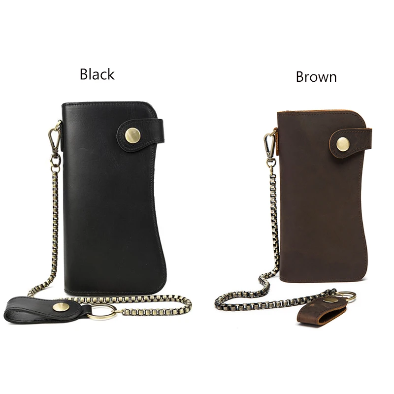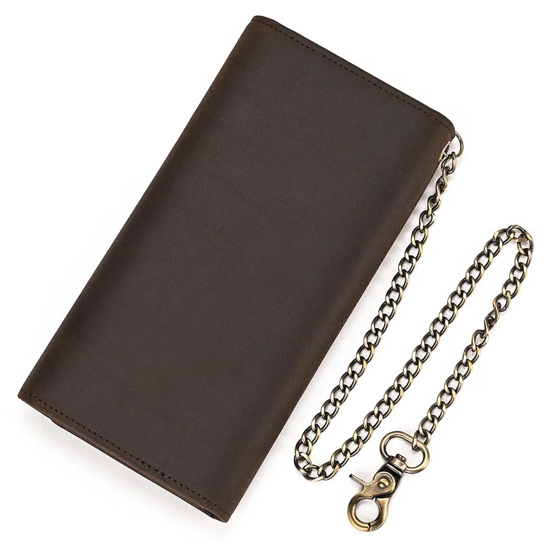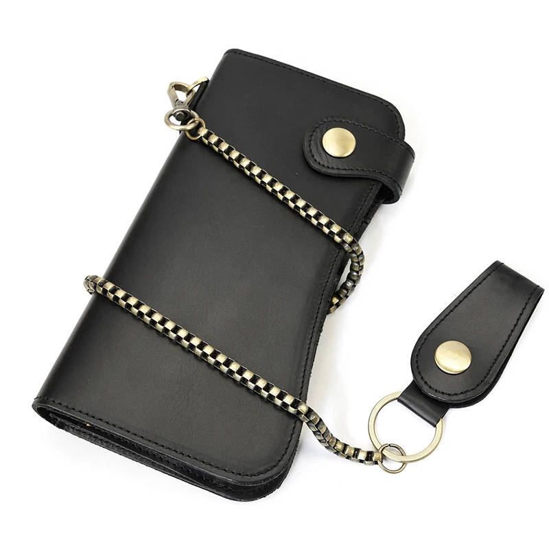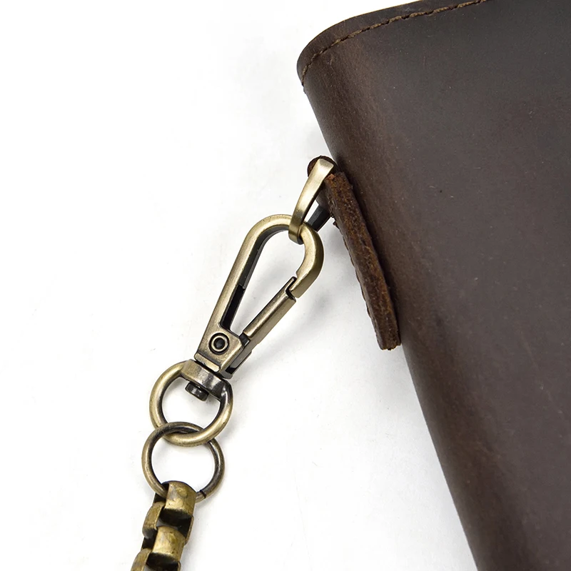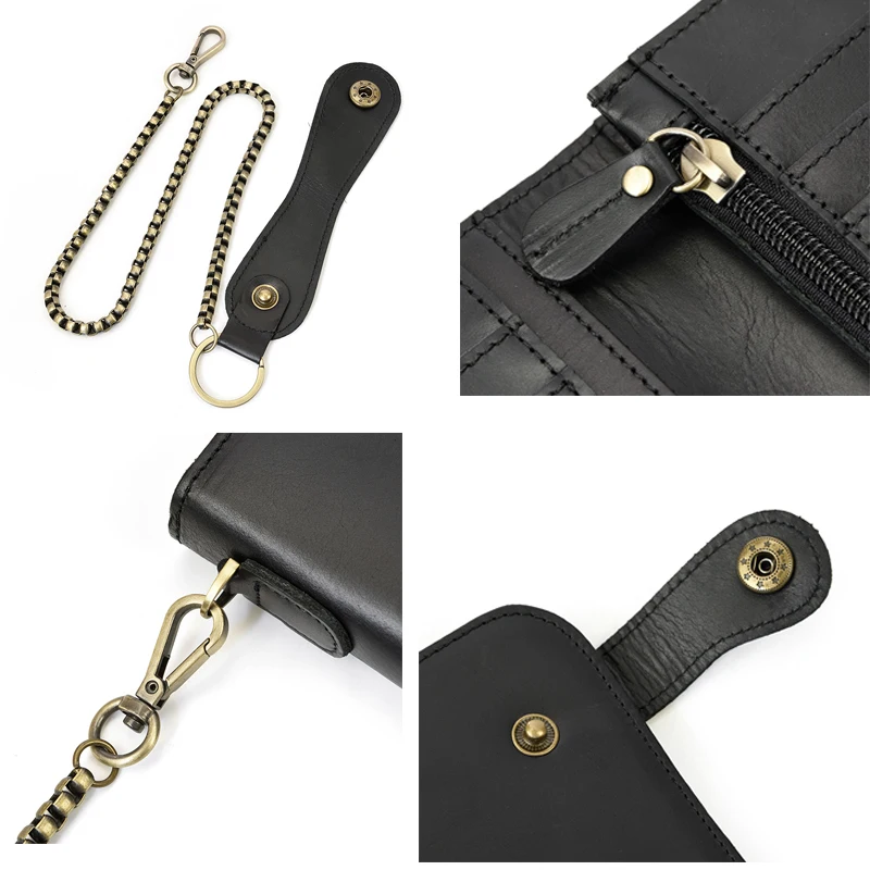 Super Quality Leather Wallet With Iron Chain 100% Cowhide Leather Black Bifold Card Wallet Men Hot Metal Chain Wallet Male