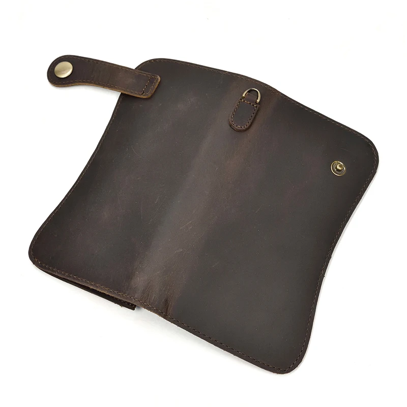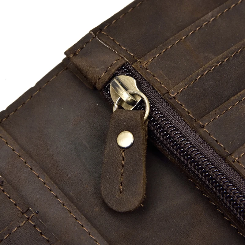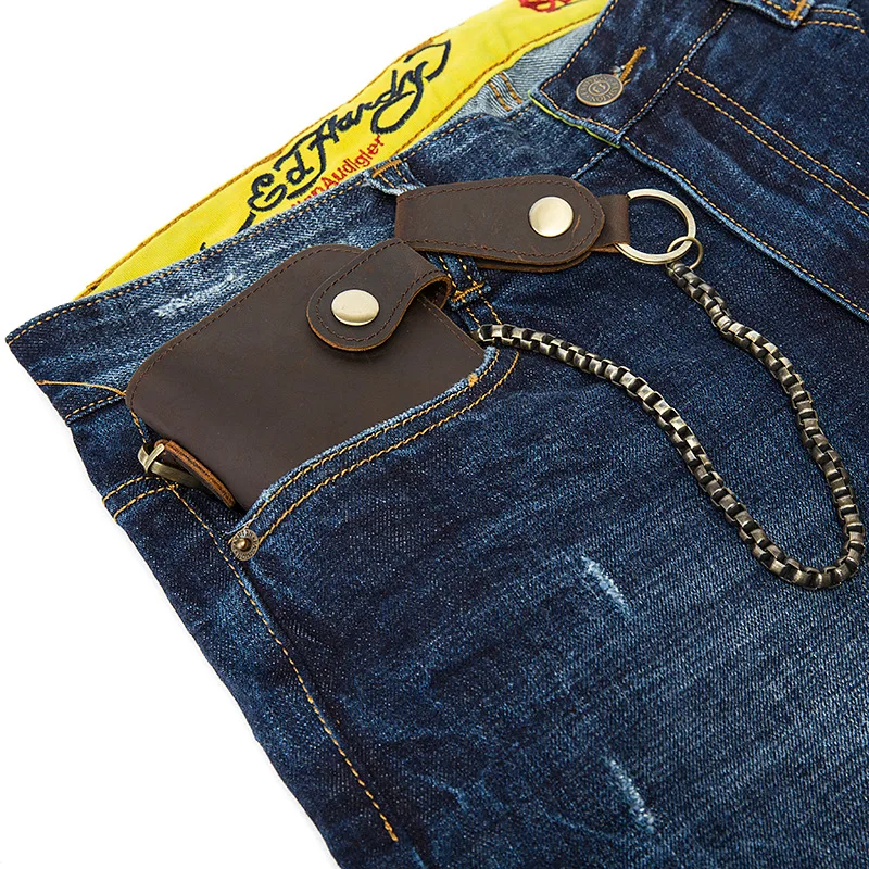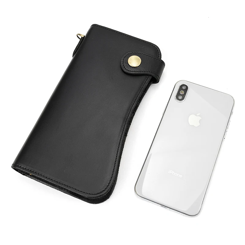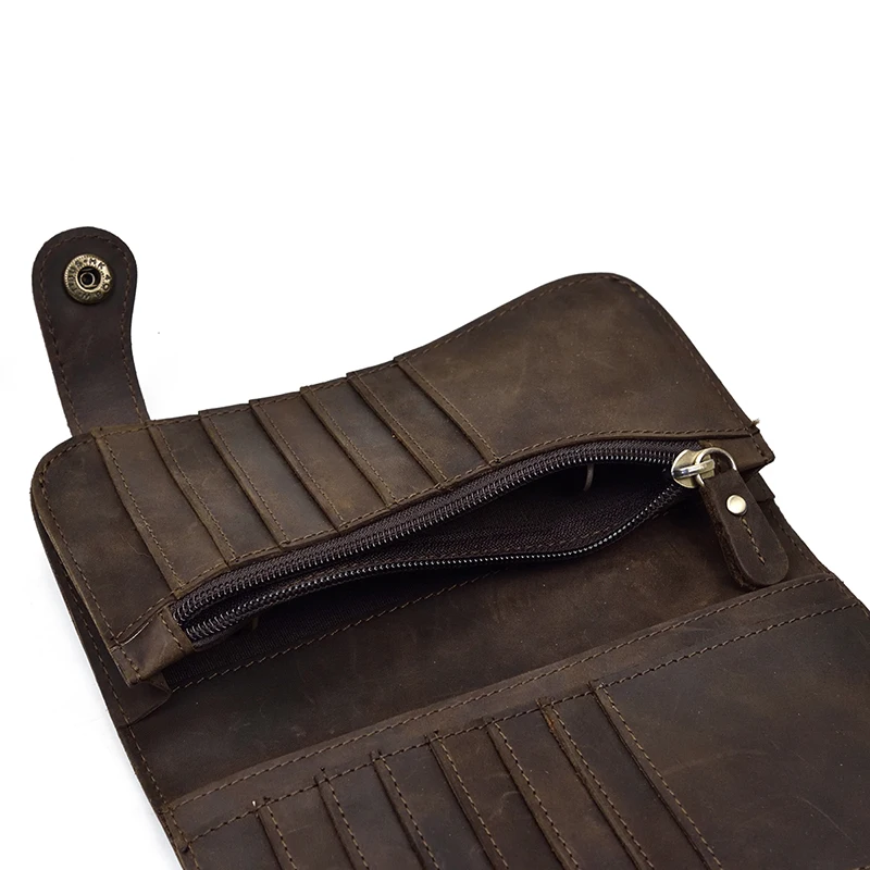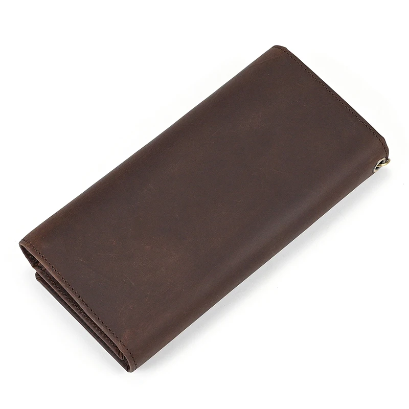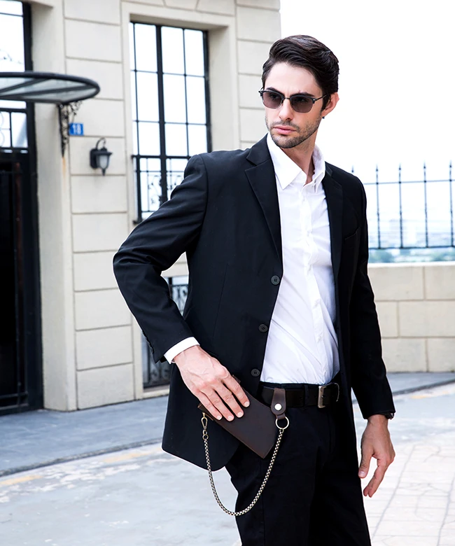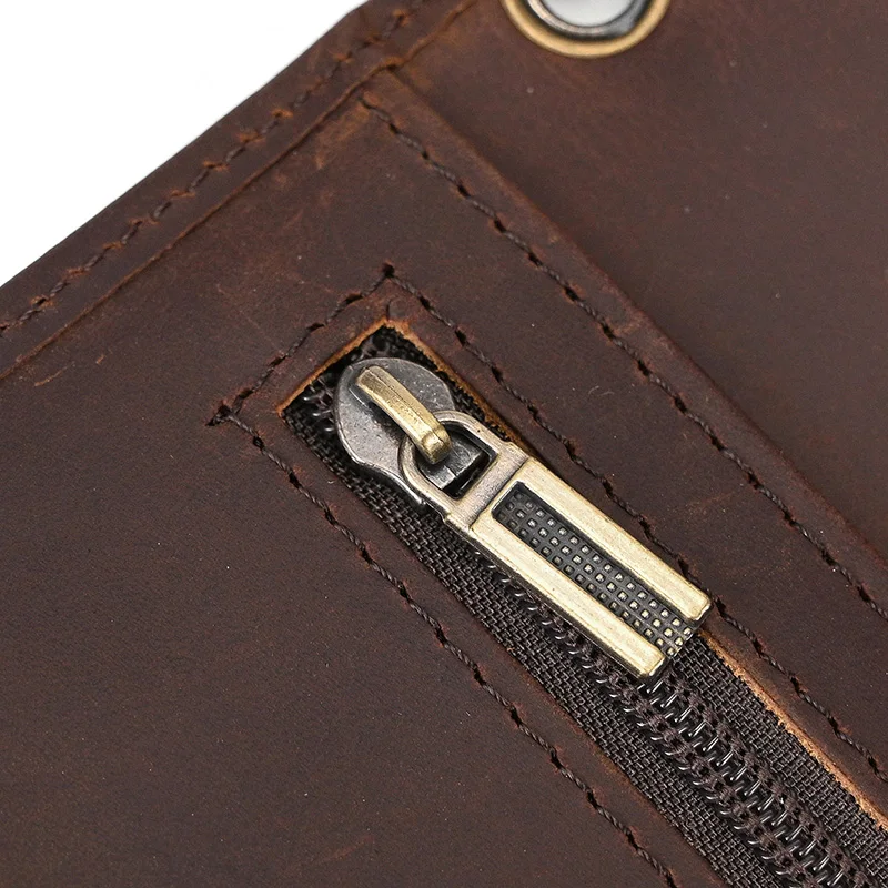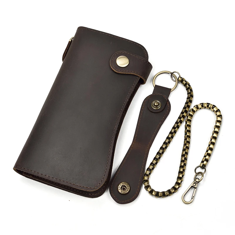 Super Quality Leather Wallet With Iron Chain 100% Cowhide Leather Black Bifold Card Wallet Men Hot Metal Chain Wallet Male