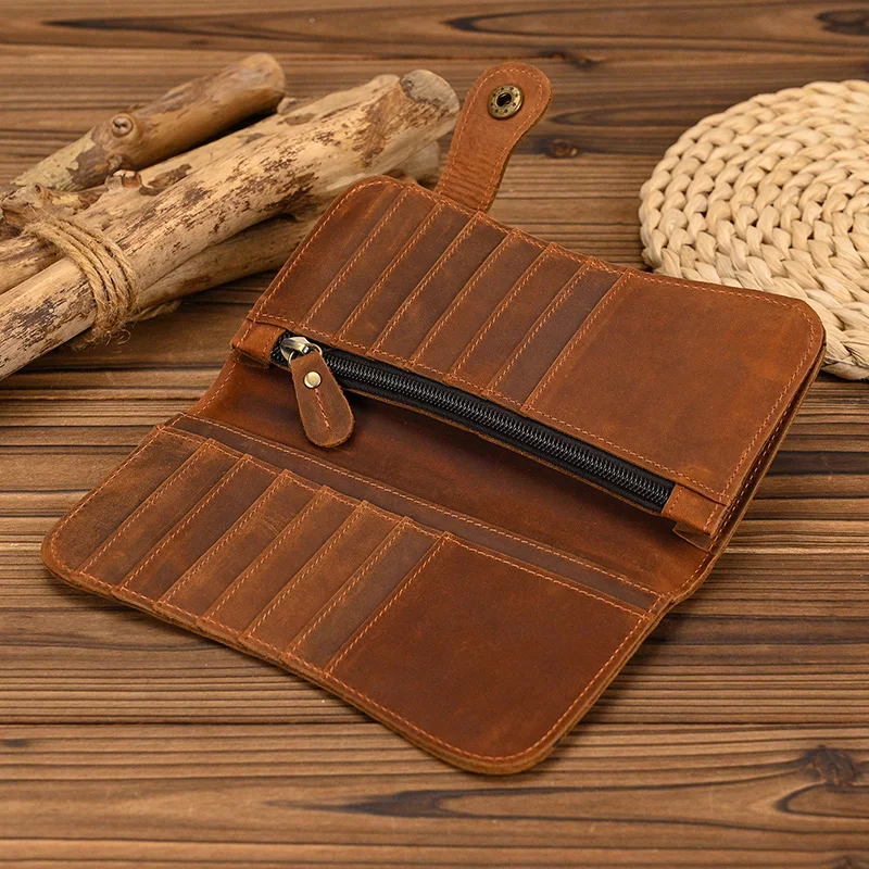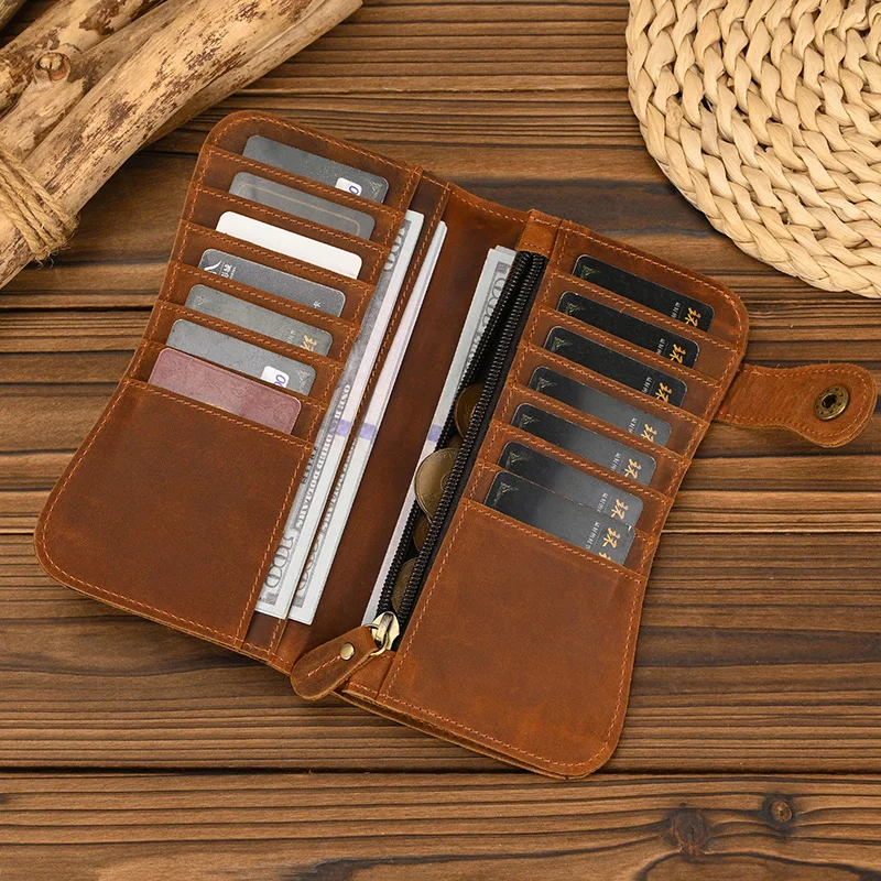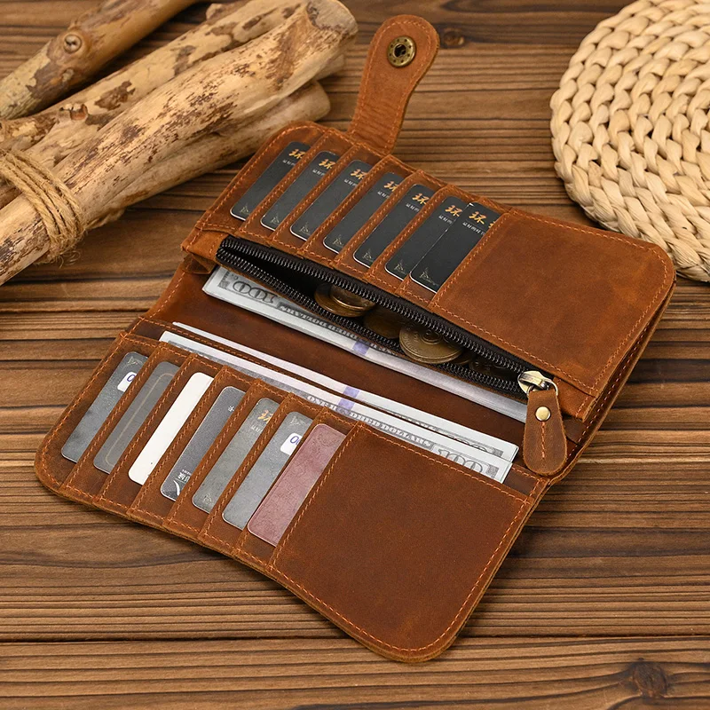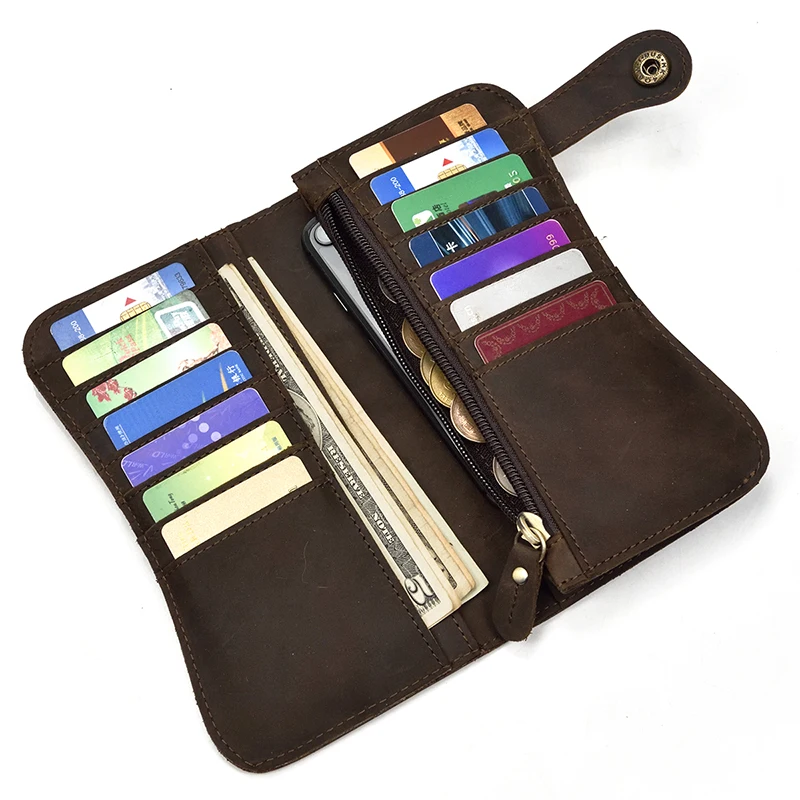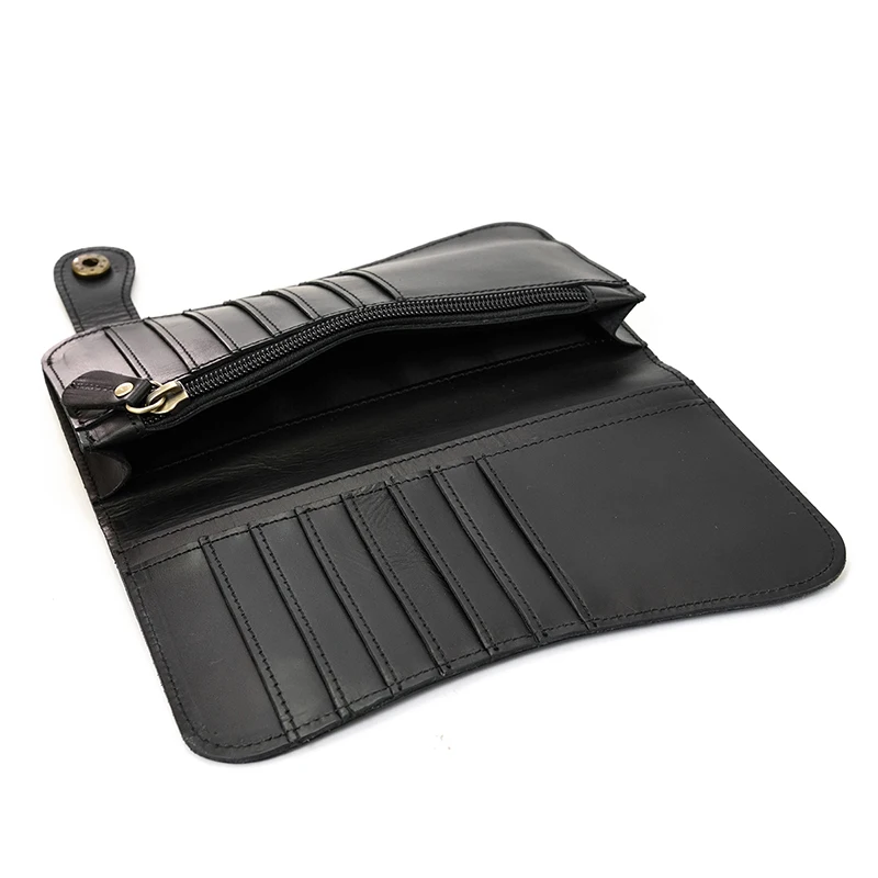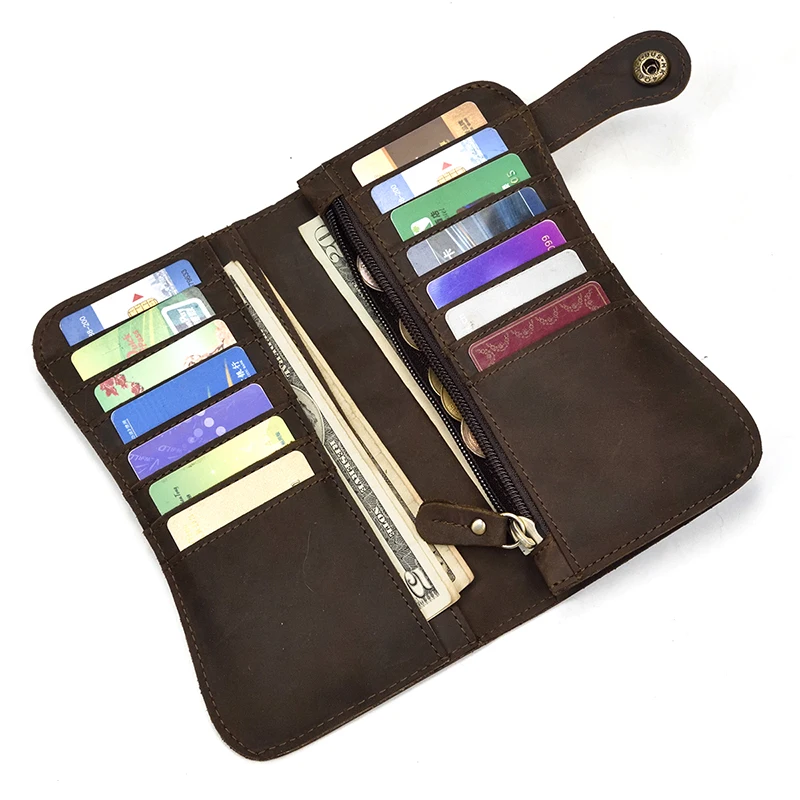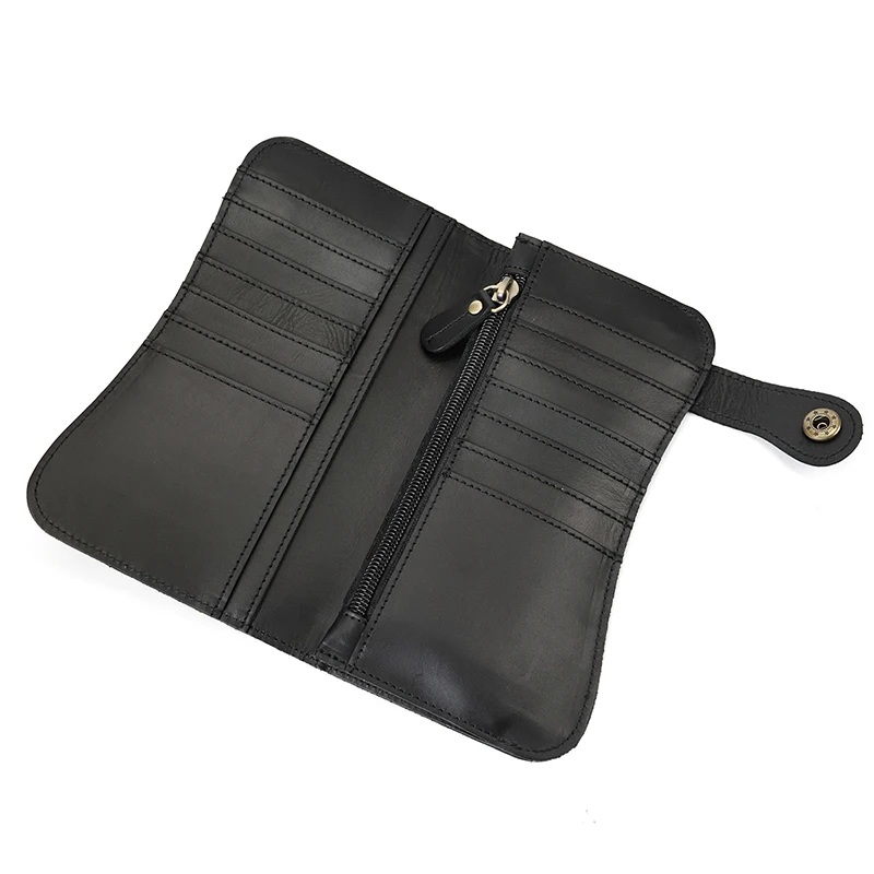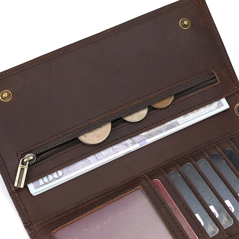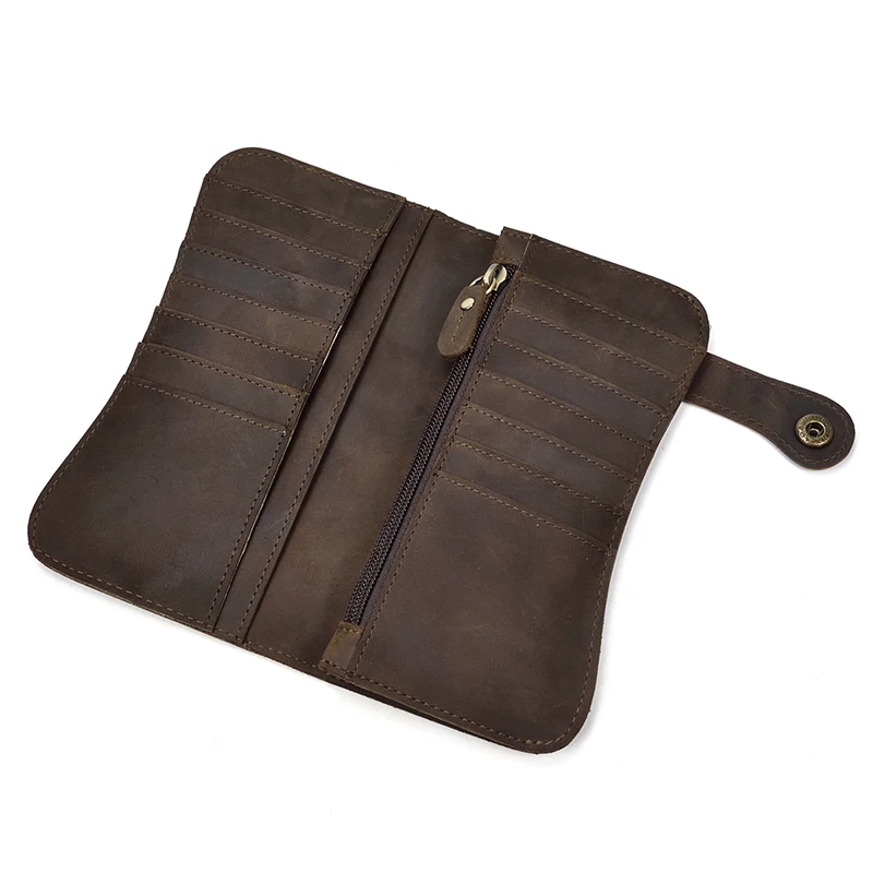 Super Quality Leather Wallet With Iron Chain 100% Cowhide Leather Black Bifold Card Wallet Men Hot Metal Chain Wallet Male