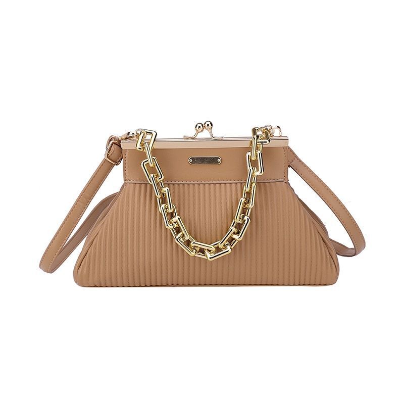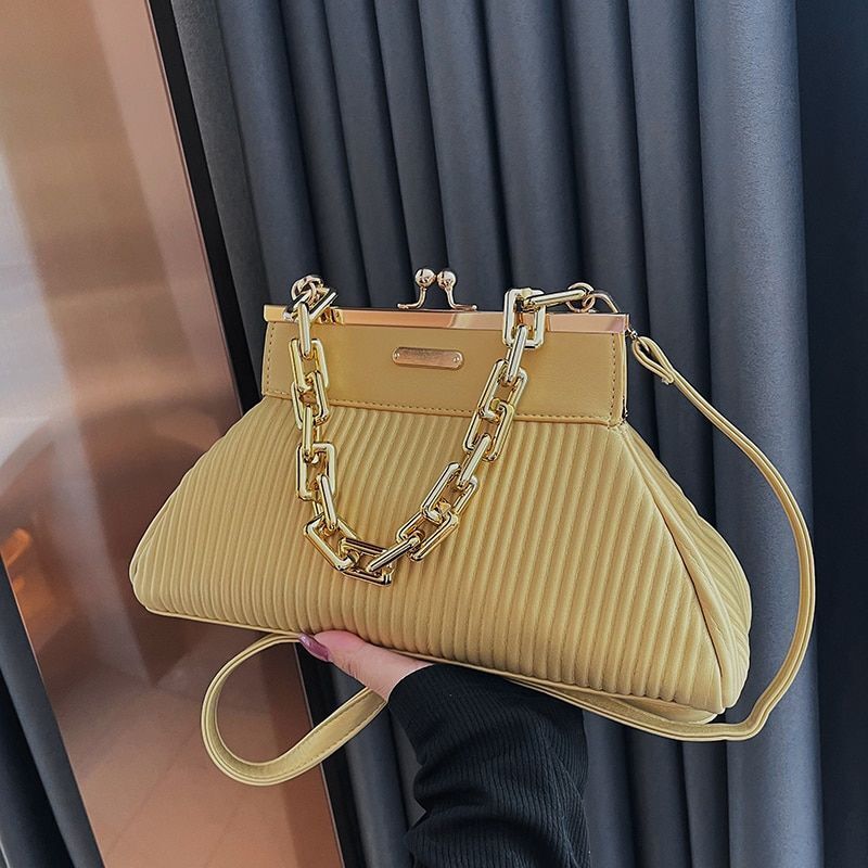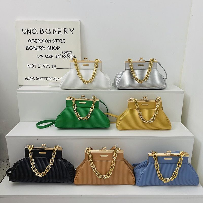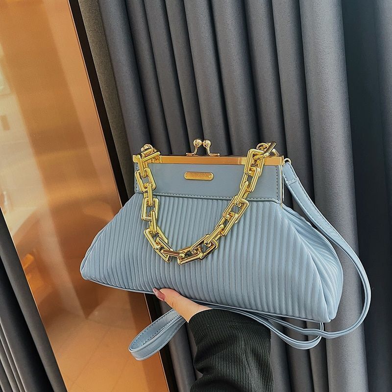 Synthetic Leather Pleated Shoulder Bag Thick Chain Handle Purse 18*31*11 CM Blue