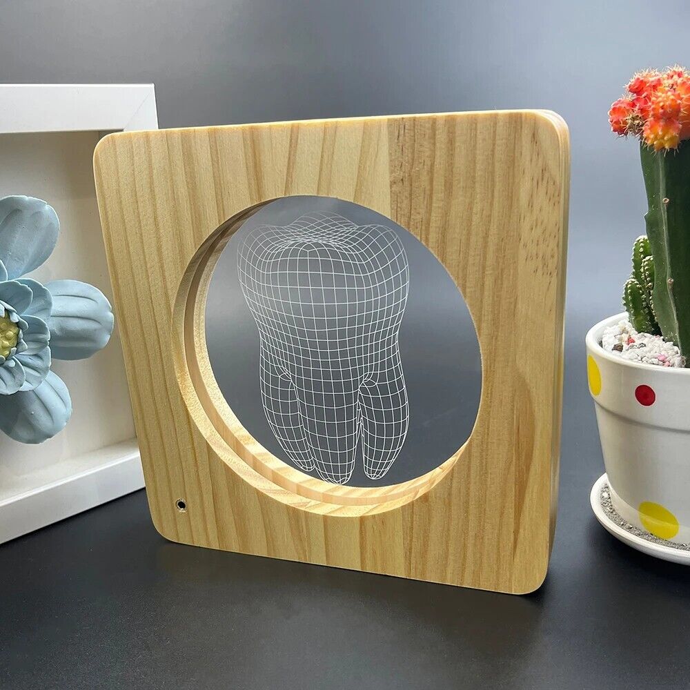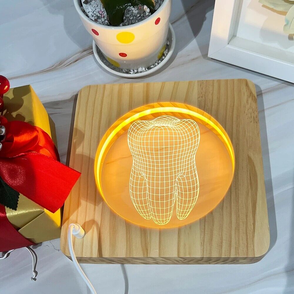 - Overall, the Creative LED Wood USB Light 3D Tooth Shape Table Lamp is a delightful and practical lighting accessory that combines style, functionality, and eco-friendliness. Whether used as a night light for kids, a decorative accent for dental-themed spaces, or a unique gift for birthdays or baby showers, this lamp adds charm and warmth to any room.