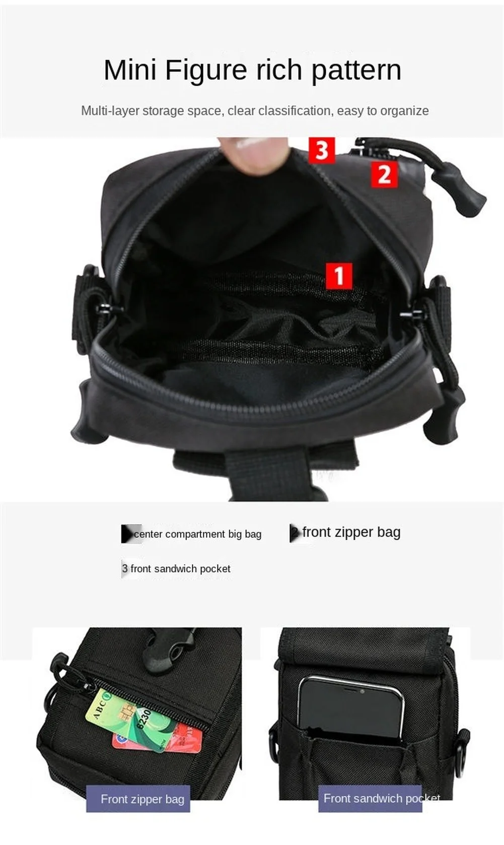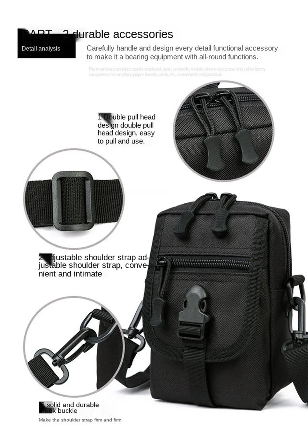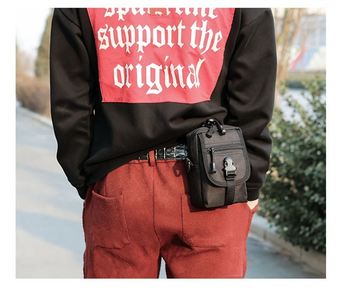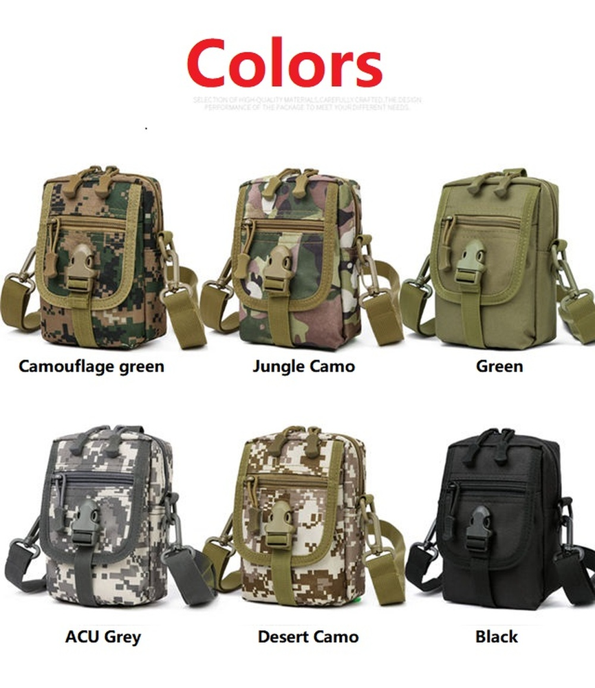 1*Tactical Pouch bag Specification: Product Name:Tactical Pouch Size:18cm*8cm*13cm Color:Black/Jungle camo/Green/Camoflage camo/ACU/Desert camo Material:Reinforced zinc alloy buckle and nylon webbing Feature: -800D nylon material, waterproof and durable. -Can carry mobiles, pens, cigarettes, wallets, carabineers items,digital camera, smart phone, cigarette lighter, portable flashlight, GPS devise and other camping items. -Great for outdoors, tactical sports, hiking, climbing, EDC use and etc Note: -The color of the item may vary slightly due to photography and different PC monitor. -The size might be slightly different due to manual measurement. Your kindly understanding would be appreciated.