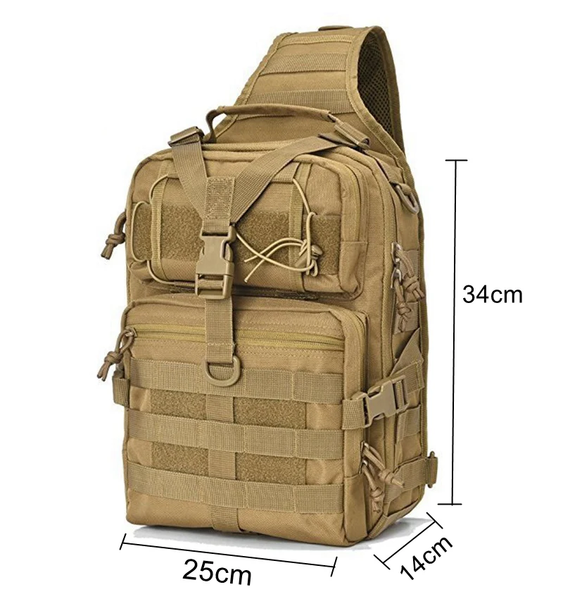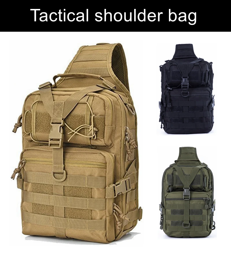 - It is crafted from military 600D oxford fabric, high intensity and durable. weather. - Adjustable and stowaway shoulder strap. - Various attachment points for modular expansion. For : Cycling, Adventure, Traveling, Climbing, Hiking, Camping, Fishing Material : Nylon,600D Oxford Features : Tactical Style Color : Balck, Army green, Khaki Product size : 34cm * 25cm * 14cm Package Contents : 1 x Tactical Shoulder Bag Note: Light shooting and different displays may cause the color of the item in the picture a little different from the real thing. The measurement allowed error is +/- 1-3cm.