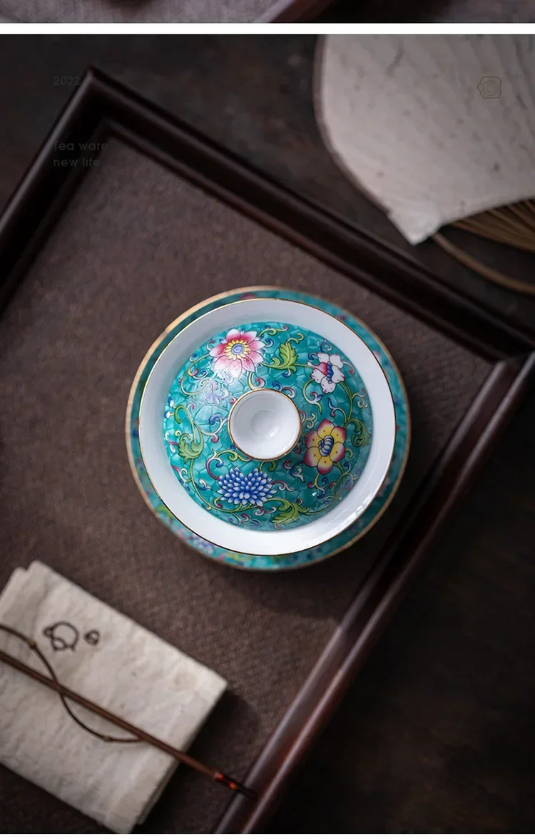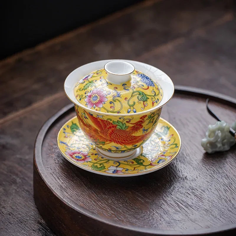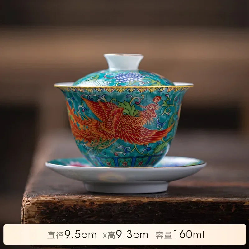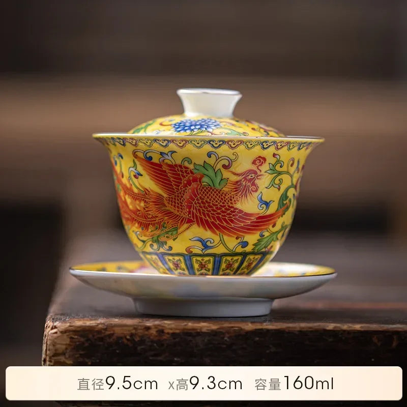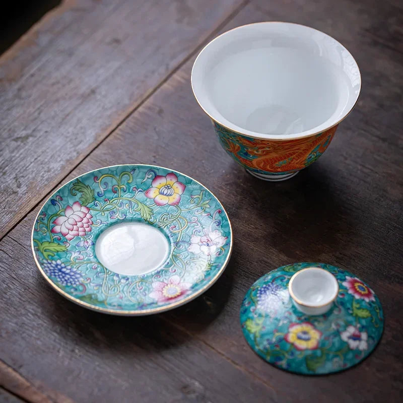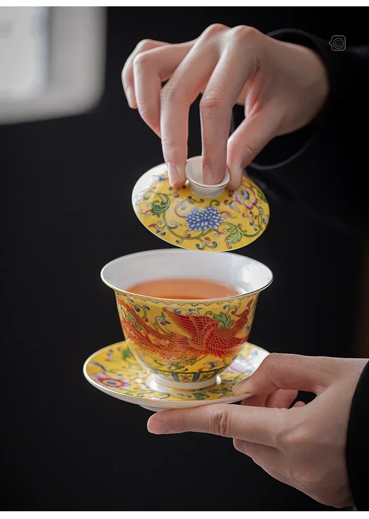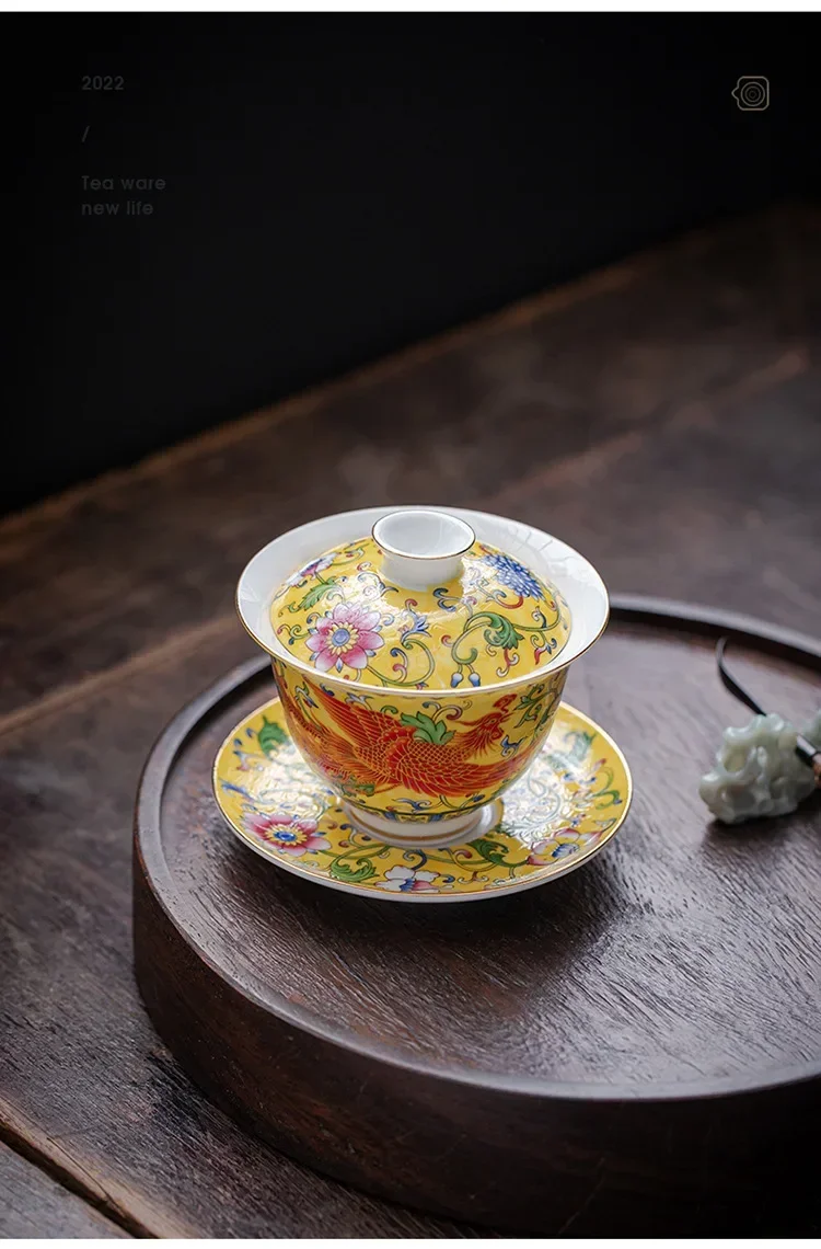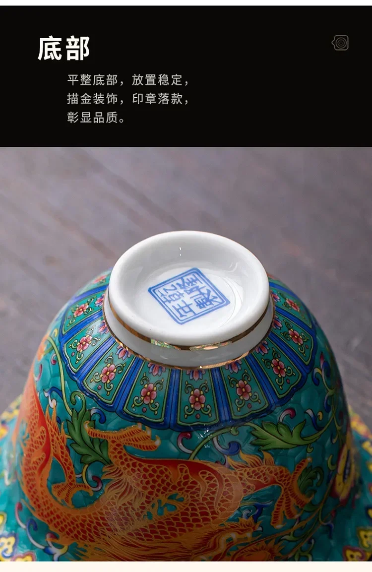 Tea Tureen Elegant Chinese Gaiwan Ceramic Dragon Hand-Painted Tea Set Color Enamel Tea Bowl with Saucer Kung Fu Tea Cup