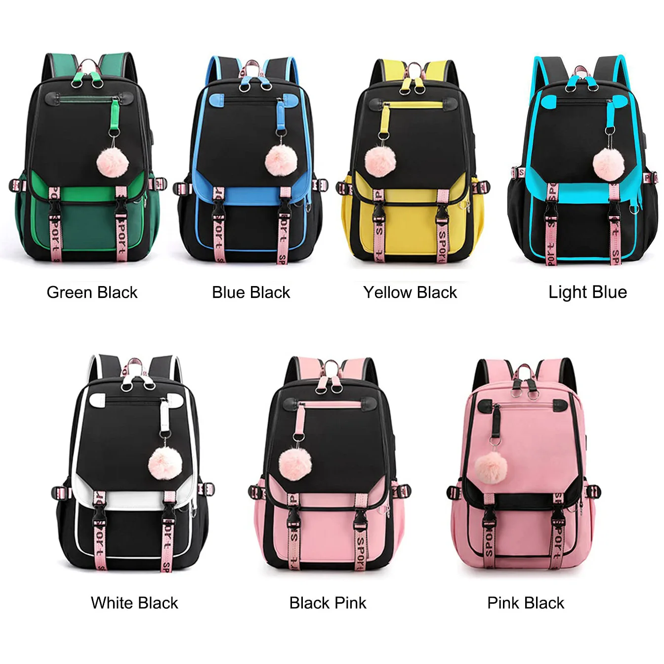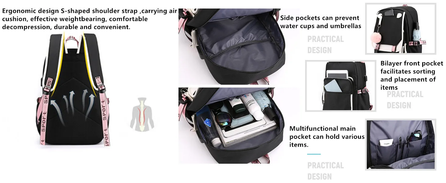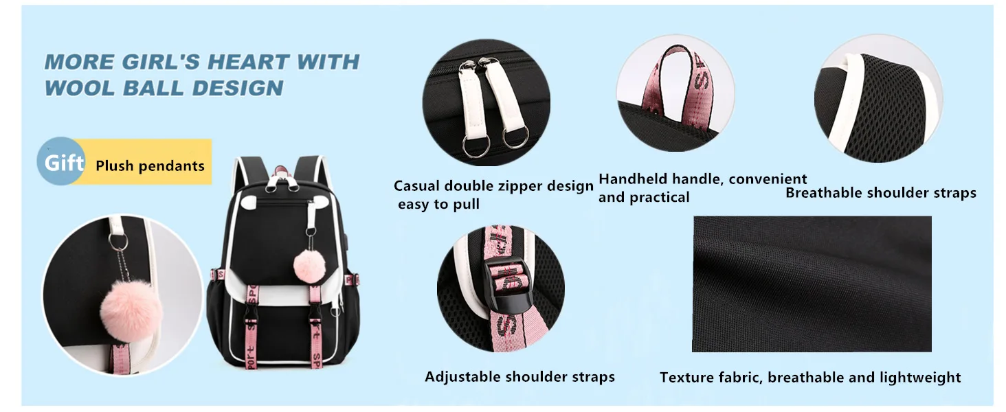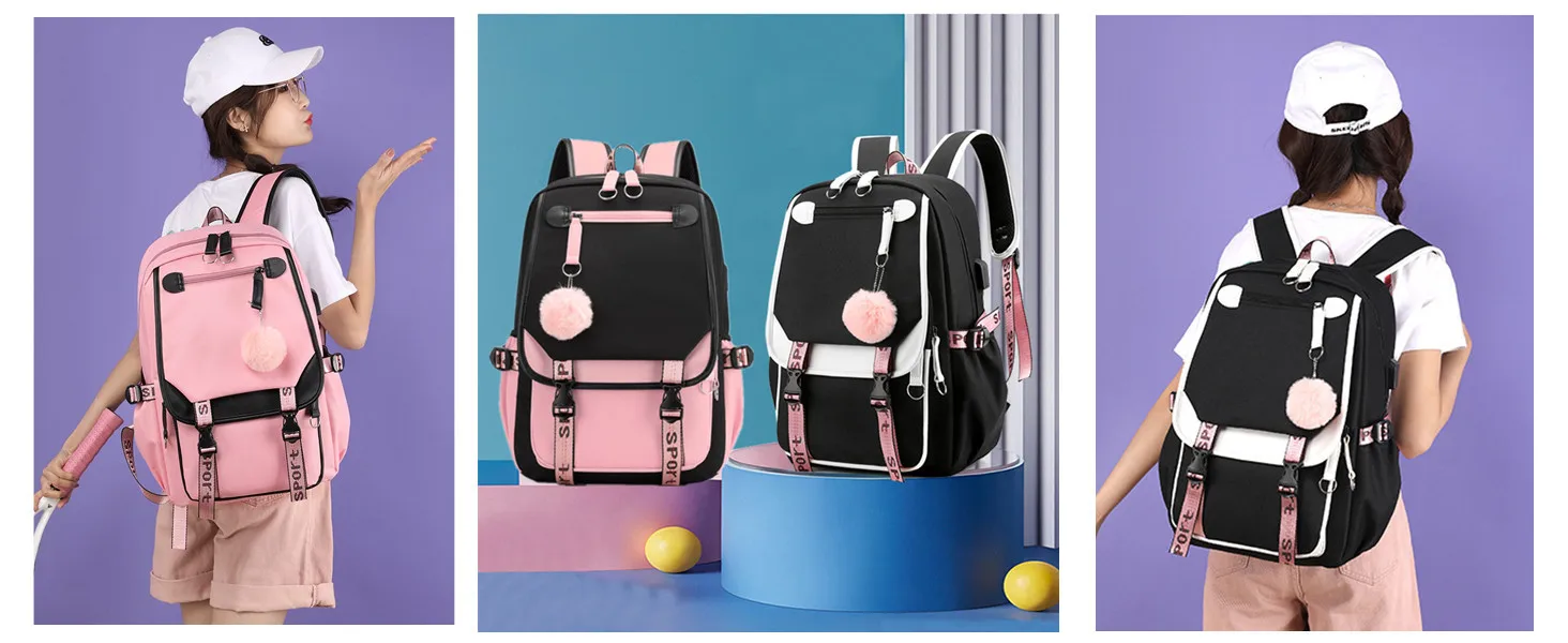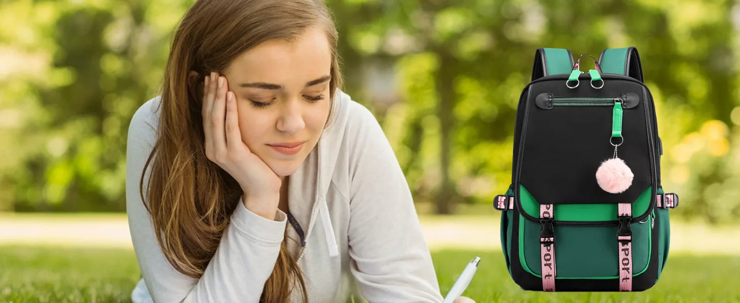 Teenage Girls' Backpack Student BookBag Large Capacity Backpack Travel Casual with USB Charging Port Schoolbag Oxford Waterproof