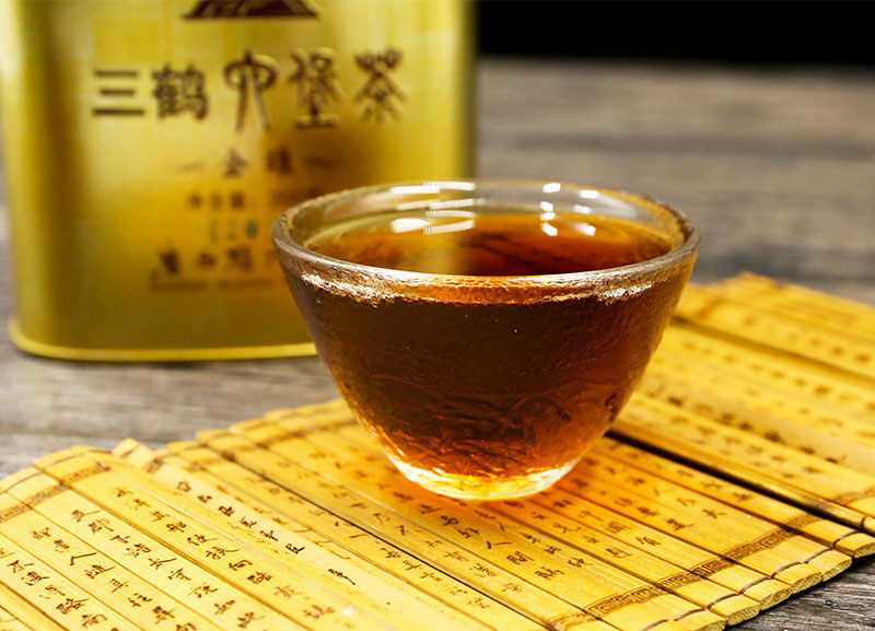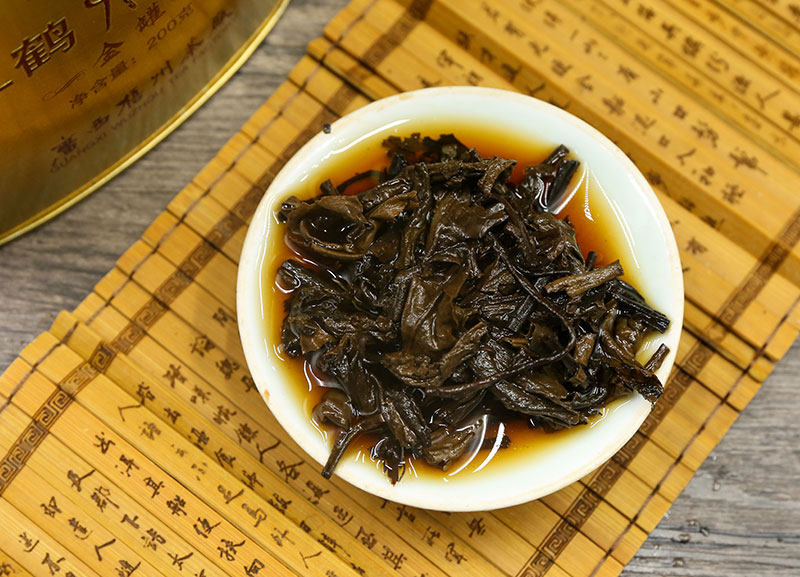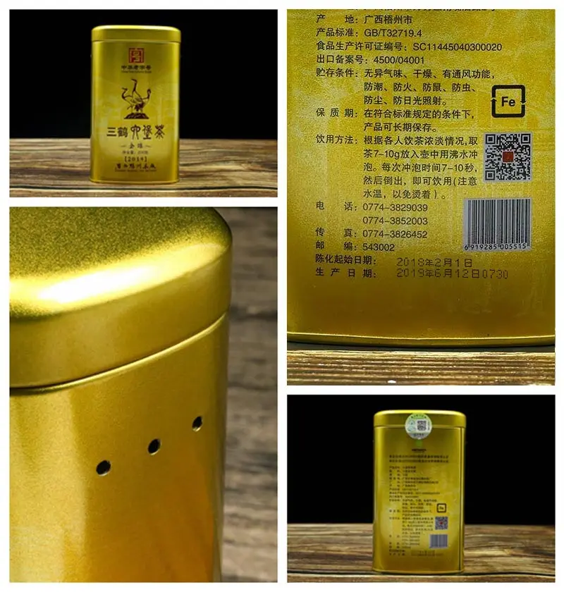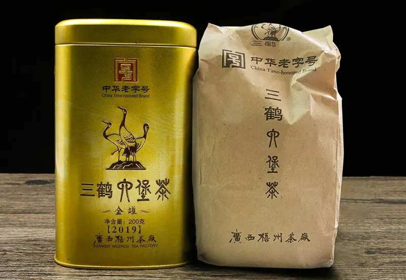 Three Cranes Loose Dark Tea Guangxi Liupao Box Tea Hei Cha Golden Jar 200g