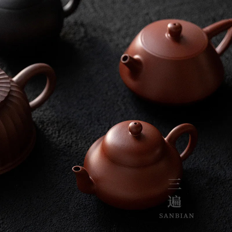 Three Times|Yixing Raw Ore Old Zhu Clay Purple Clay Pot Ruffle Oily Chinese Retro Handmade Humanistic Teapot