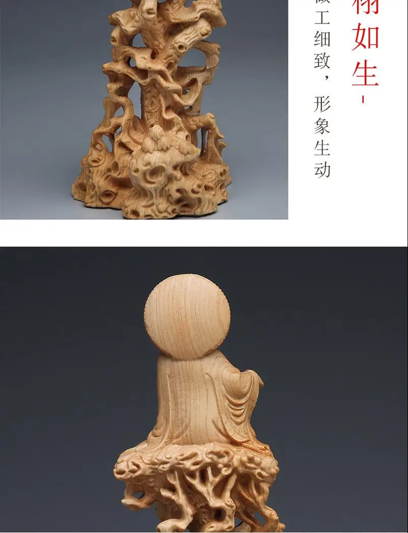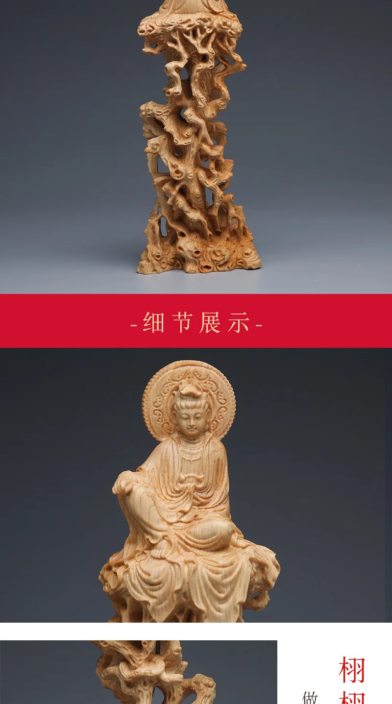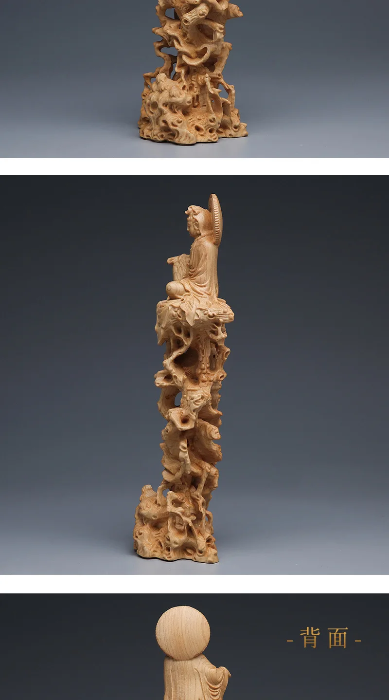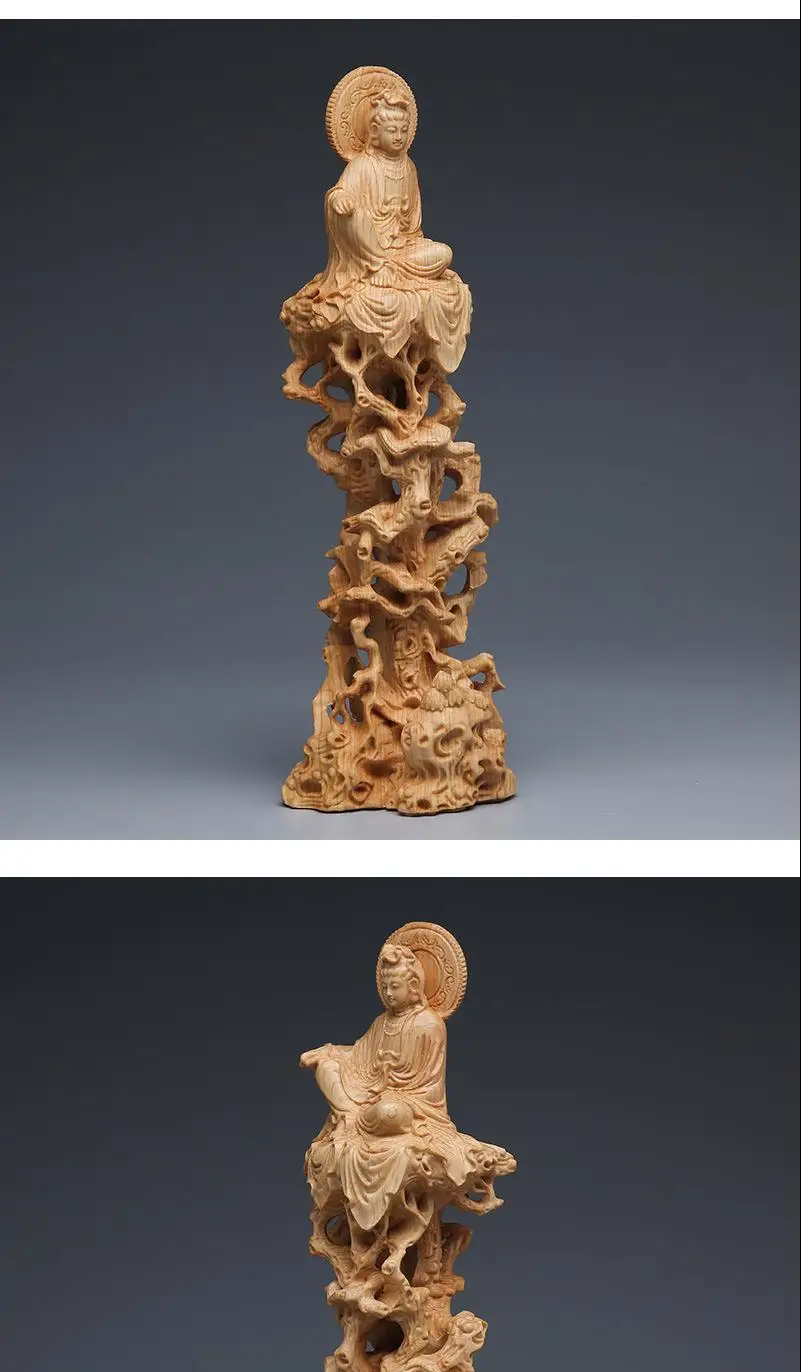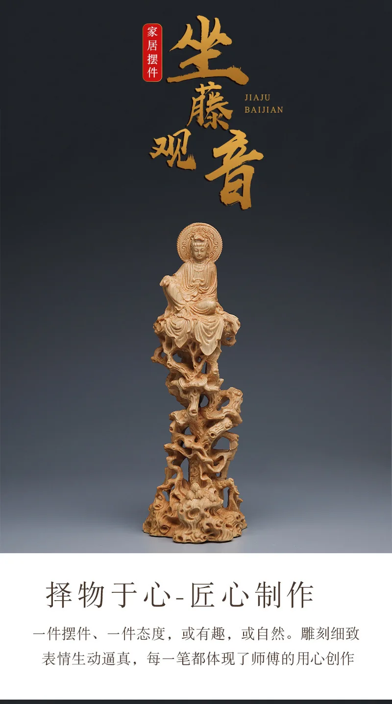 Thuja cypress sitting on tree and vine Guanyin Buddha statue decoration wooden crafts living room solid wood carving free Guanyin Bodhisattva